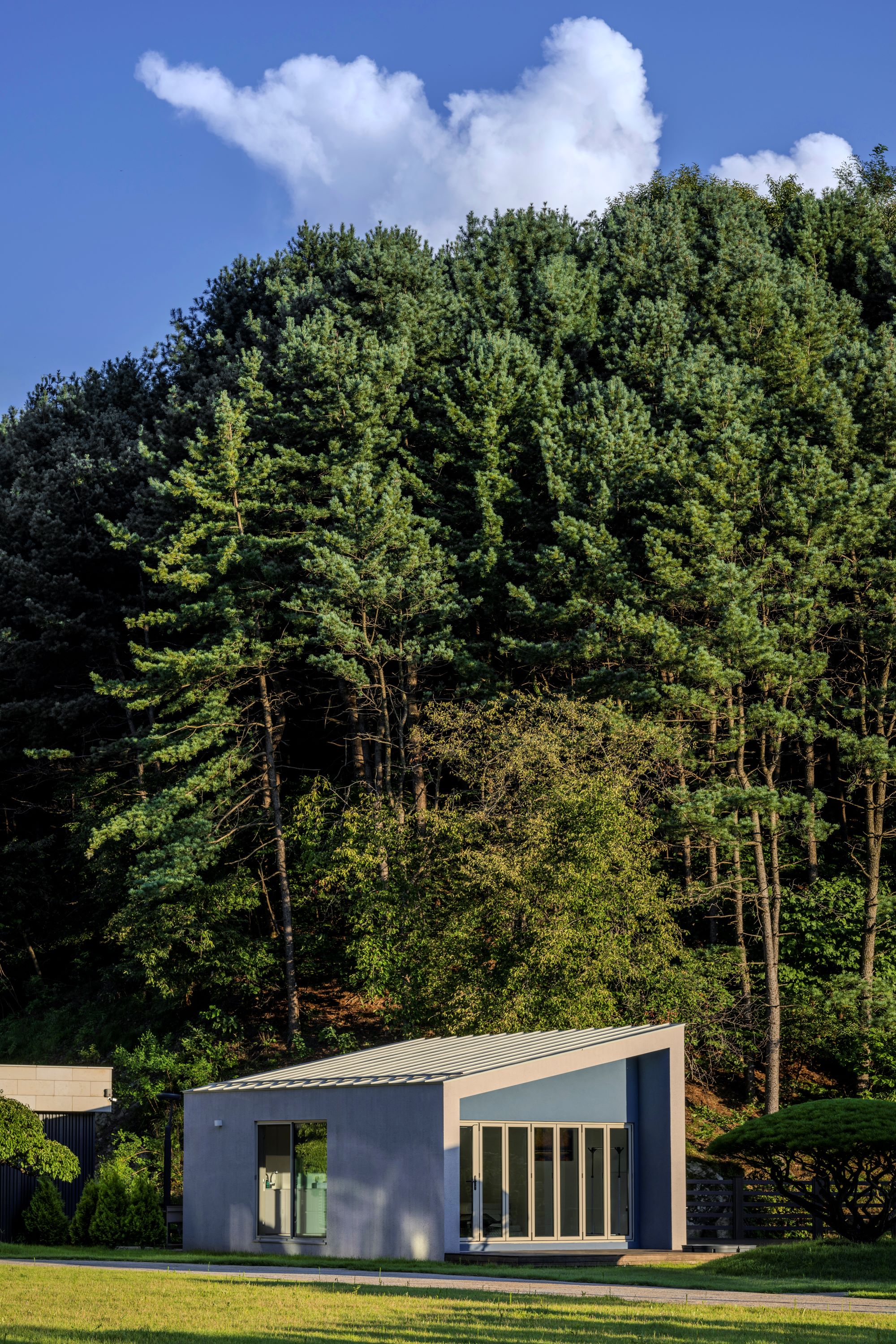 건축주는 고즈넉하고 조용한 풍경 속 직원들의 교육 및 휴식을 위한 연수원을 계획했다. 산세에 둘러싸여 안정감을 주면서도 주변과 자연스럽게 동화되는 기운을 가진 땅을 보니 건축주의 의도와 생각을 단번에 이해할 수 있었다. 이곳에서 자연의 정취와 천혜의 환경을 온전히 느낄 수 있기를 바라며 설계를 시작했다.