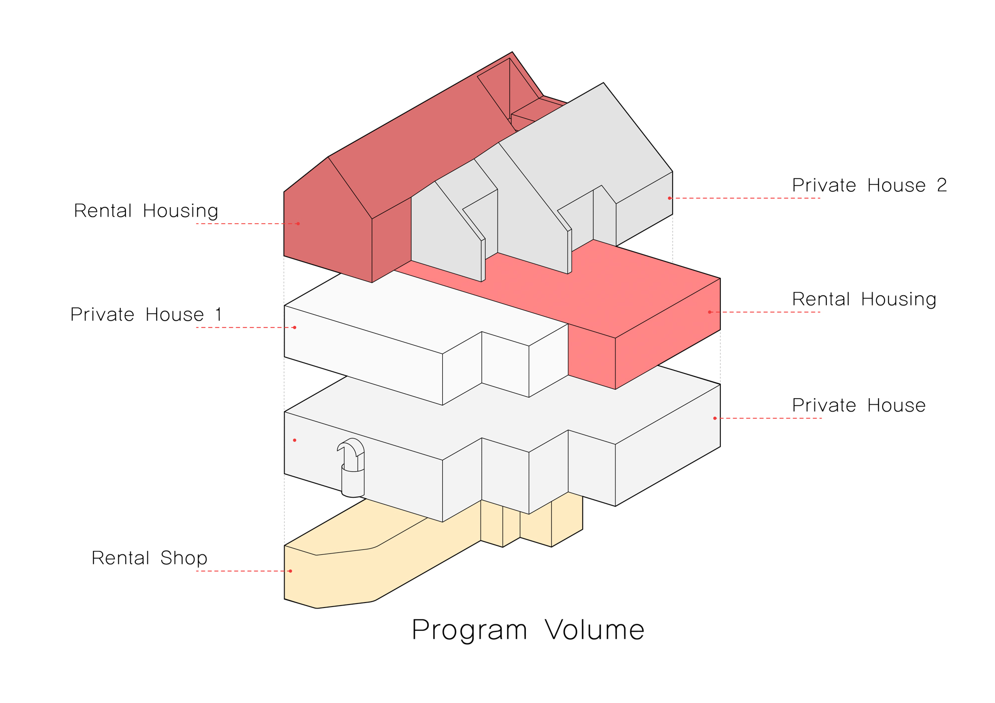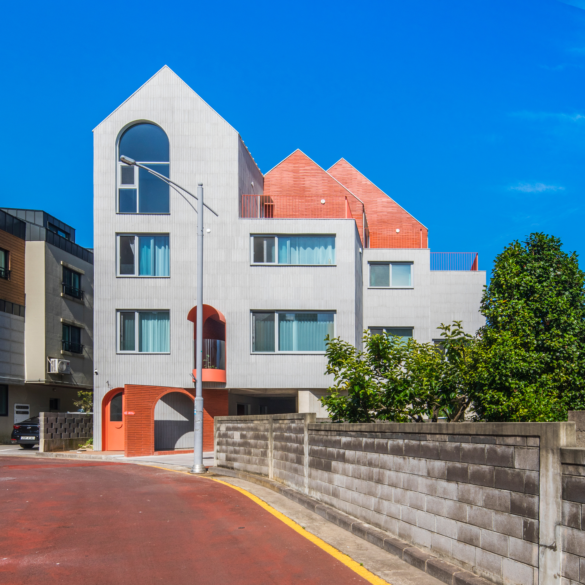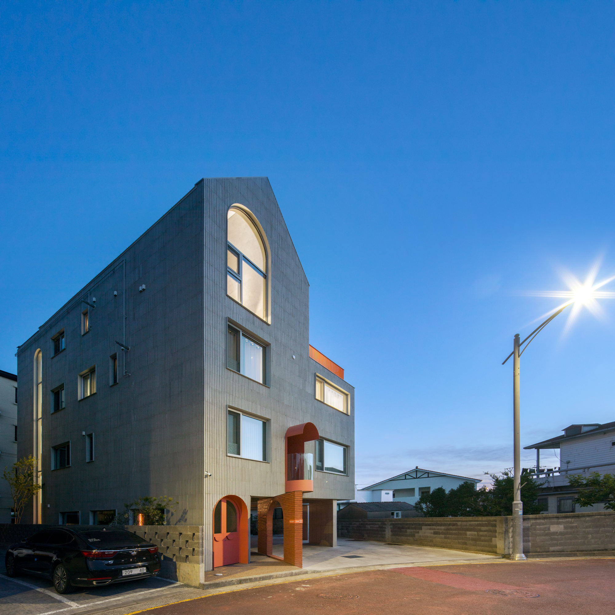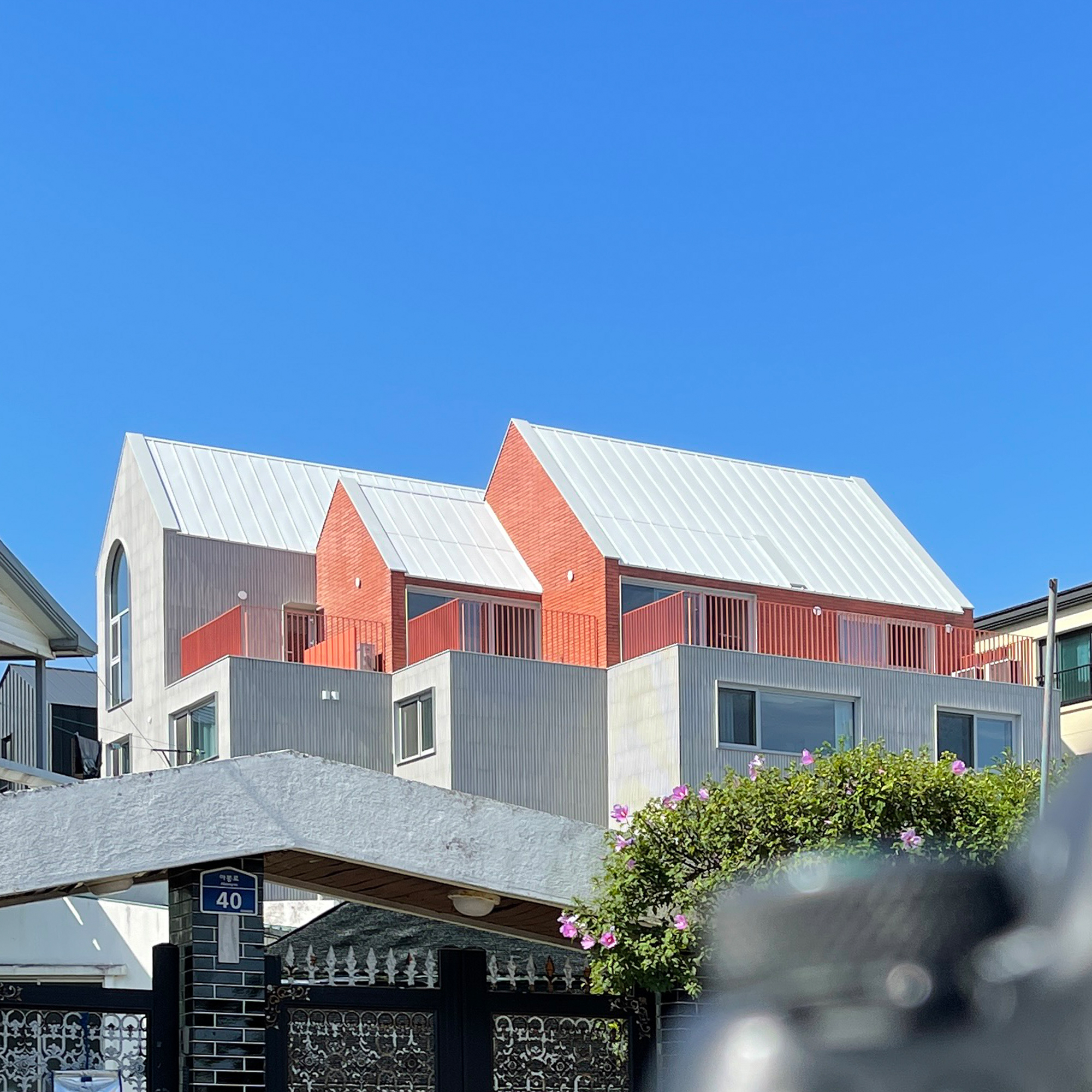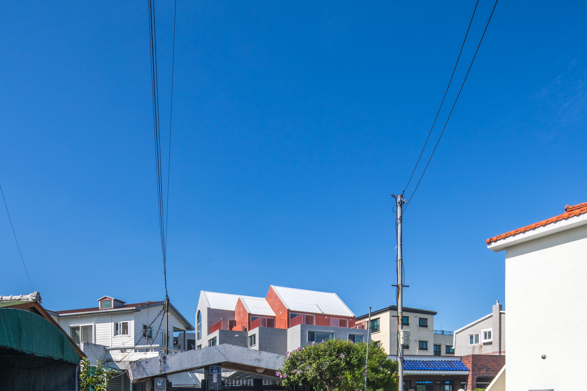지구단위계획구역의 정해진 용도와 규모에서 건축하는 것, 그리고 평범한 일상의 건축이 우리 마을에서 어떤 표정을 짓는 것이 좋을 것일까. 분가 후 제주시 구도심에서 세 아이와 오랜 기간 거주를 하다 계획 도시 아라동에서 다시 가족들이 모여 살 수 있는 공동 주택을 계획한다. 한 가구가 아닌 이제 가족들이 다가구의 형태로 각자, 또는 같이 형태로 그 해결책을 찾아간다.