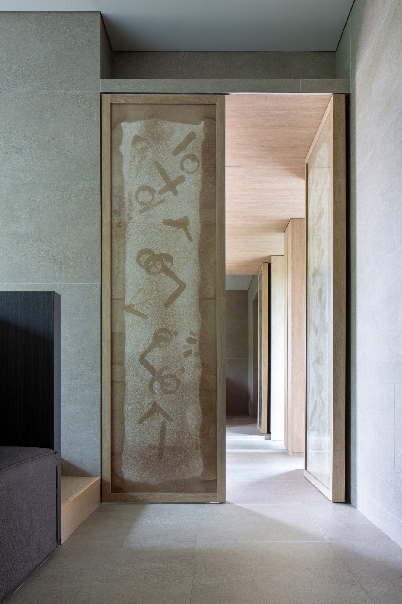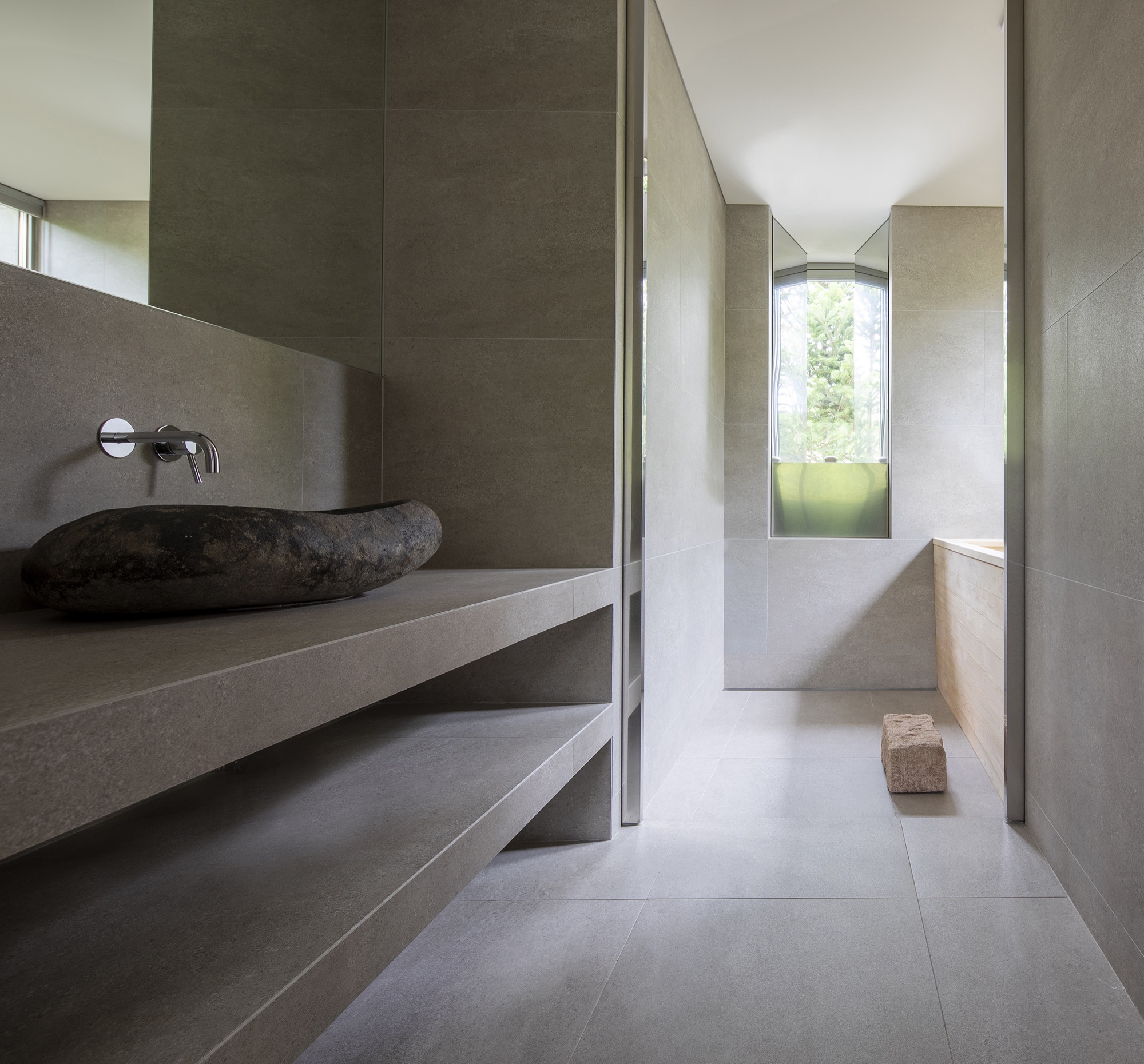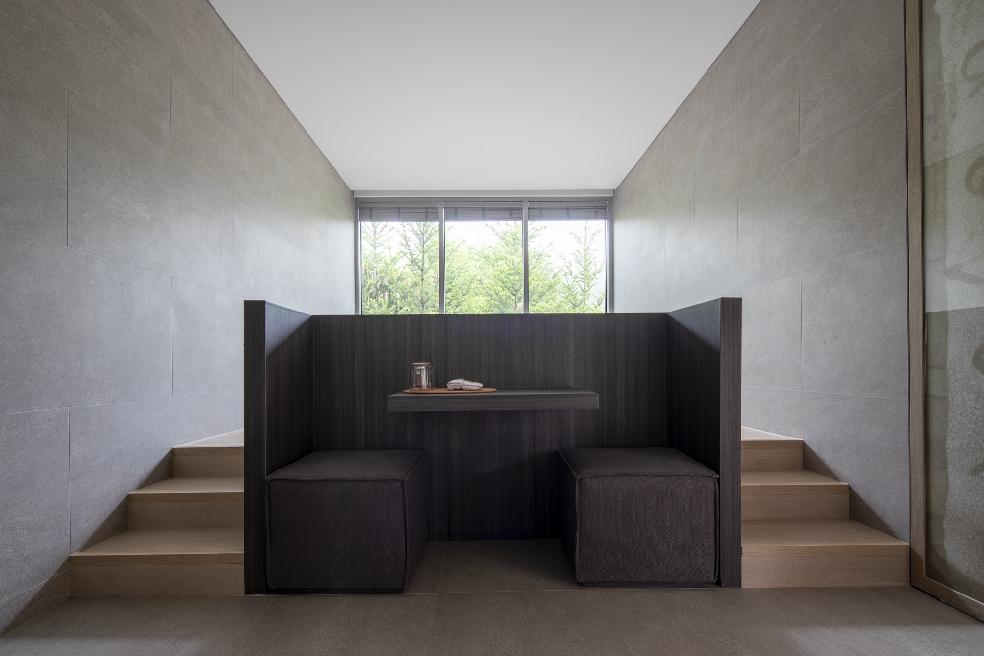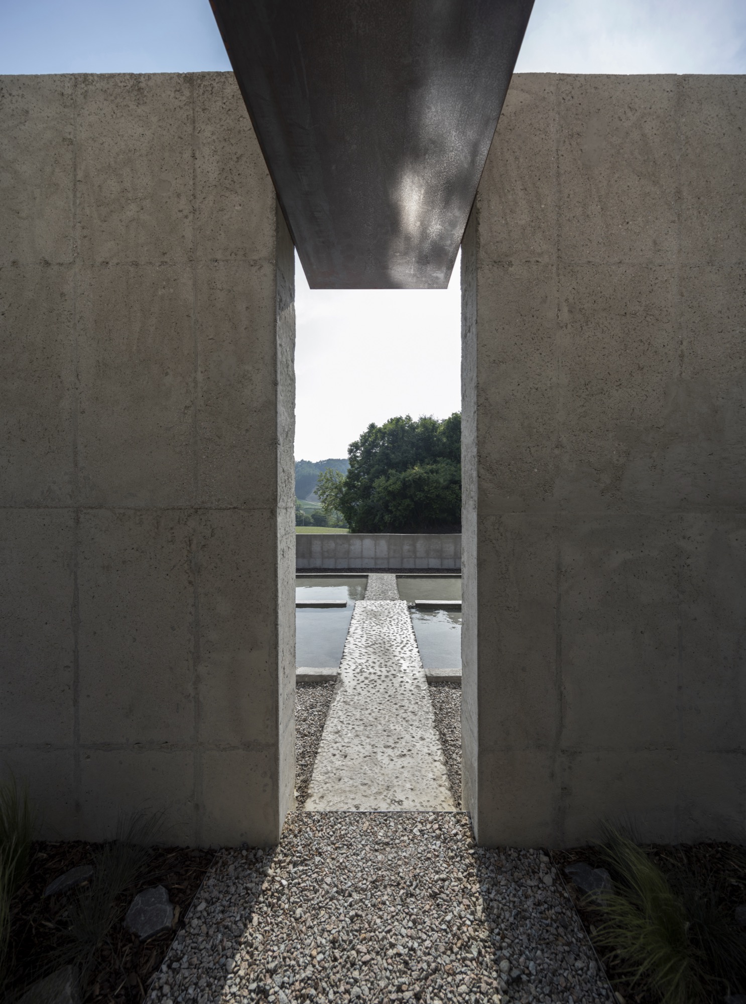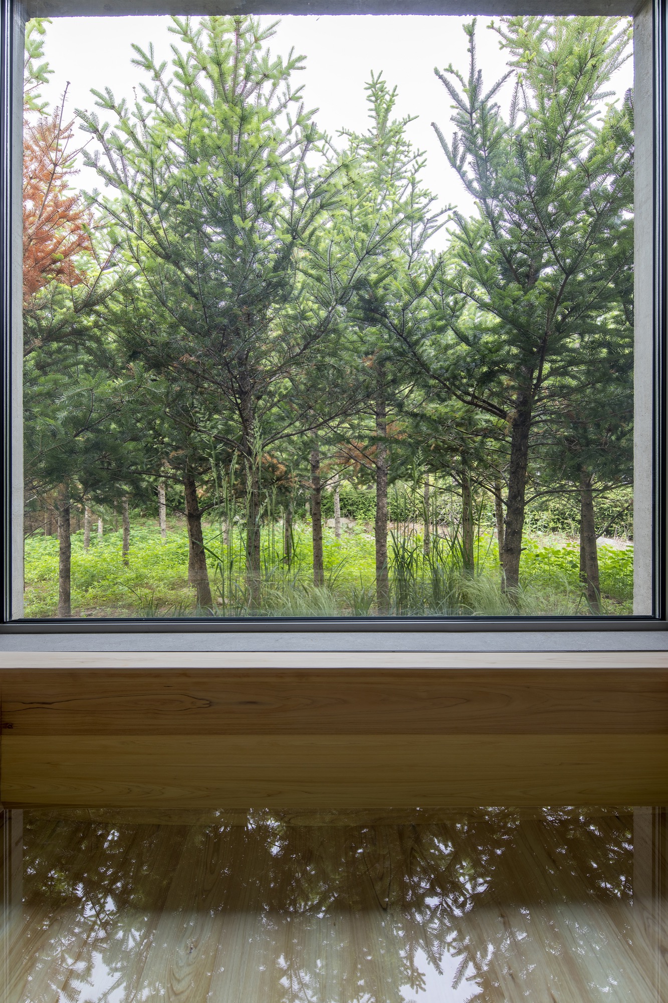 이러한 개념으로 존재하는 공간은 자연 생기生氣의 순환을 통한 심상의 순환을 이루기 위해 여백과 졸박미를 추구했다. 경사진 땅은 수평의 축을 만들어 장소 너머 산들의 주름과 공간의 경계가 교차하며 장면을 만들고, 경계를 부정하며 자연과 상호작용하는 투영의 못을 건너는 긴 축은 커다란 바위틈으로 동선을 이끈다. 커다란 바위틈 무위의 존재가 나무숲 사이, 바위에 올라있는 장면을 만든 것은 정제된 소재(죽은 나무와 바위) 위에 시간의 범위를 밤의 밖으로, 그리고 낮의 밖으로, 시간에서 솟아올라 무연(憮然)한 합작을 구현하고자 함이었다. 이 대지 위에 건축된 모든 공간은 이 장면들의 반복과 교차를 통해 시작하고 끝맺는다.