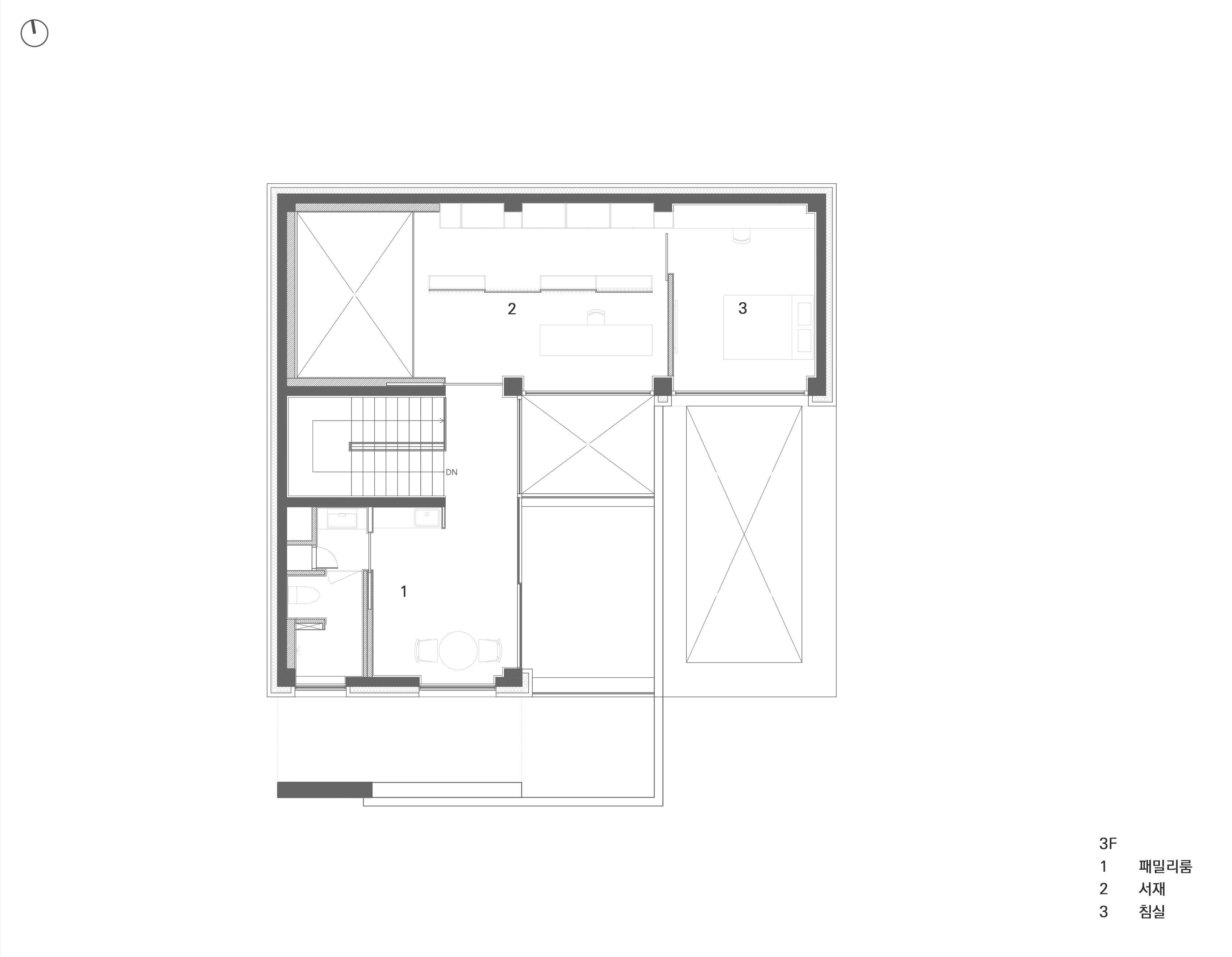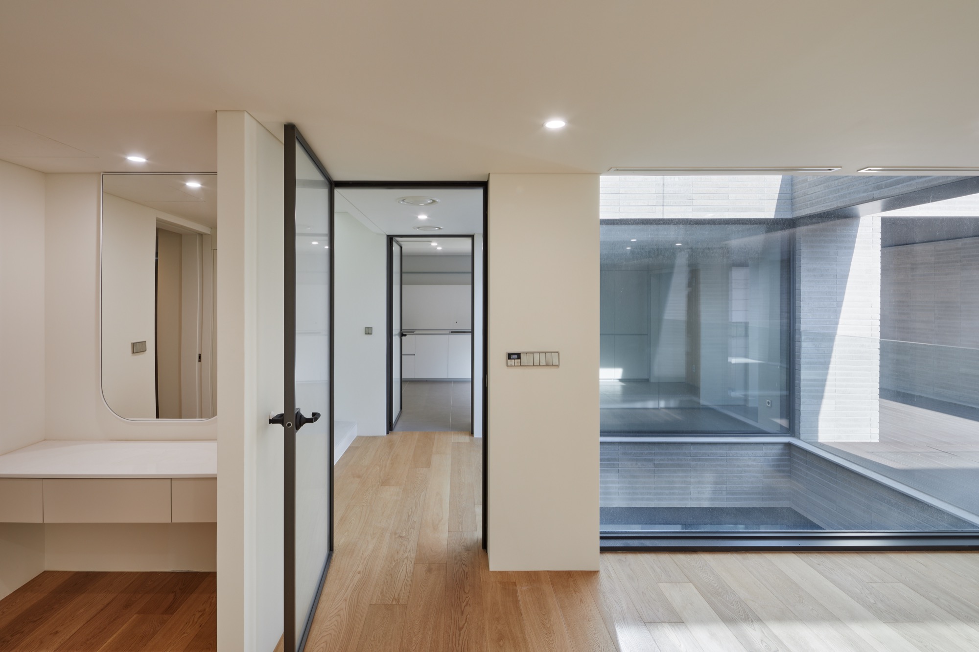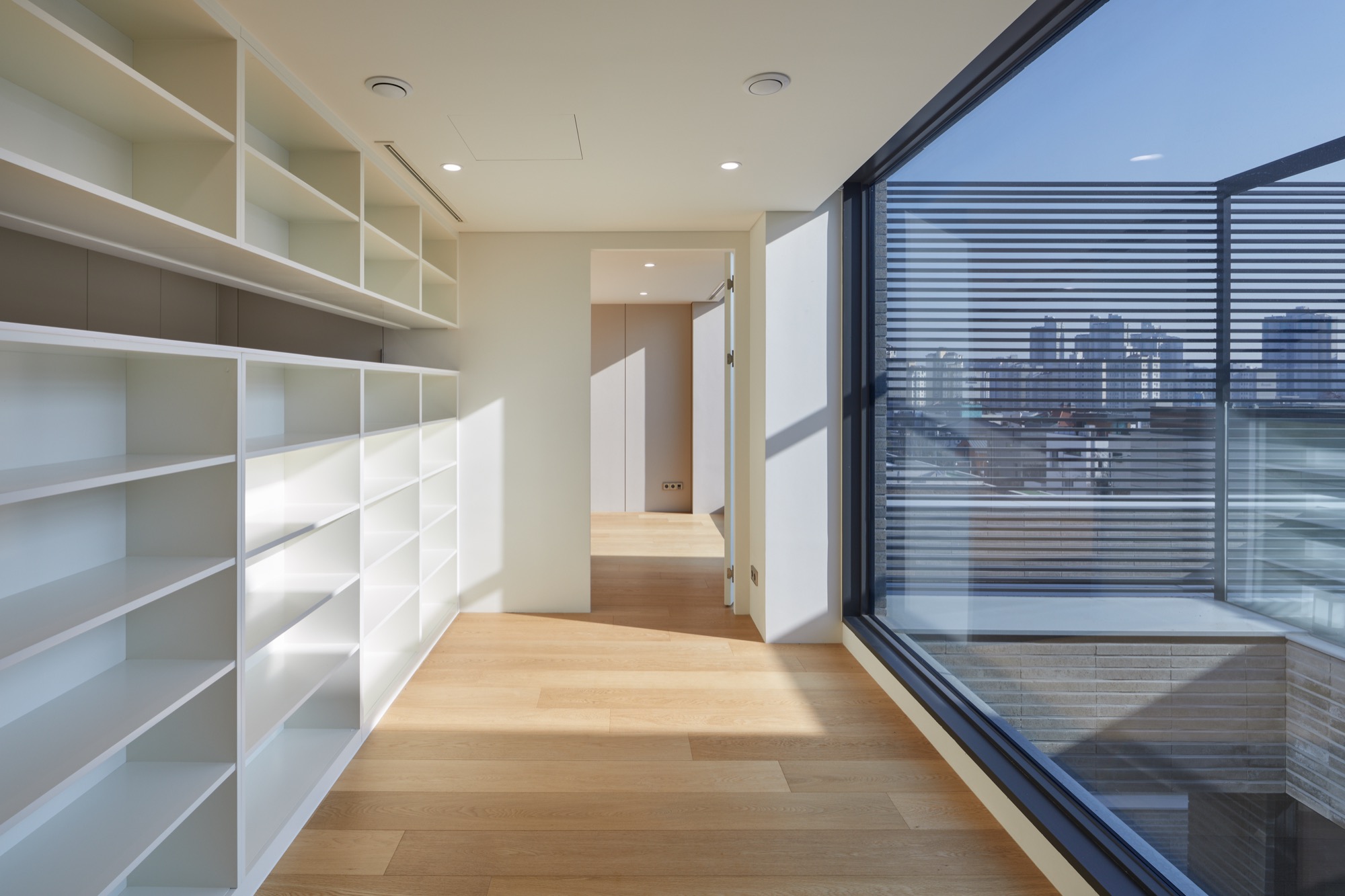 주거공간을 상업공간처럼 다양하고 극적인 연출을 하기는 제약이 따른다. 휴식과 삶을 영위하는 성격의 주거공간에 다양한 경험적 연출을 제공하다 보면 오히려 사용자에게 피로감을 줄 수 있기 때문이다. 그래서 건축가는 항상 표현의 욕구와 절제된 장면 속에서 갈등하게 된다. 다양한 공간감을 표현하면서 주거의 본 기능에 충실할 수 있도록 하는 것이 이번 프로젝트의 과제였다. 클라이언트의 프라이버시를 지키면서, 답답하지 않도록 열린 공간들을 적절히 배분하였고, 부부 각각의 취미공간과 공용 공간을 적절히 배치하여 공간의 밸런스를 조율하였다.