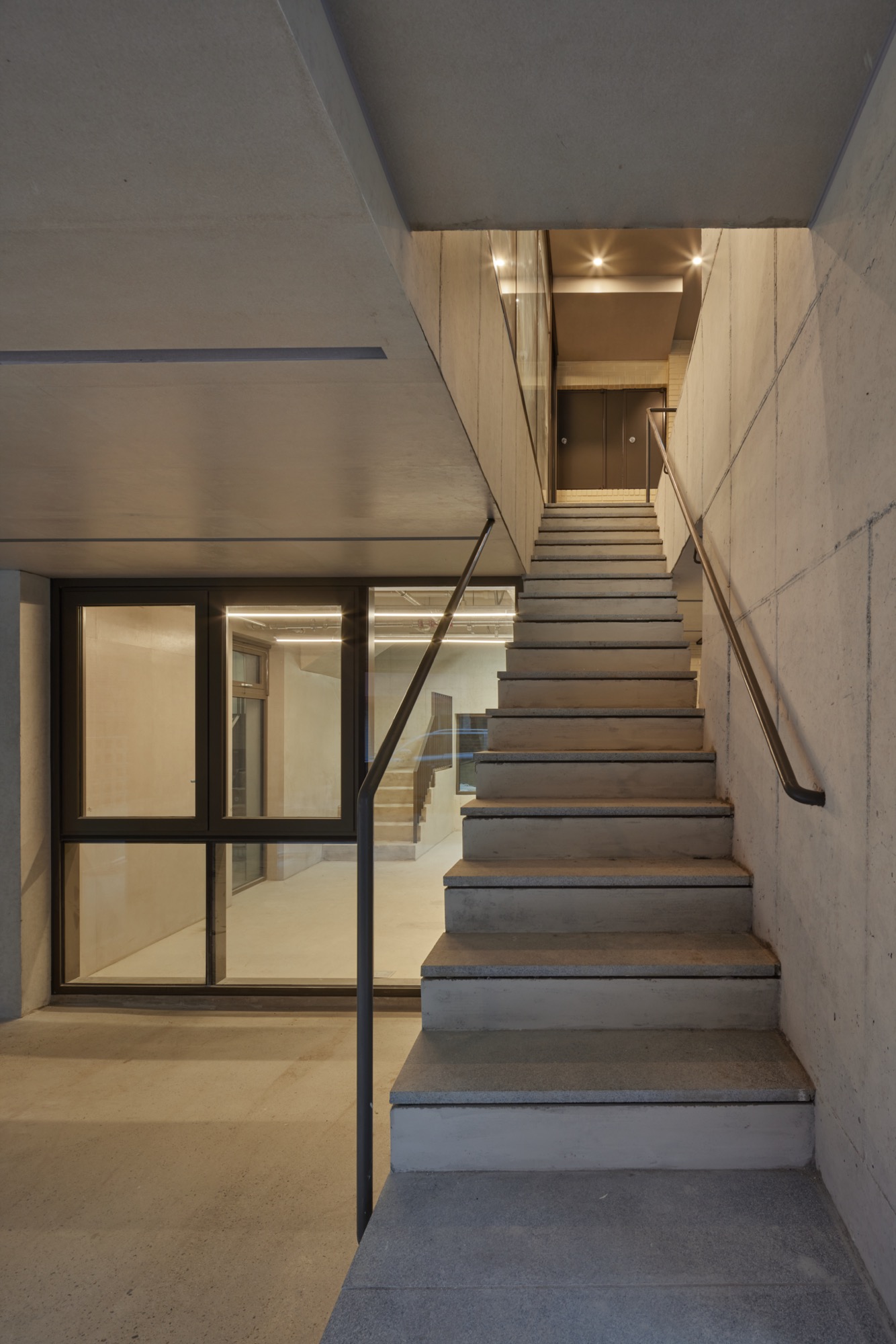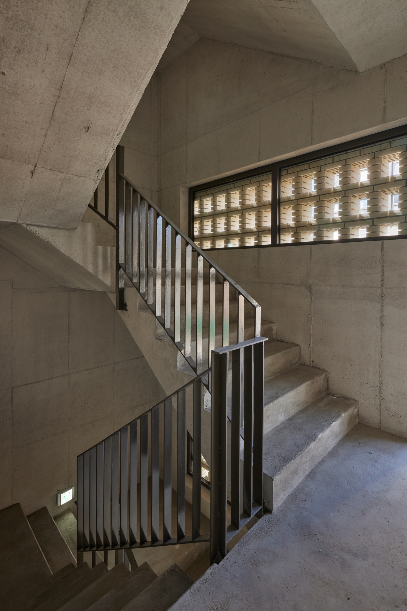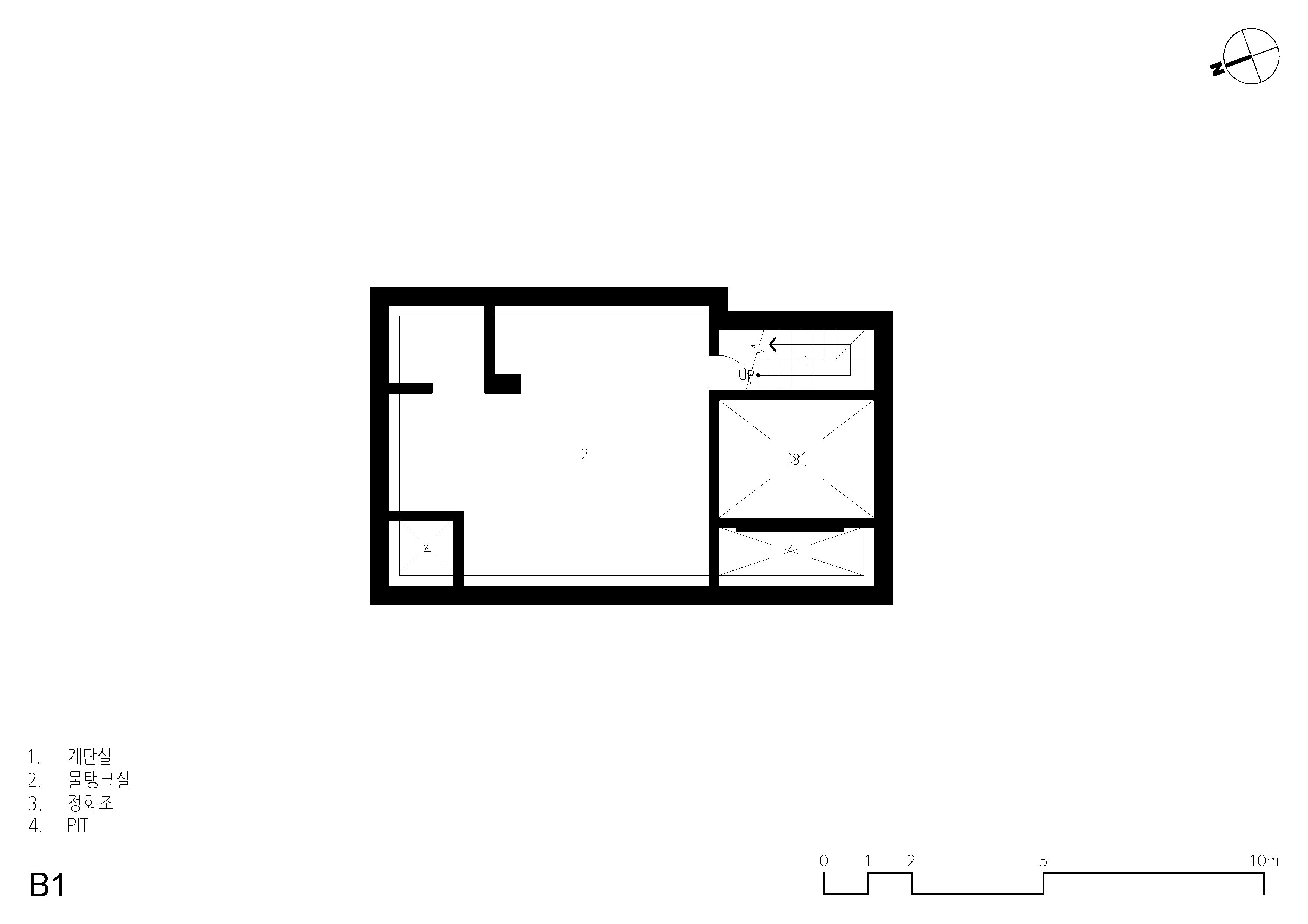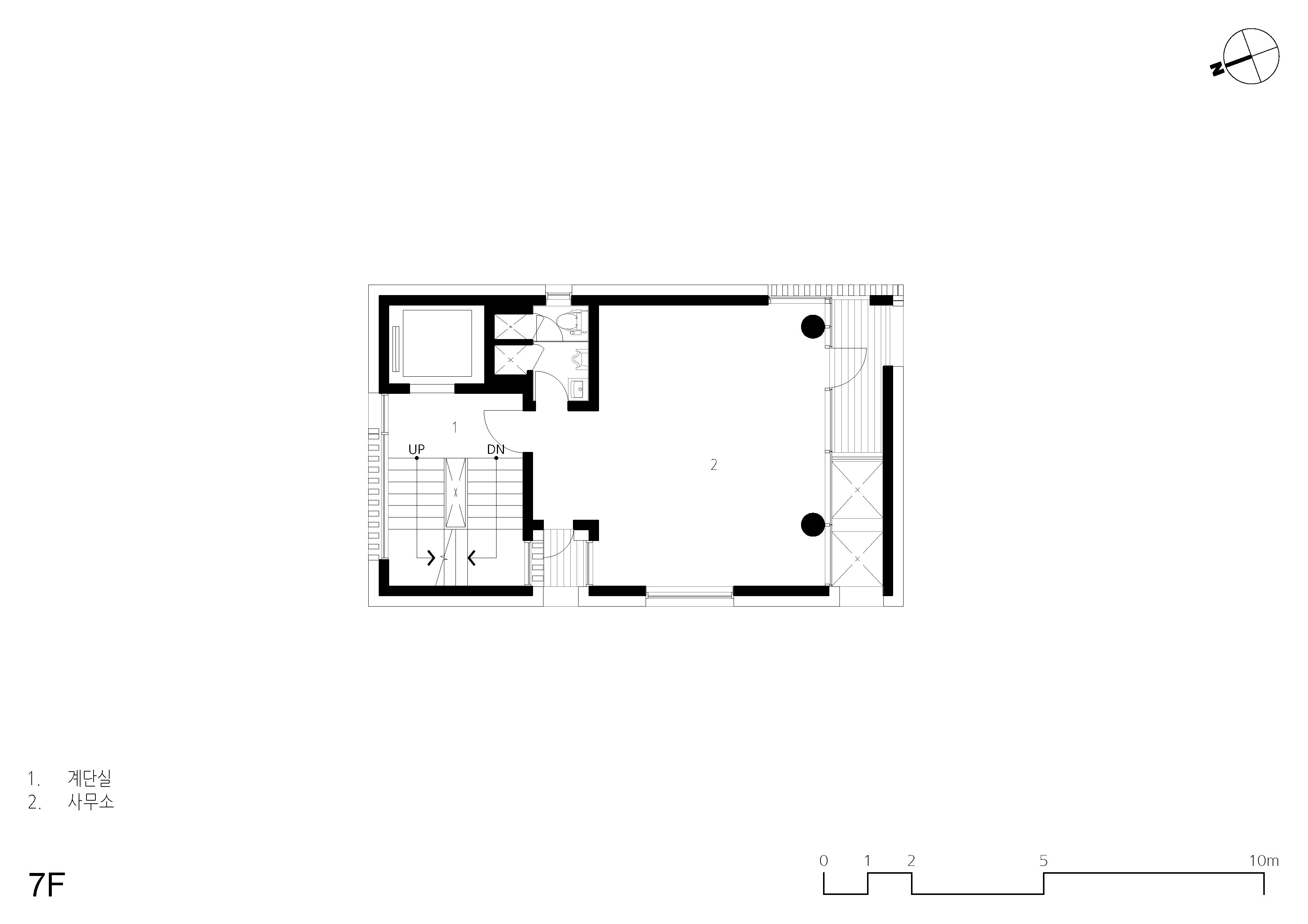 8층 규모의 용적은 주차대수 설계의 한계로 잉여 용적이 생겨났다. 우리는 남은 용적에 도시환경에 대응하는 INTERWALL(사이 벽)을 계획했다. 이 벽은 8층 높이의 벽으로 층마다 비움과 채움, 수직과 수평, 열림과 닫힘, 가림과 채광, 봄과 보임의 방식으로 도시환경과 관계를 맺고 조직을 만드는 표층이 된다. 수직 표층은 건물의 파사드가 되면서 낮과 밤, 시간에 따라 변화하는 빛으로 다양한 내부 공간 경험을 만들고, 도시의 외부 입면이 된다. 이러한 전략은 도시 경계에서 사성(私性)의 격리적 표피에서 공성(共性)의 관계적 표층으로 바뀌게 할 것이다.