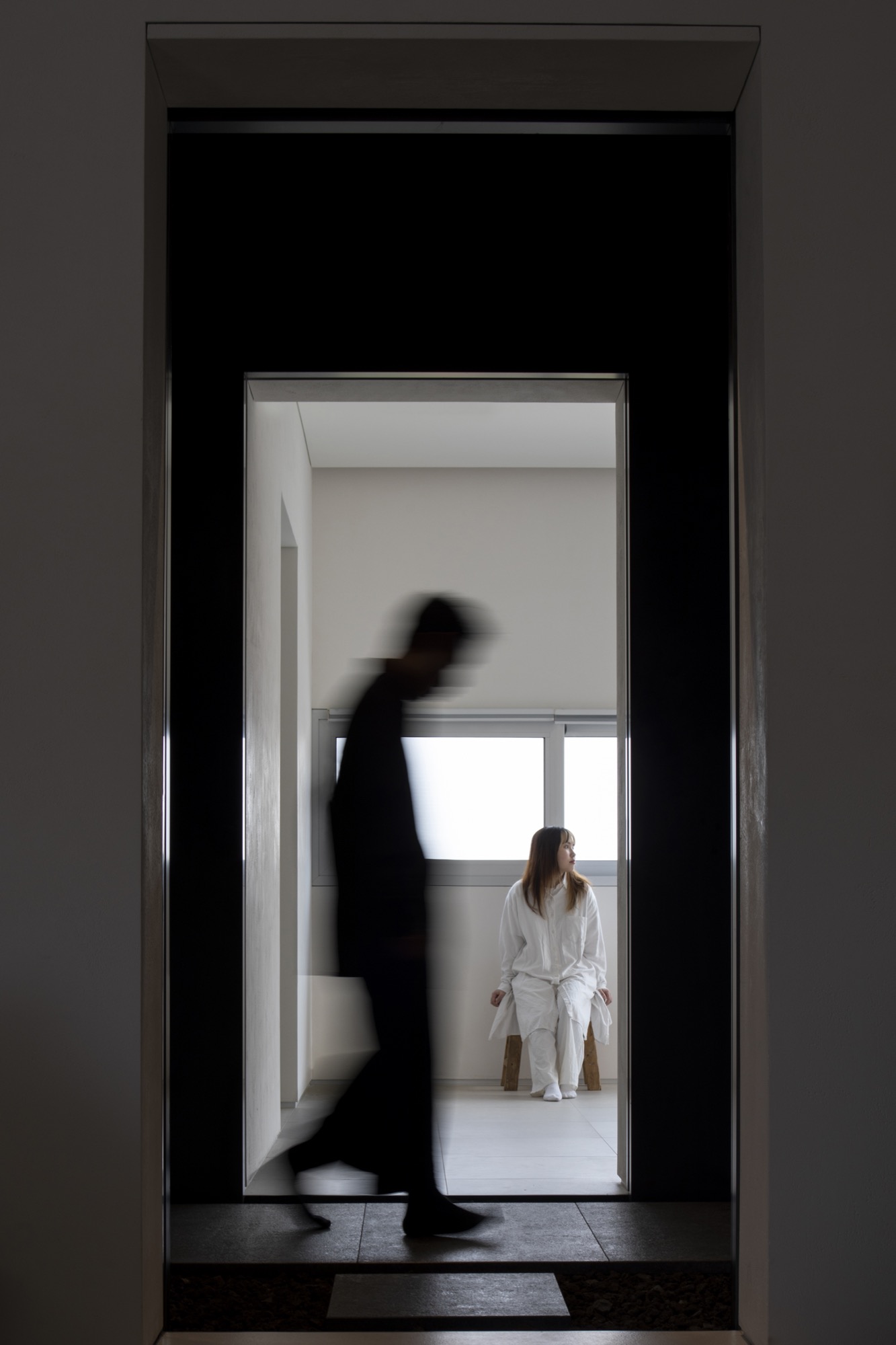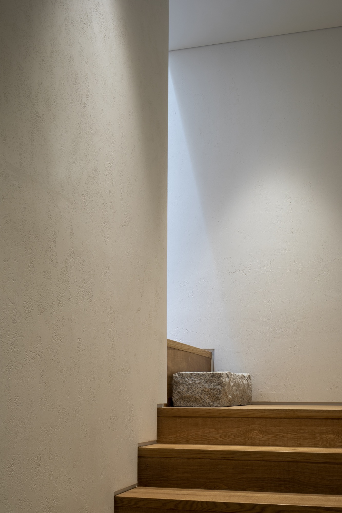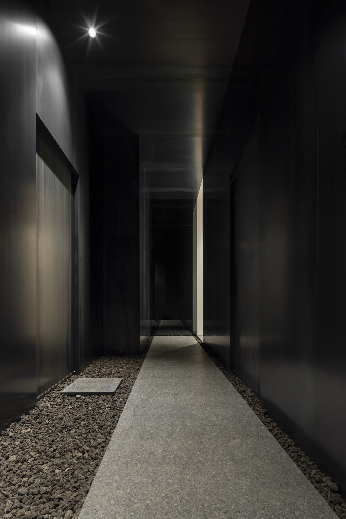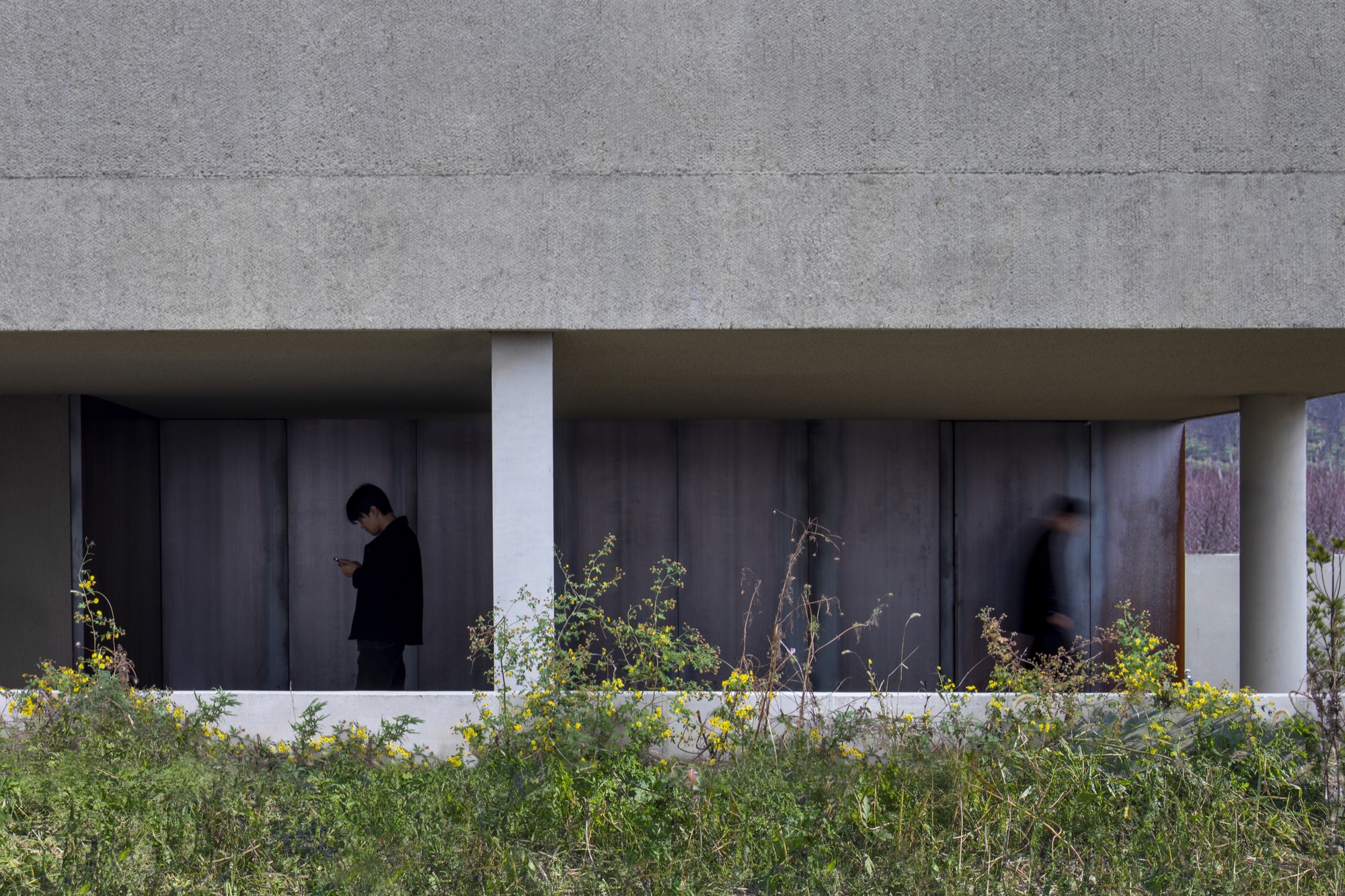 공간과 공간 사이의 짙고 어둑한 갈라진 틈, 굽이치는 험난한 길을 올라 마주하는 윤곽의 깊이는 소리의 울림을 만들어 전이공간으로서의 본질적 순수성을 추구하며 몰입하게 한다. 장면의 시퀀스는 불필요한 것들을 지우개로 지운듯한 고귀한 고요함으로 구현된다. 색면과 불분명한 경계선은 단순함과 진솔함으로 시간성과 흐름의 공간성을 장소에 새긴다. 여기에서 공간의 구축은 시간의 구축을 전제로 한다.