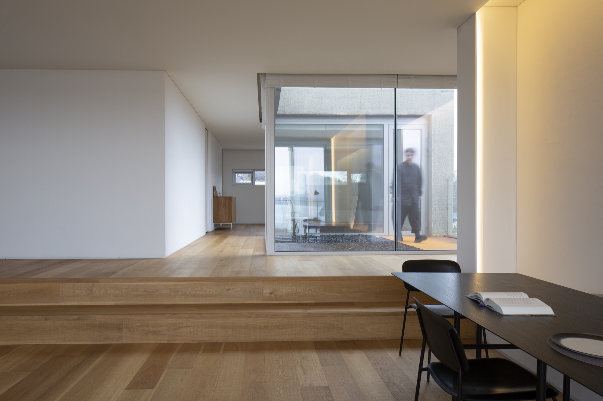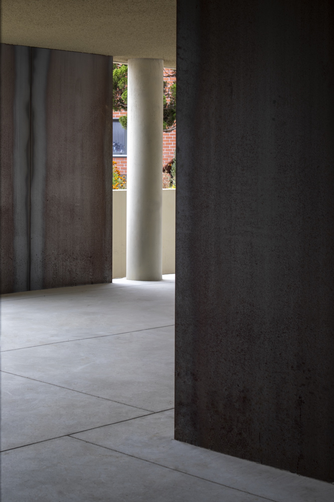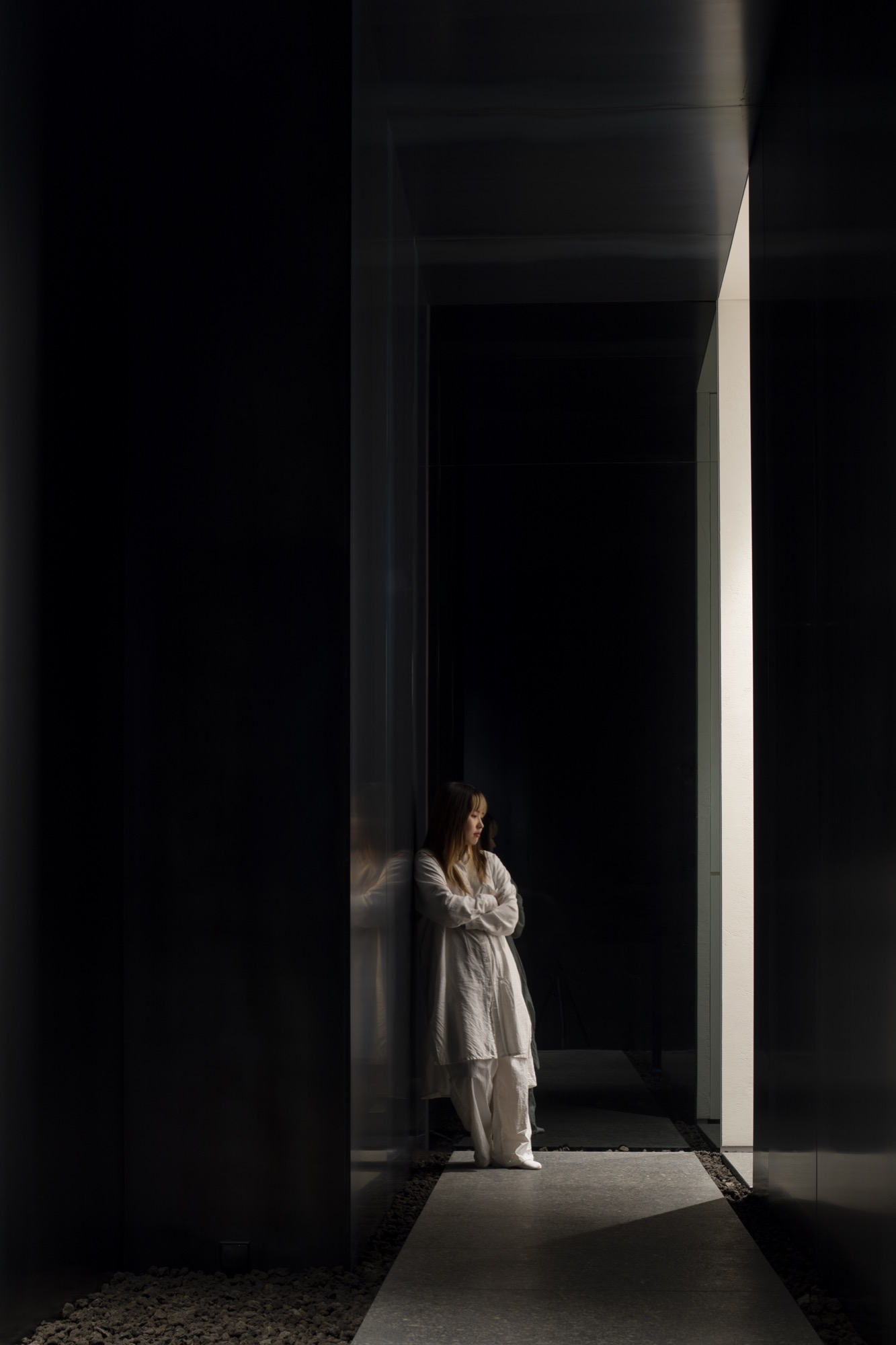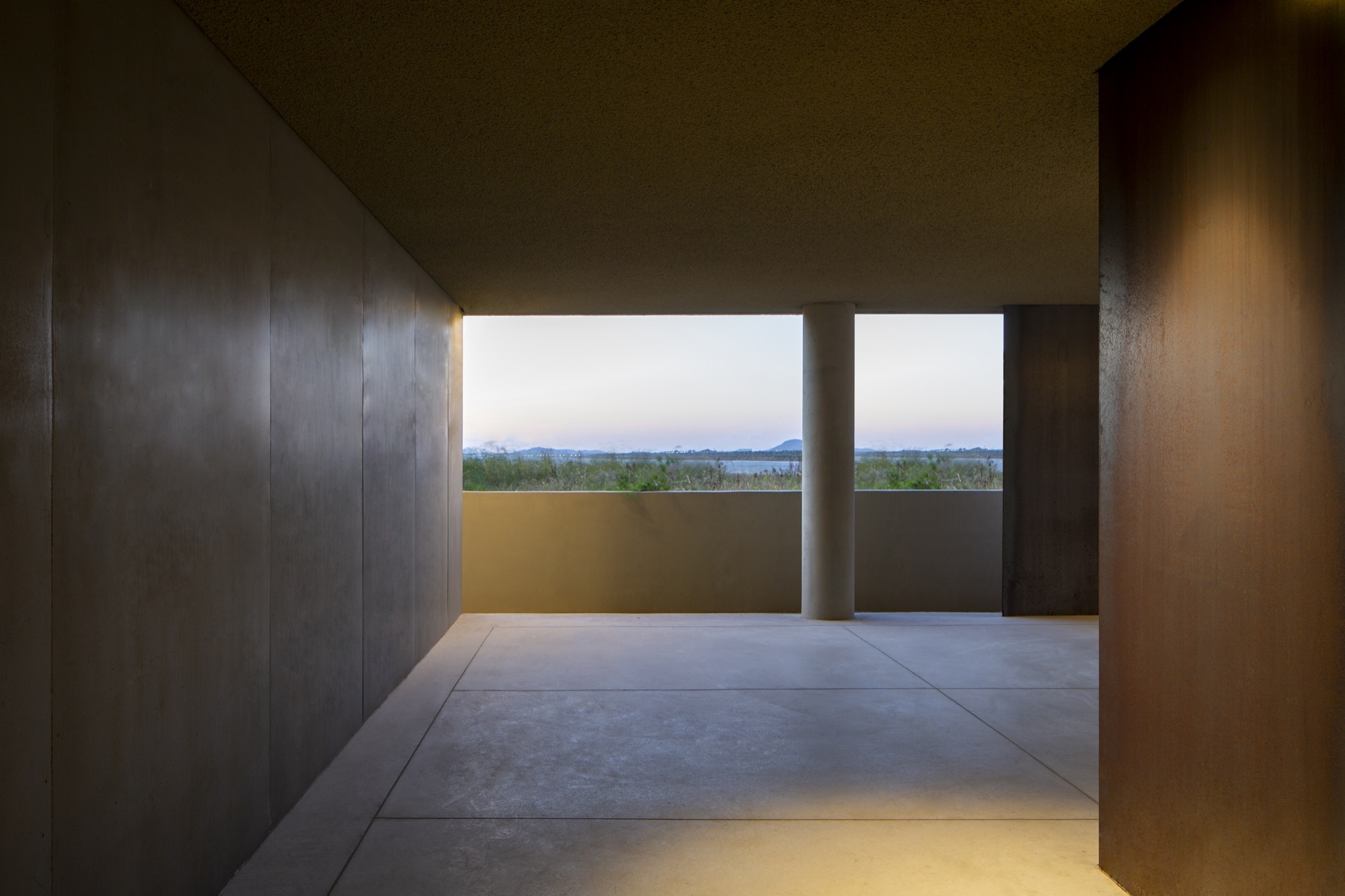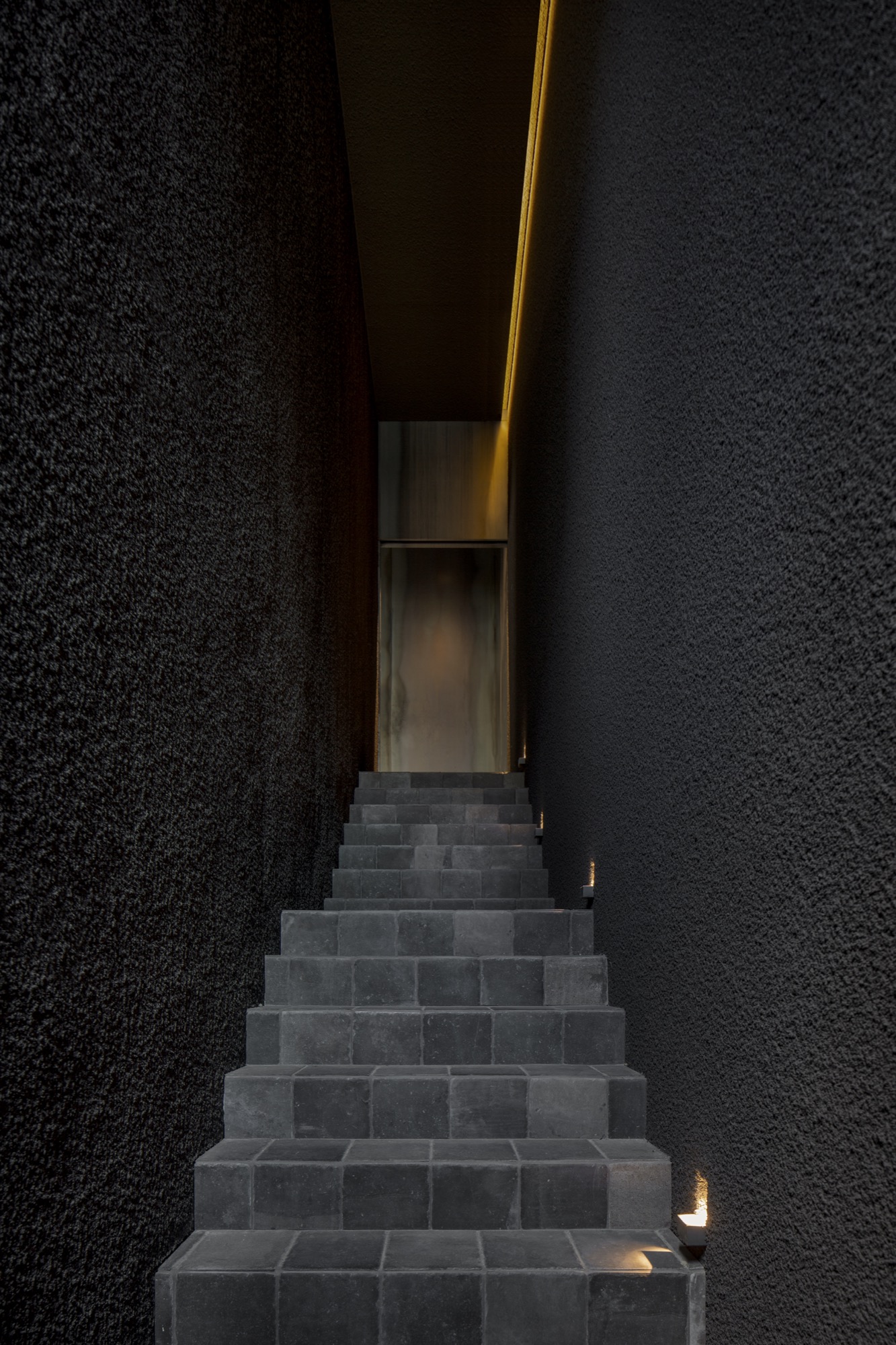 공간과 공간 사이의 짙고 어둑한 갈라진 틈, 굽이치는 험난한 길을 올라 마주하는 윤곽의 깊이는 소리의 울림을 만들어 전이공간으로서의 본질적 순수성을 추구하며 몰입하게 한다. 장면의 시퀀스는 불필요한 것들을 지우개로 지운듯한 고귀한 고요함으로 구현된다. 색면과 불분명한 경계선은 단순함과 진솔함으로 시간성과 흐름의 공간성을 장소에 새긴다. 여기에서 공간의 구축은 시간의 구축을 전제로 한다.