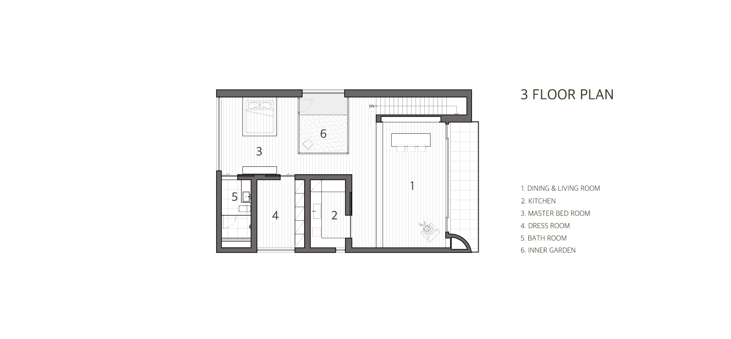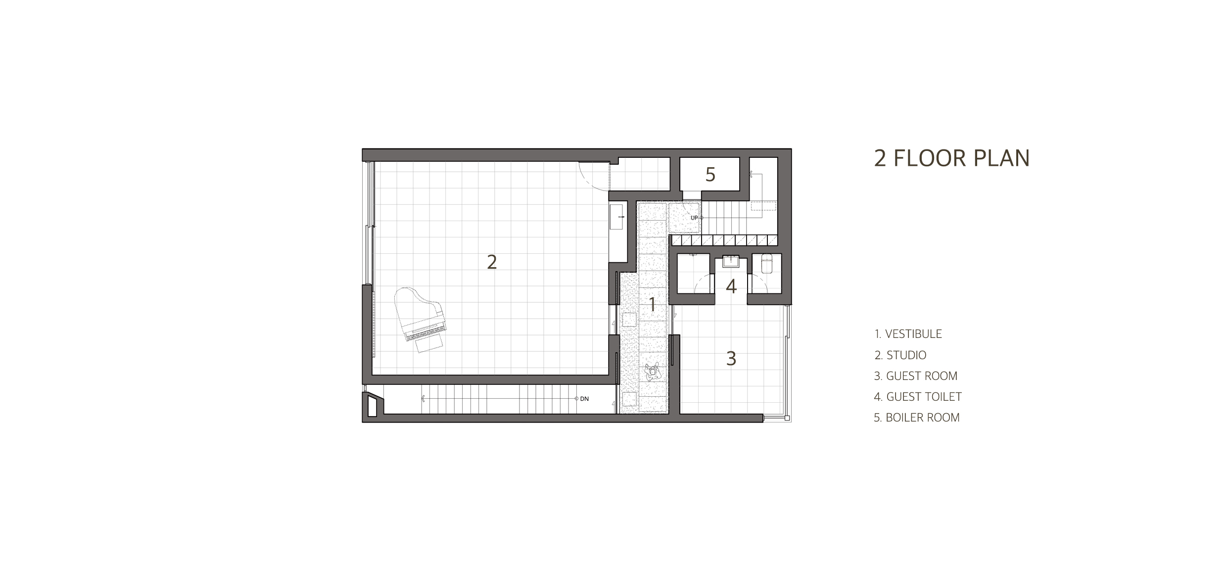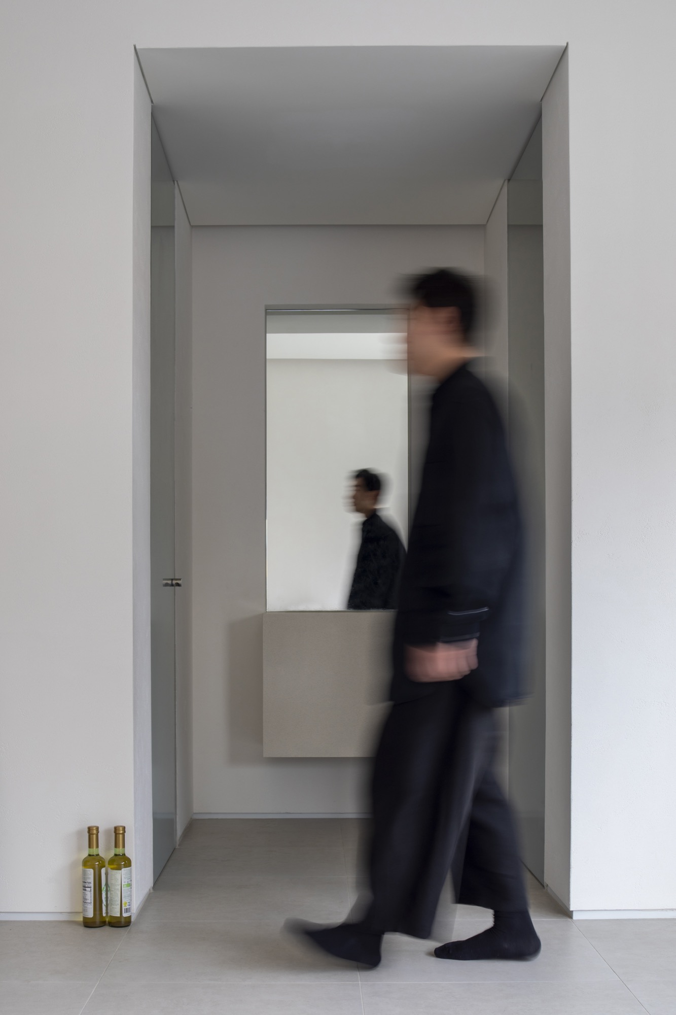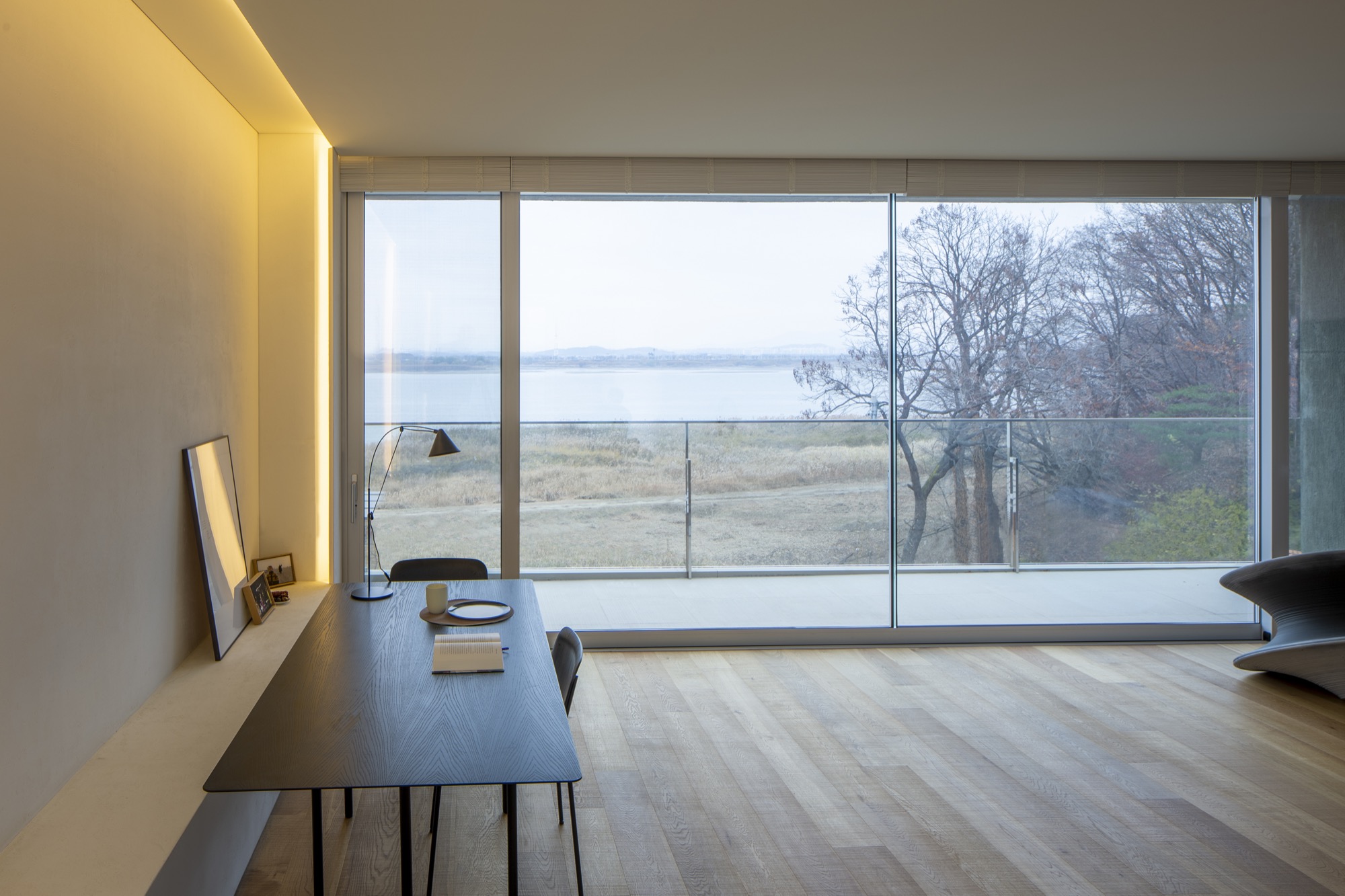 나는 그의 파편들이 새겨질 장소로서 건축은 아무것도 아니고, 아무것도 없는 결핍의 상태이기를 바랐다. 이는 극도의 절제를 바탕으로 본성적인 것, 그 내밀함의 발현이 몰입과 경계의 틈에서 솟구치는 인간의 근본적 감성을 이끌어내 공간 전체를 장악하게 하는 장치로서 존재하기 바랐기 때문이다. 건축의 존재 방식은 건축 자체가 하나의 장면이 되어 시퀀스에 따라 한도를 넘지 않는 시각적 절제를 하게 함으로써 몰입의 경계가 되도록 했다. 이는 오히려 내외부의 실제와 허상의 차이를 부정하며 그 경계가 지워짐으로 풍경을 점유한다.