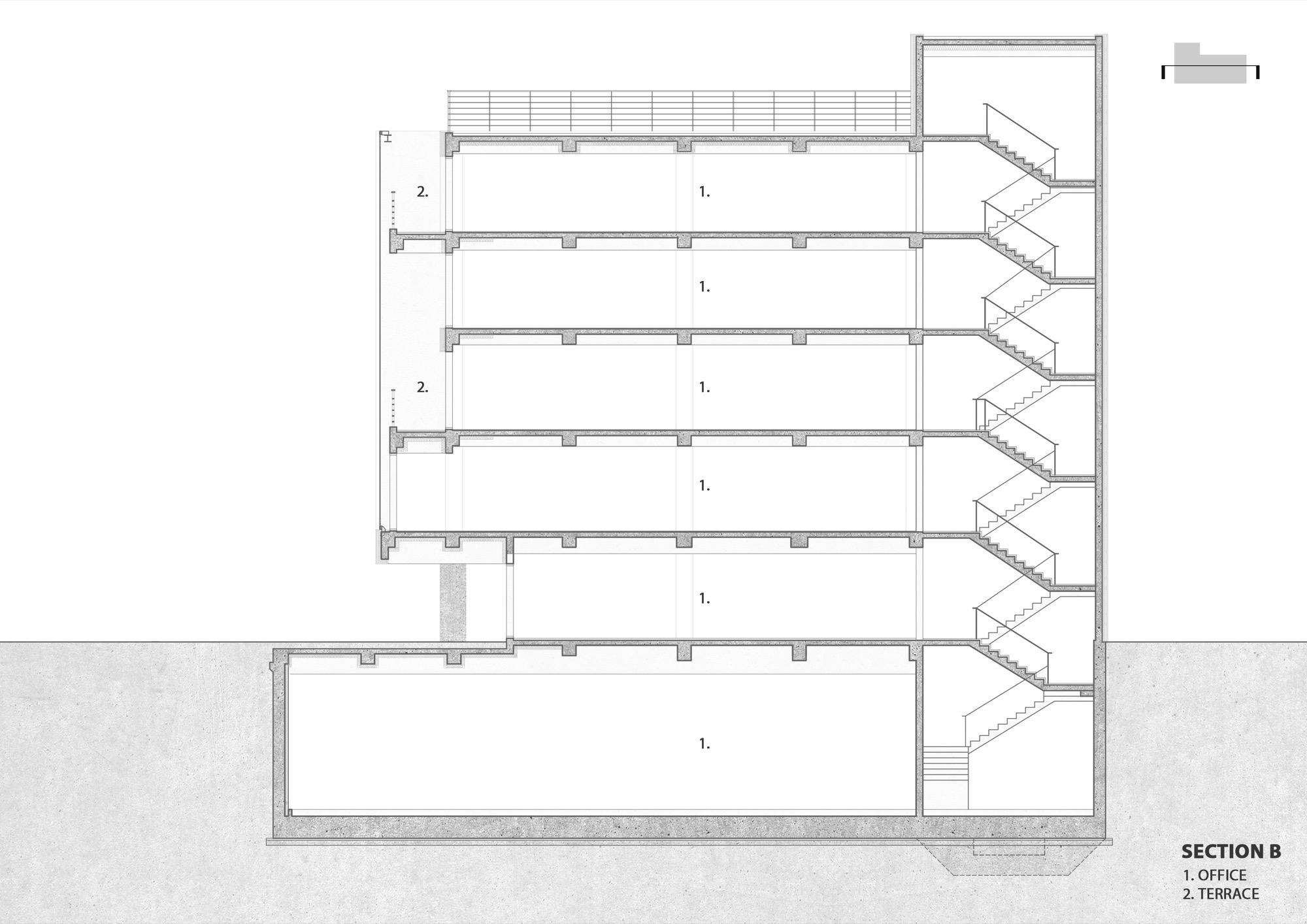 ‘오버 더 레이어’는 일조권 사선으로 일정 거리 이상 물러나야 했던 법적 최소 공간을 오히려 최대공간으로 내어주며 그사이에 켜(Layer)를 겹겹이 쌓았다. 세로로 내부 공간과 외부공간을 나눌 기준 벽들이 교집합적 공간을 만들고 가로로는 각 층의 외부공간들이 각기 다른 방향의 풍경을 실내로 끌어들인다. 이렇듯 디자이너가 건축법을 여유롭게 바라볼 수만 있다면, 그 속에서 많은 가능성과 공간을 찾게 된다.