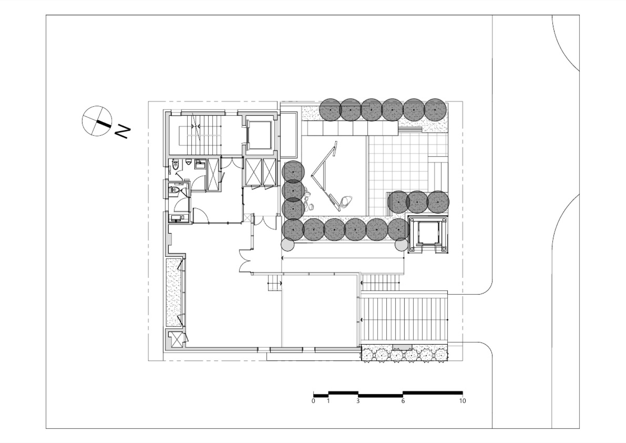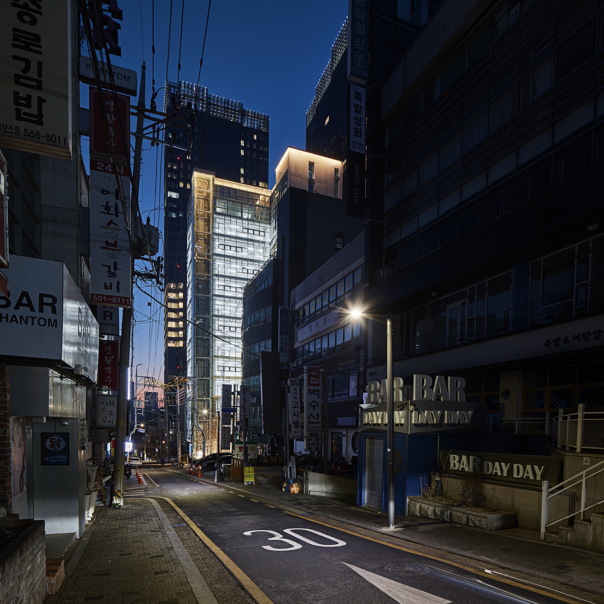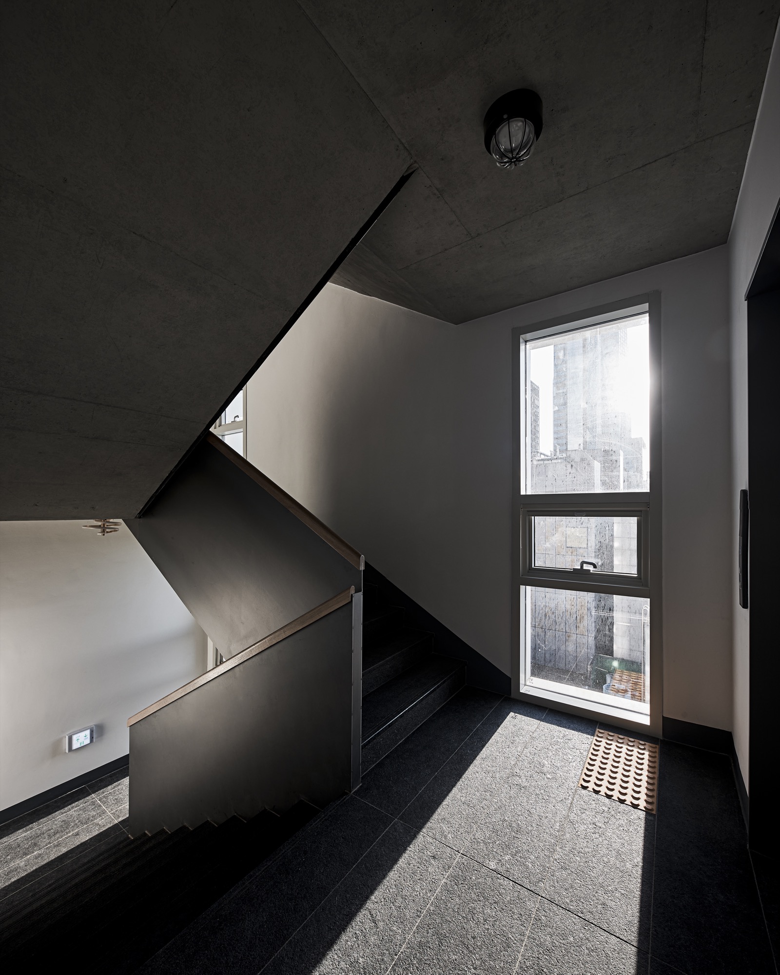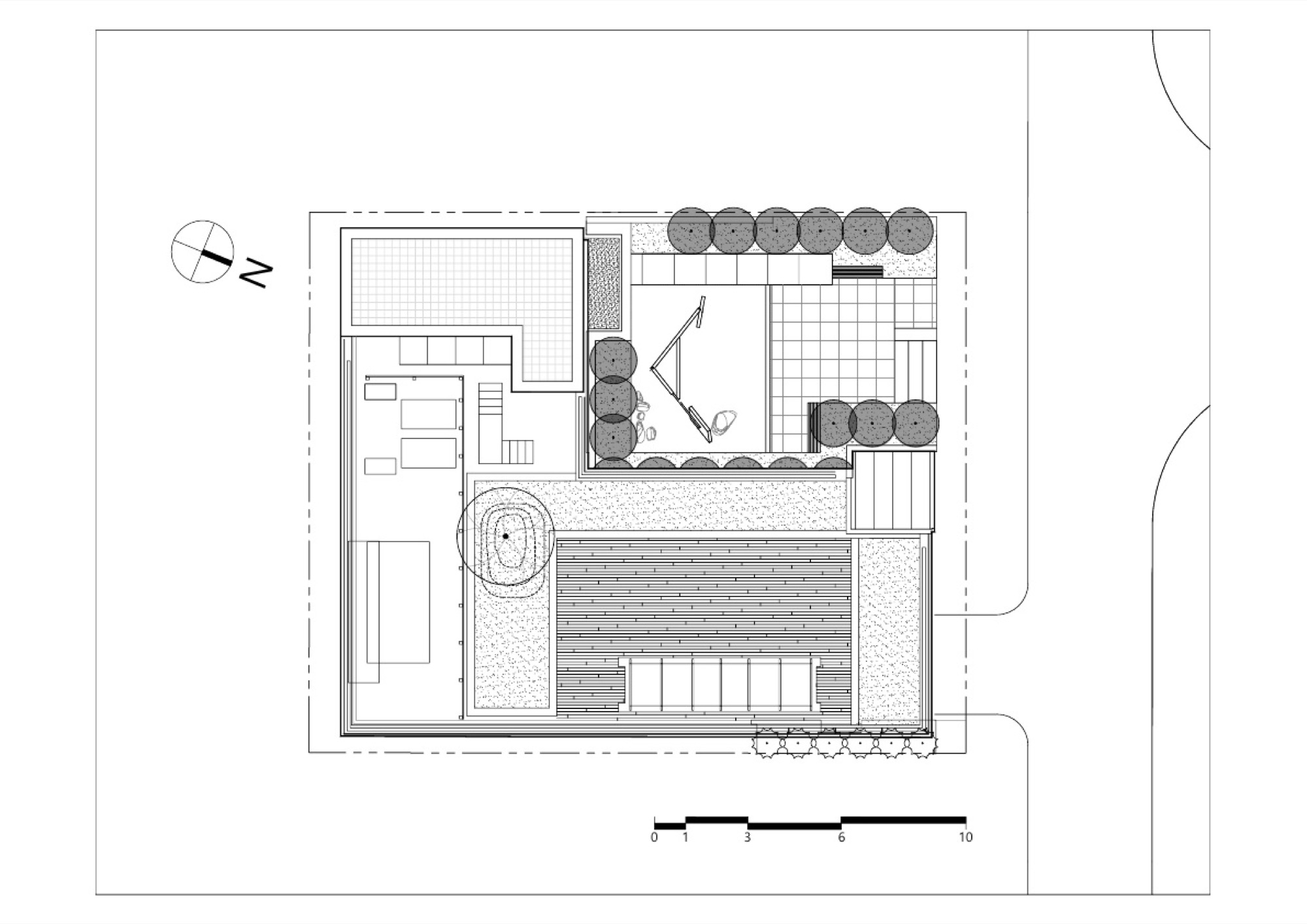 역삼역 일대의 먹자골목에 자리한 대지주변은 근린생활 시설들과 건물 앞 주차를 위한 공간으로 보행자와 차가 뒤섞여, 여유 없이 돌아가는 도심의 모습을 여과 없이 보여주고 있다. 주차공간으로만 가득 찰 대지 전면에 녹지와 여유공간을 만들어 지나가거나 주변에서 근무하는 사람들에게 숨 쉴 곳을 찾아 주기로 했다. 공개 공지 제공을 통한 높이 완화로 건축주를 설득하고, 최대 용적률을 위한 볼륨을 만들었다.