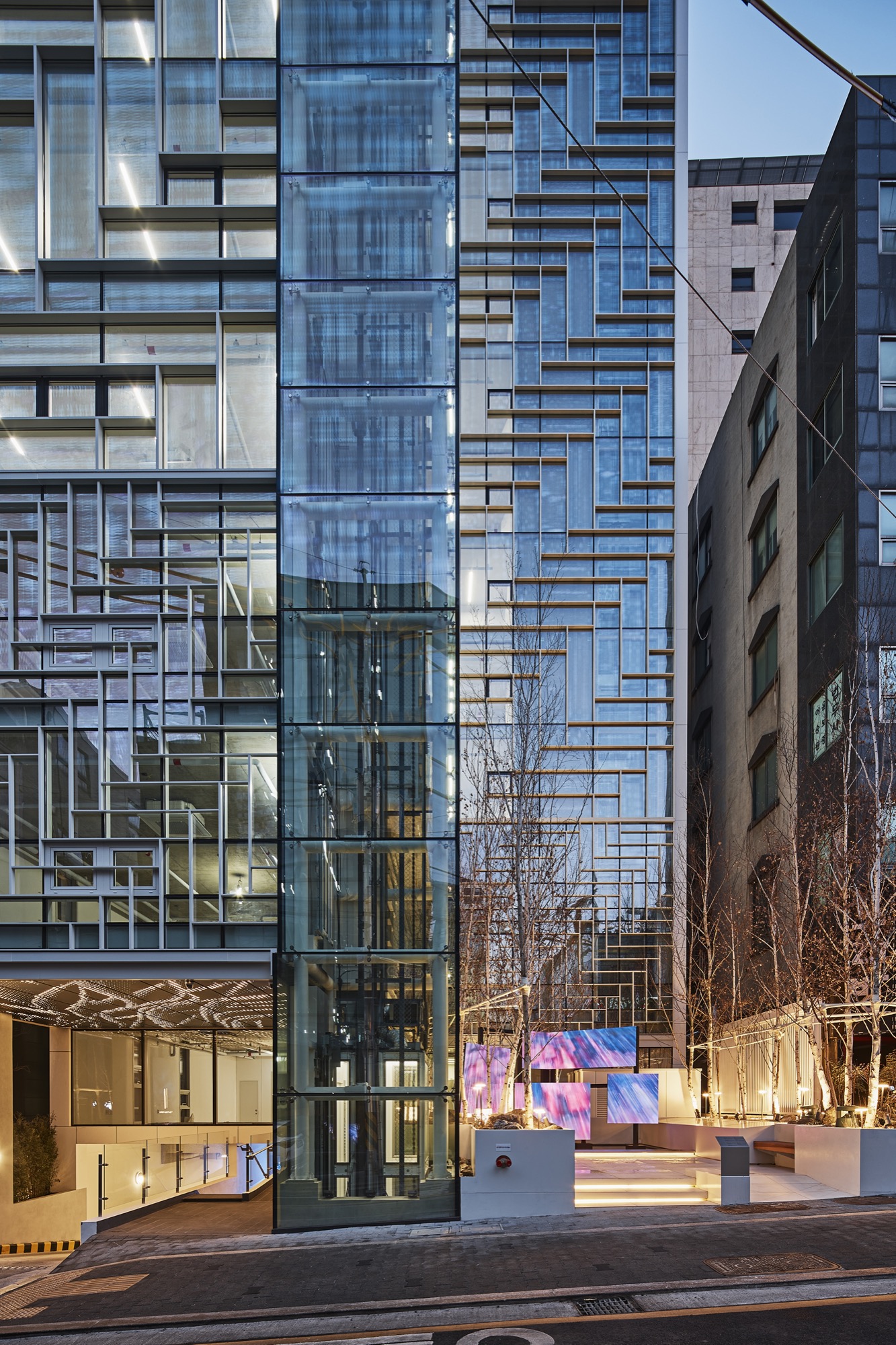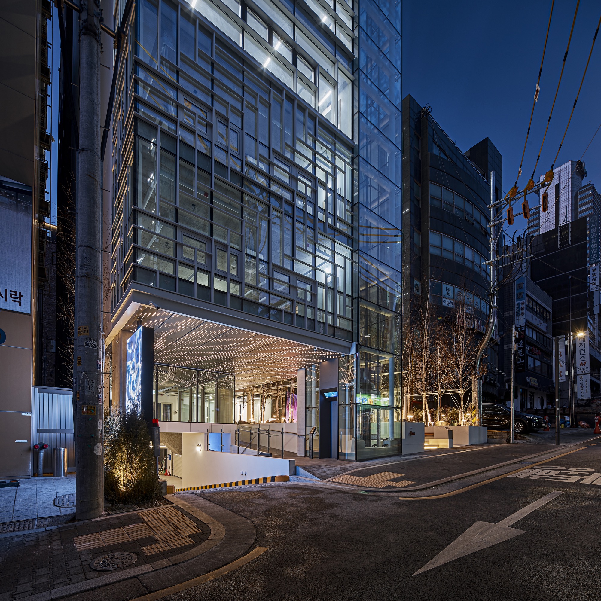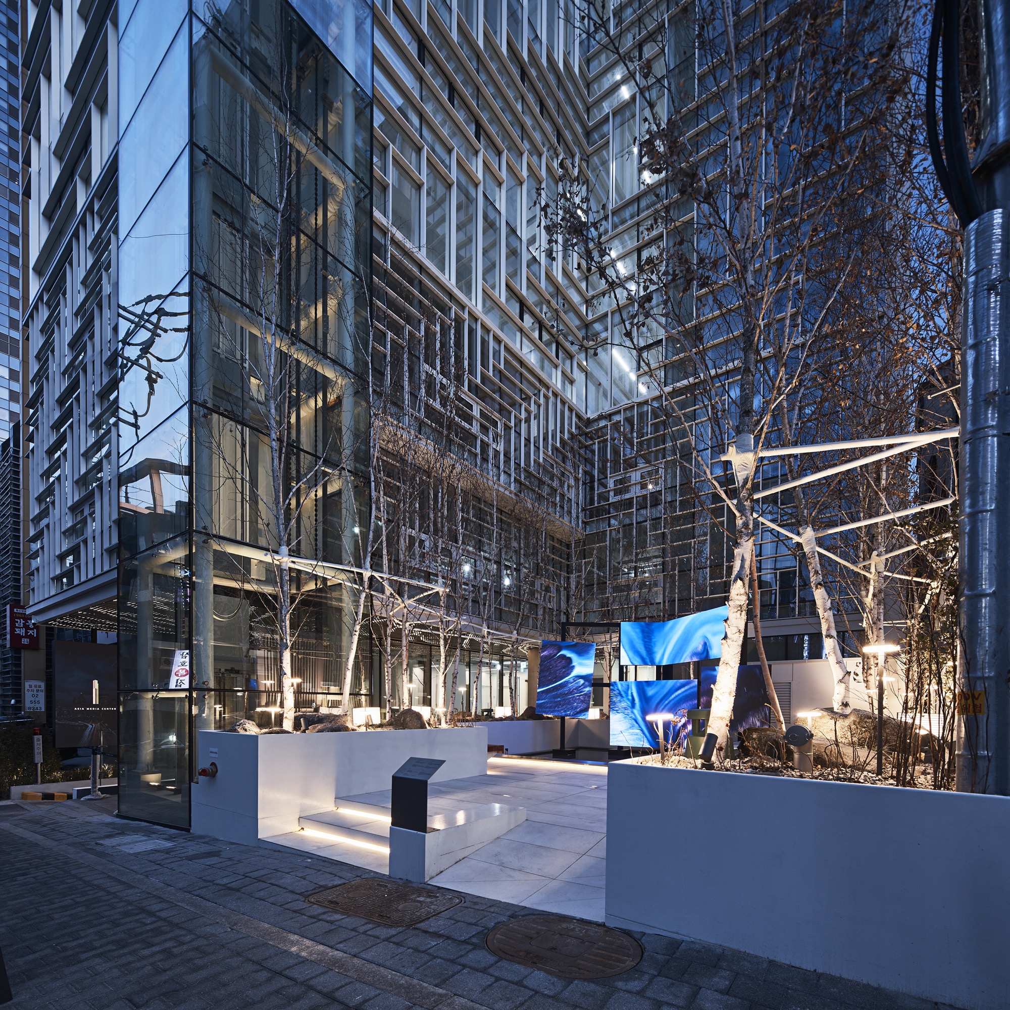 도심의 소규모 빌딩에서 도시와 공공을 위한 작은 휴게 공간과 국내외 미디어 작가들의 미디어 작품을 투사하고 있는 미디어 패널은 ‘공개공지를 어떻게 만들어야 하는지 보여주자’라는 건축주의 적극적인 도움과 함께 어수선한 골목길 상황에서도 잠시라도 쉬어갈 수 있는 공간 만들기의 결과이다.