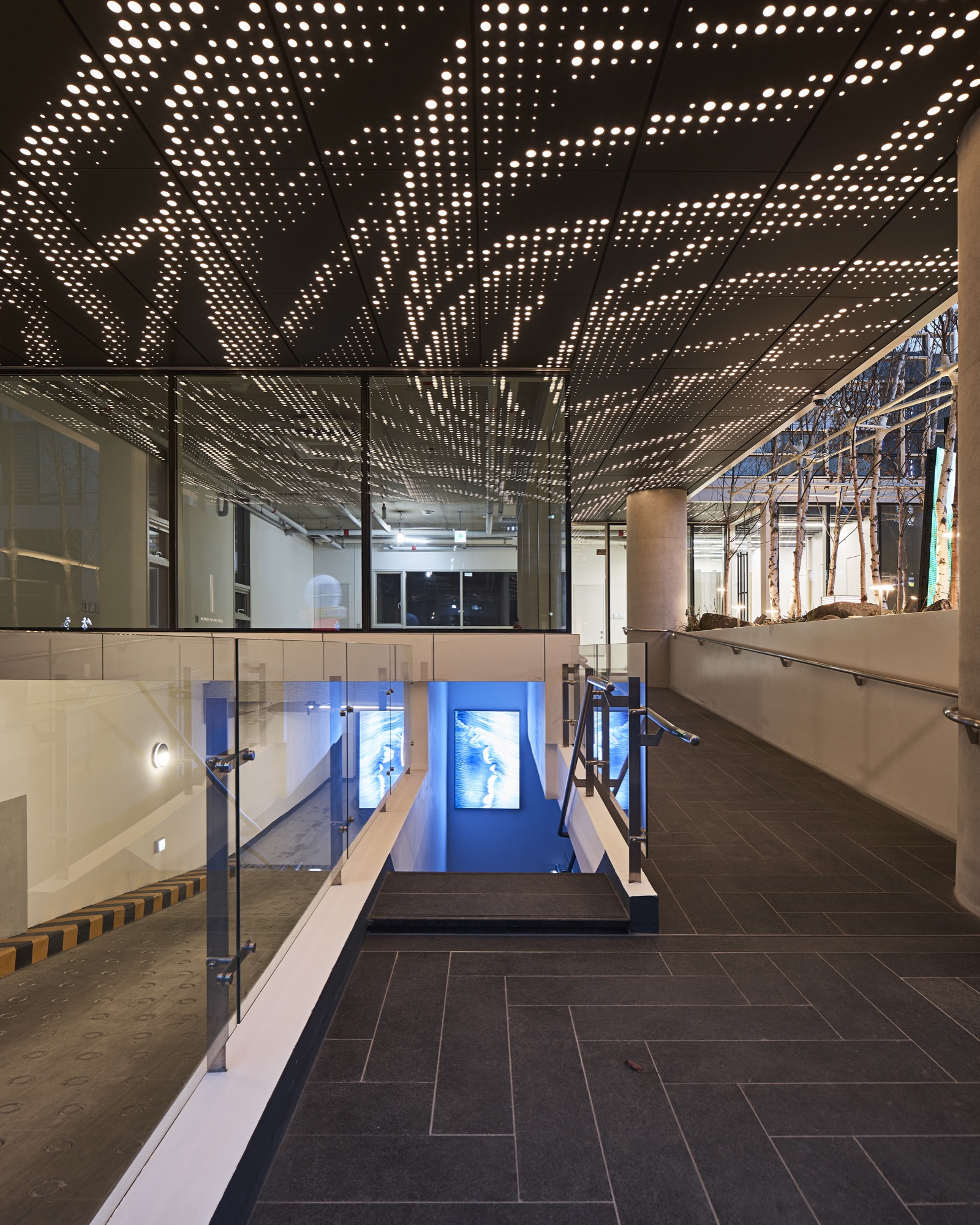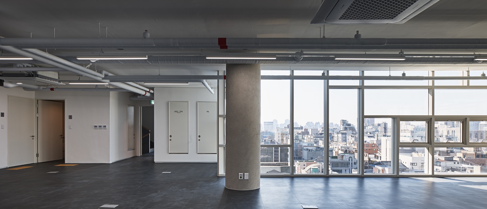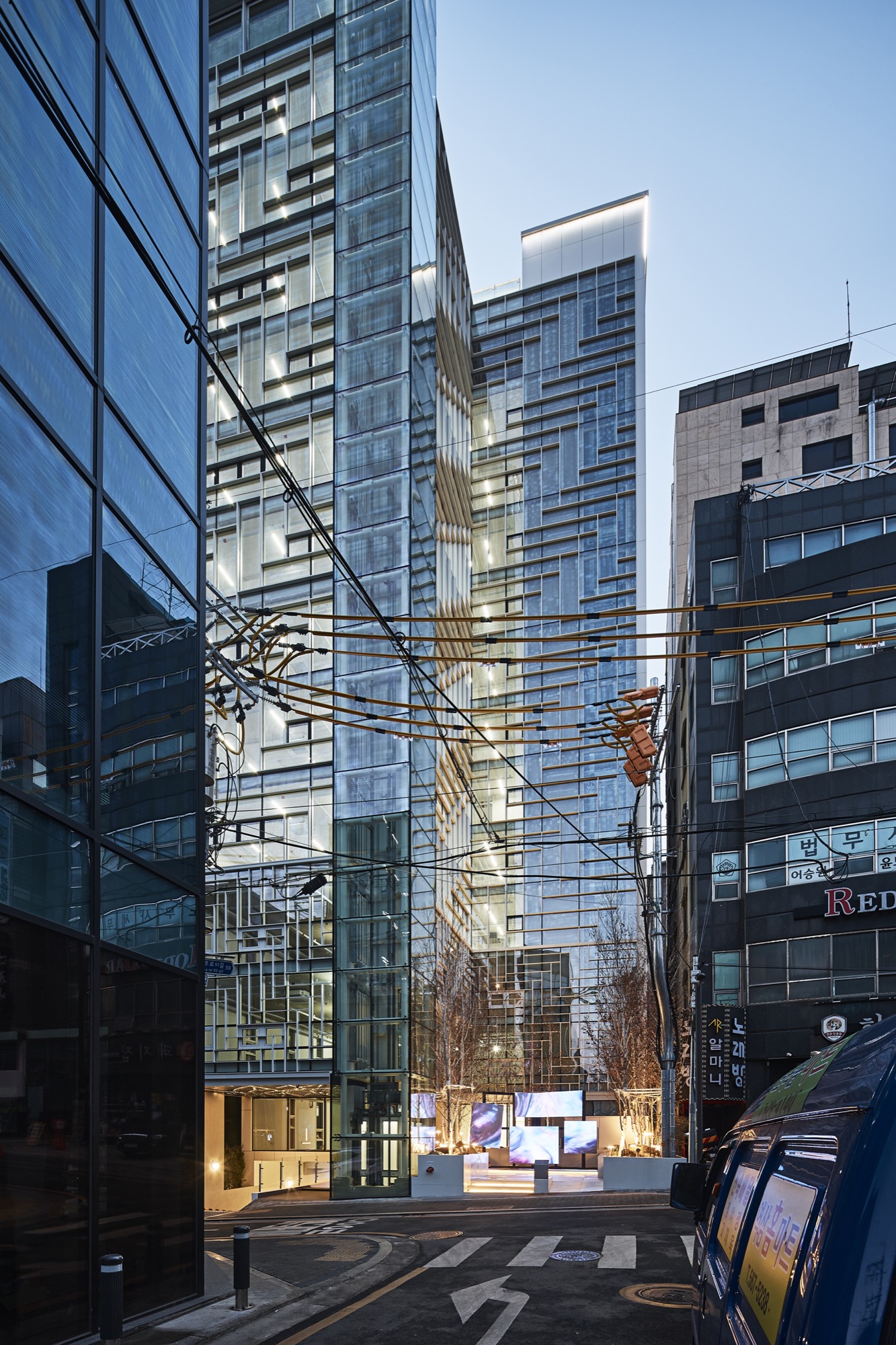 도심의 소규모 빌딩에서 도시와 공공을 위한 작은 휴게 공간과 국내외 미디어 작가들의 미디어 작품을 투사하고 있는 미디어 패널은 ‘공개공지를 어떻게 만들어야 하는지 보여주자’라는 건축주의 적극적인 도움과 함께 어수선한 골목길 상황에서도 잠시라도 쉬어갈 수 있는 공간 만들기의 결과이다.