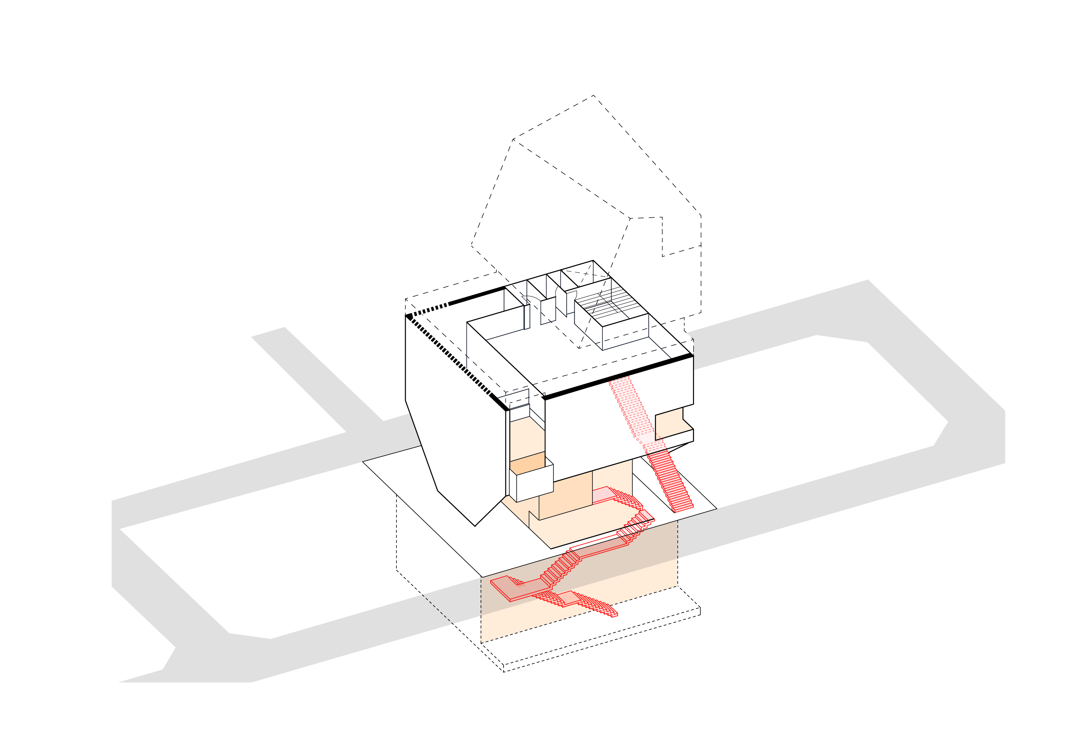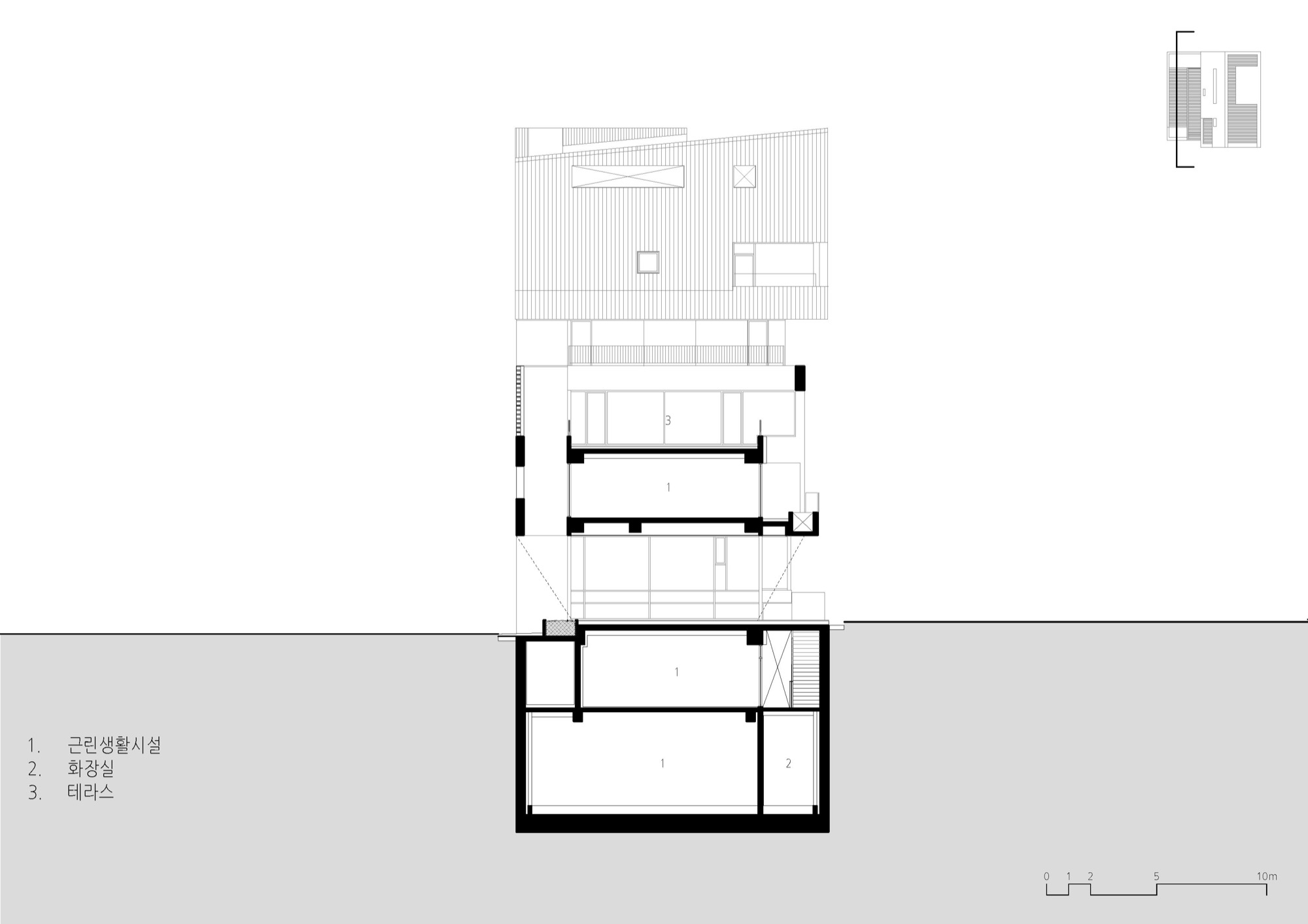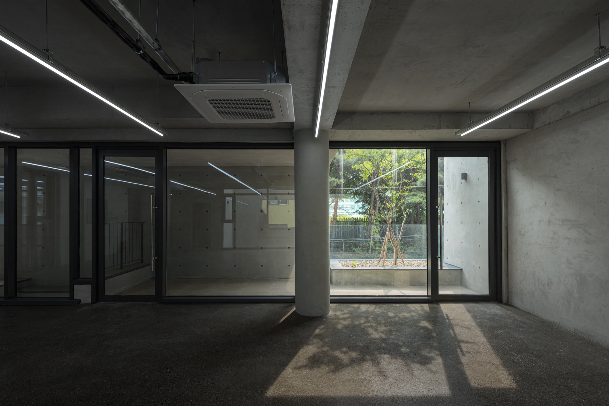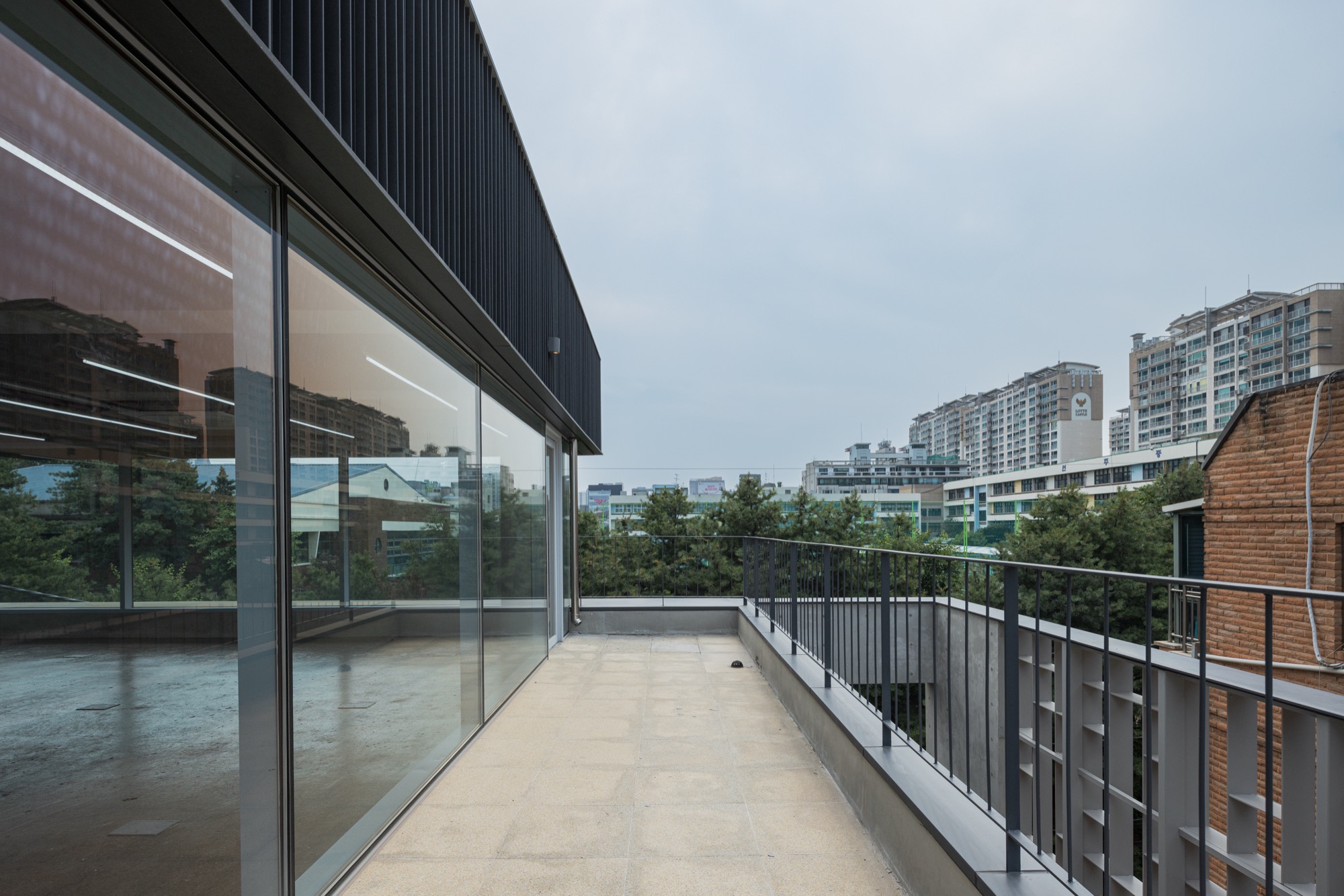 분리된 위아래 매스는 다른 형태를 하고 있지만, 서쪽 도시풍경과 관계를 맺으며 층별 공간이 구축된다. 균질한 상업공간은 주변 풍경이 들어오며 장소적 공간을 체험하는 맥락적 공간으로 구축되었다.