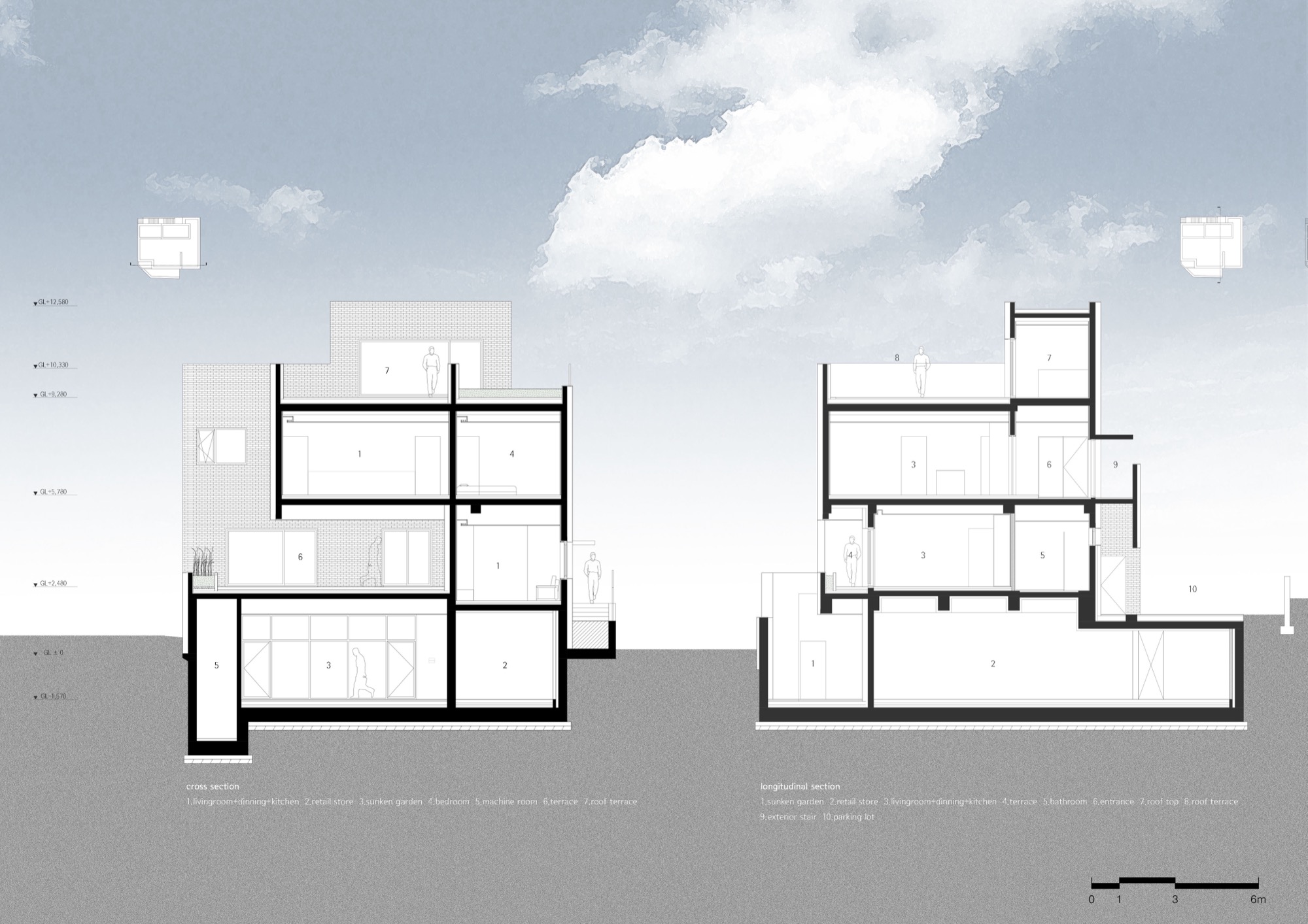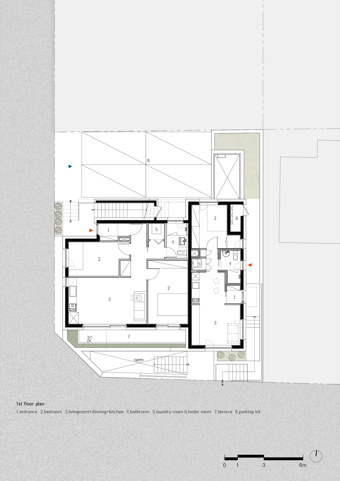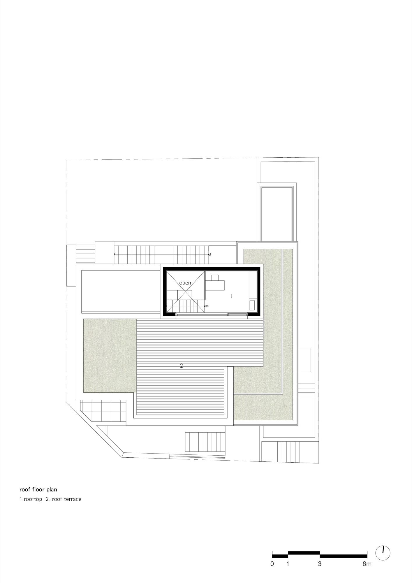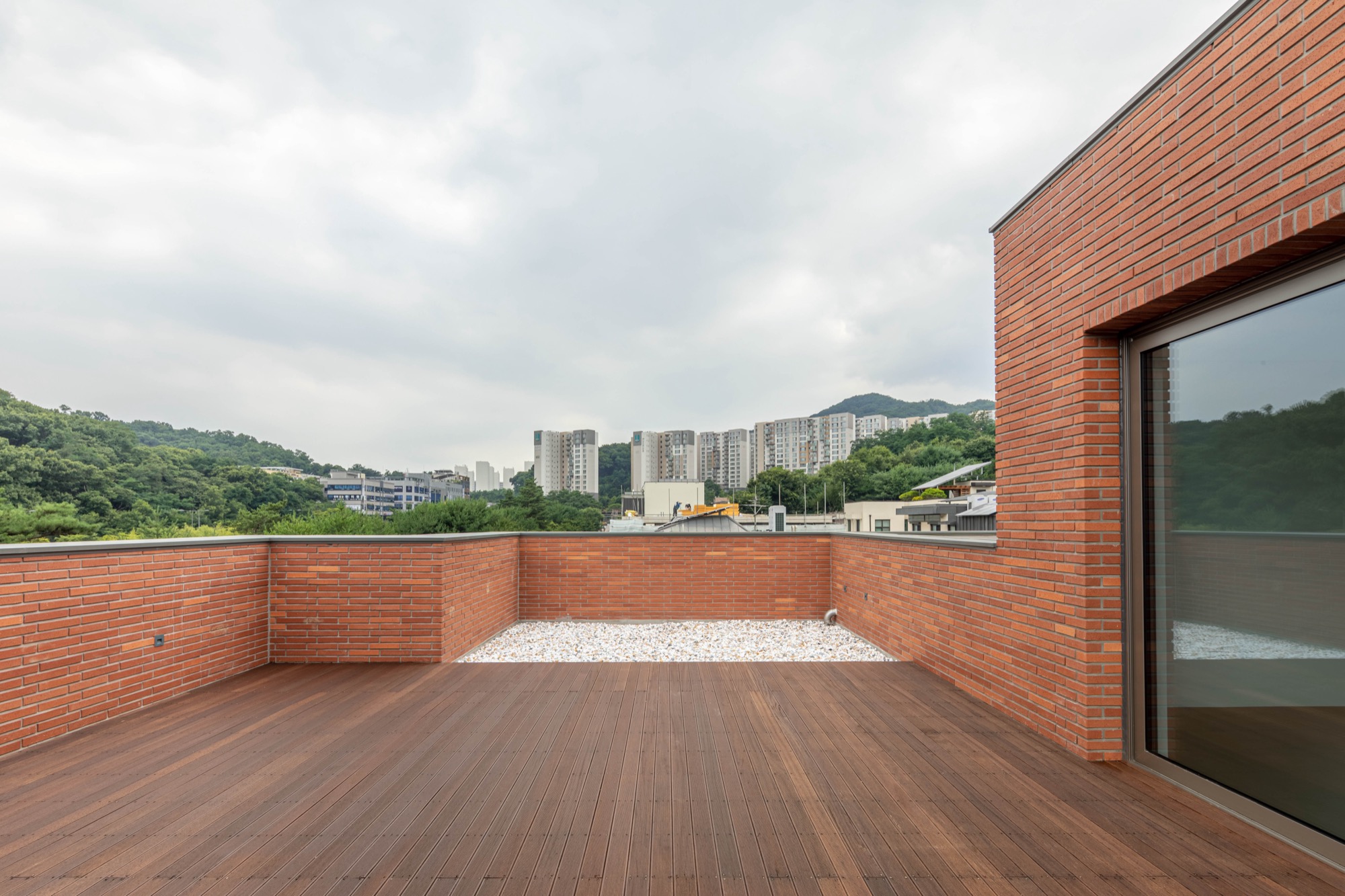 1층 외부 공간은 건축주와 세입자들을 위한 주차공간으로 대부분 조성되어, 마당과 같은 외부 활동을 위한 여유 공간이 부족했다. 이에 나무와 꽃을 좋아하는 가족을 위해 옥상정원을 계획했고, 이를 통해 부족한 1층 외부 공간을 보완할 수 있었다. 새로이 만들어진 옥상정원은 건축주가 뛰놀던 어린 시절의 마당과 같이 가족들의 추억으로 풍성해지고 있다. 동시에 아직 어린 두 남자아이들이 주변 어른들의 눈치를 보지 않고, 마음껏 뛰어놀 수 있는 놀이 공간으로 활용될 것이다.