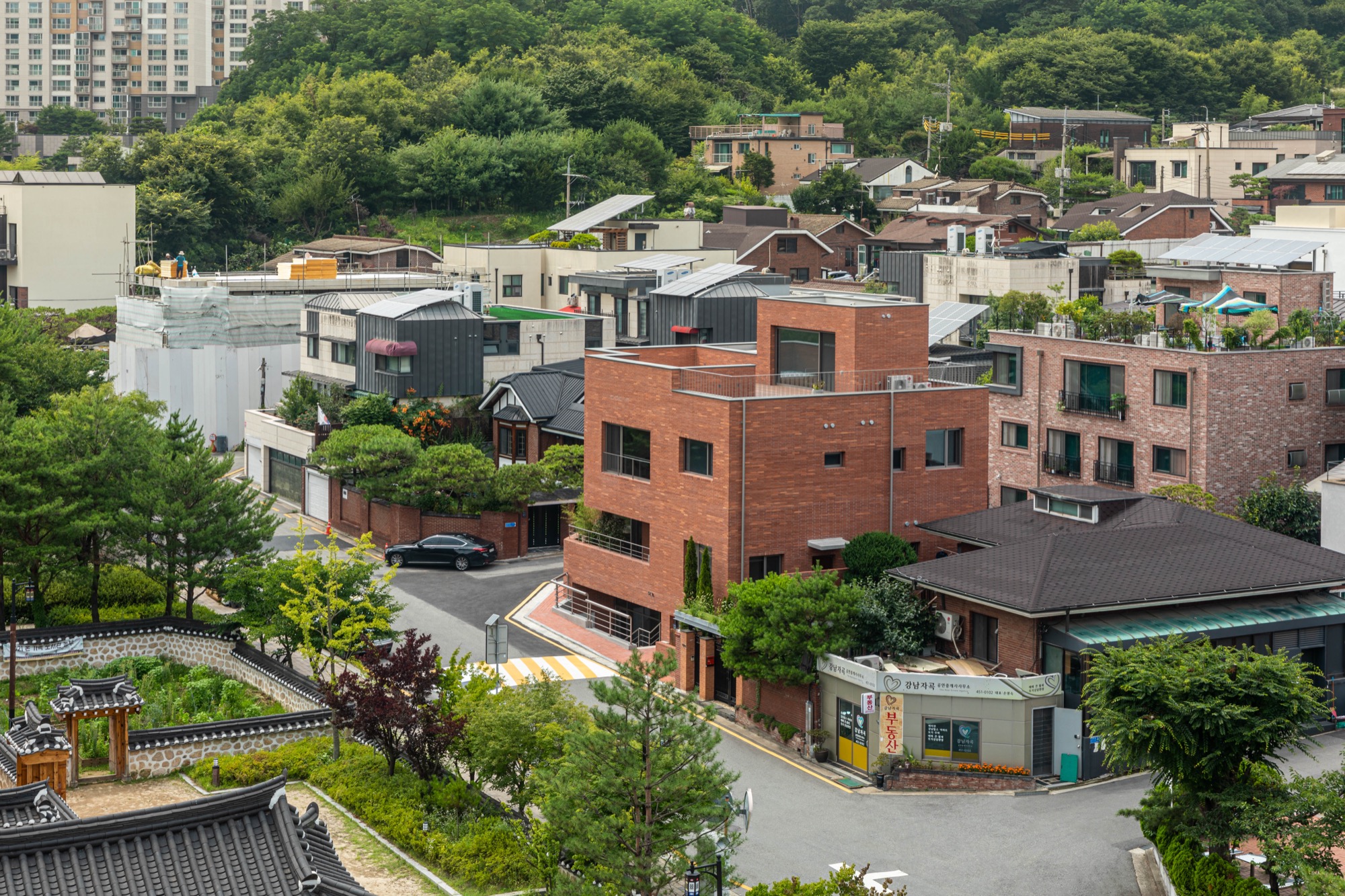 서울의 끝자락, 저층 저밀도 주거지역 내에 자리한 대지는 넓게 펼쳐진 도심 공원과 살짝 경사진 골목길에 면해 있다. 이 동네는 대략 30~40년 세월 동안 친근한 스케일과 높이, 재료들로 만들어진 서울에 얼마 남지 않은 곳이었다. 그러나 요즈음 다가구 주택 등 신축 현장이 늘고 오래된 주택들의 개발이 한창 진행 중이다. 건축주는 유년기부터 살아온 집터에 점차 사라져가고 있는 동네의 고유한 정서가 담긴 집을 만들고자 했다.