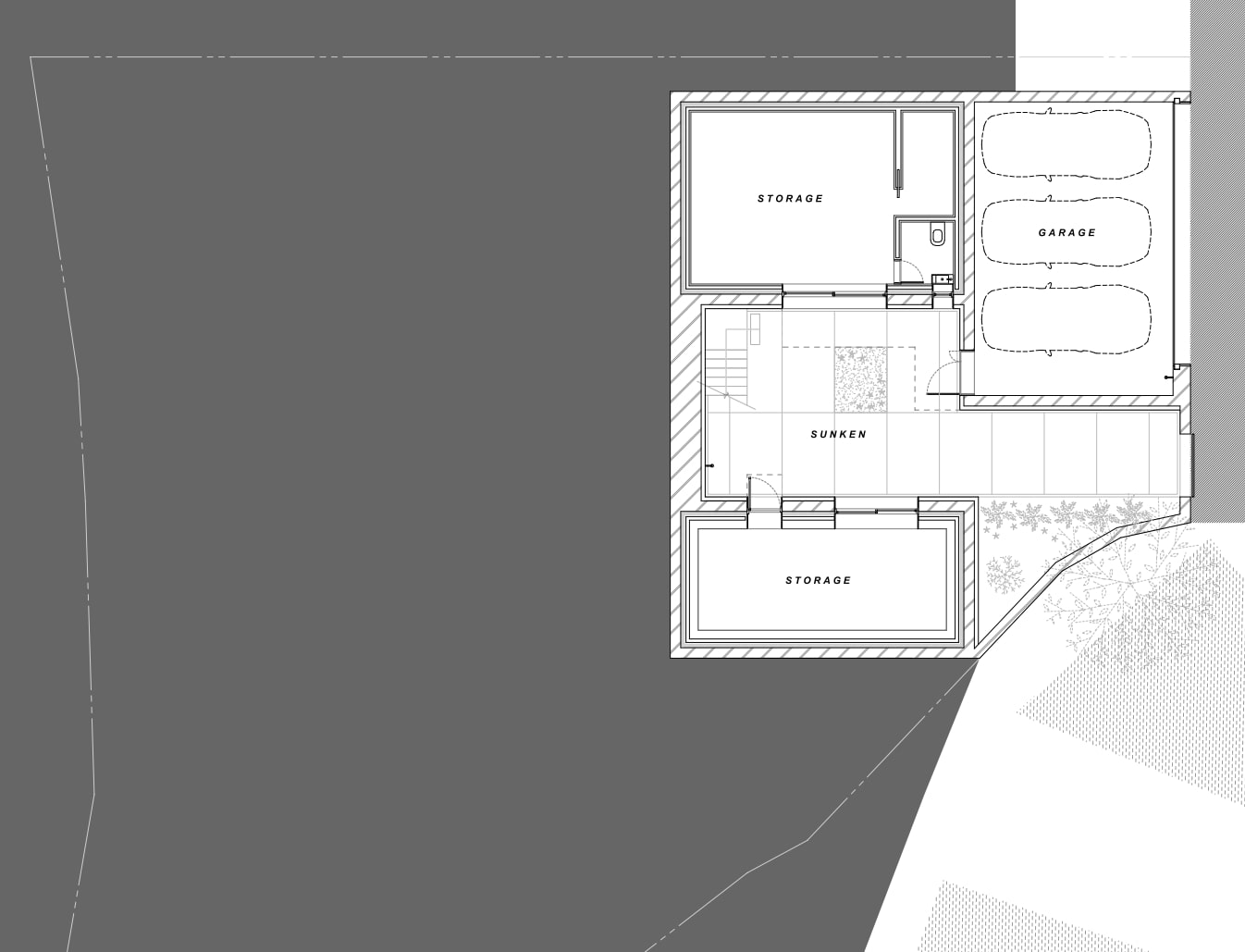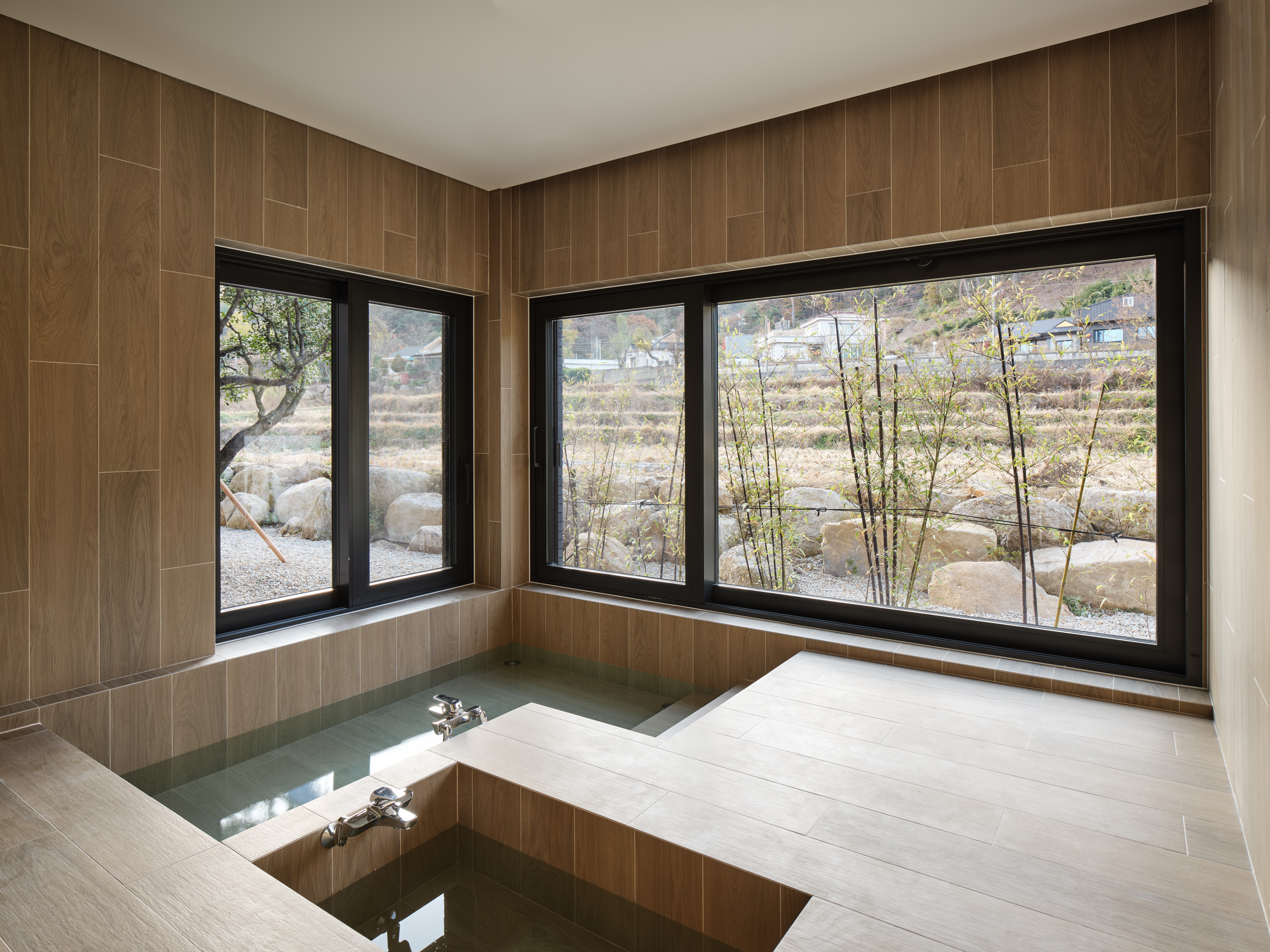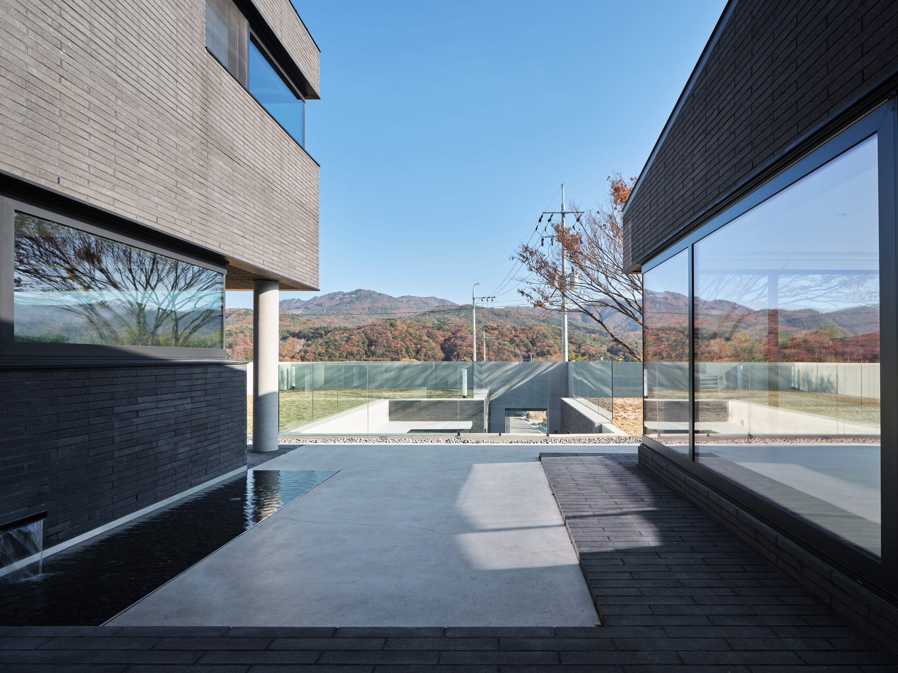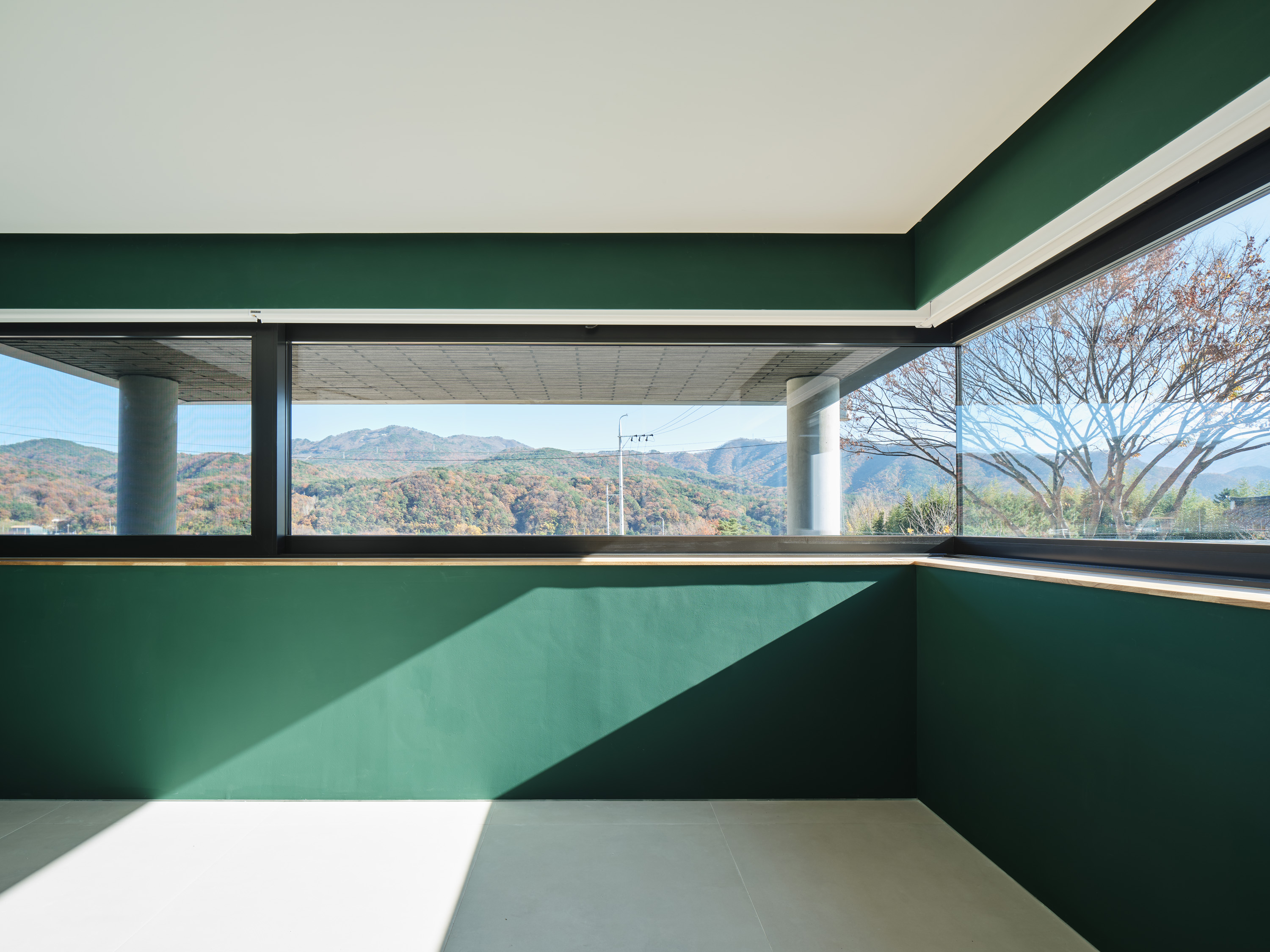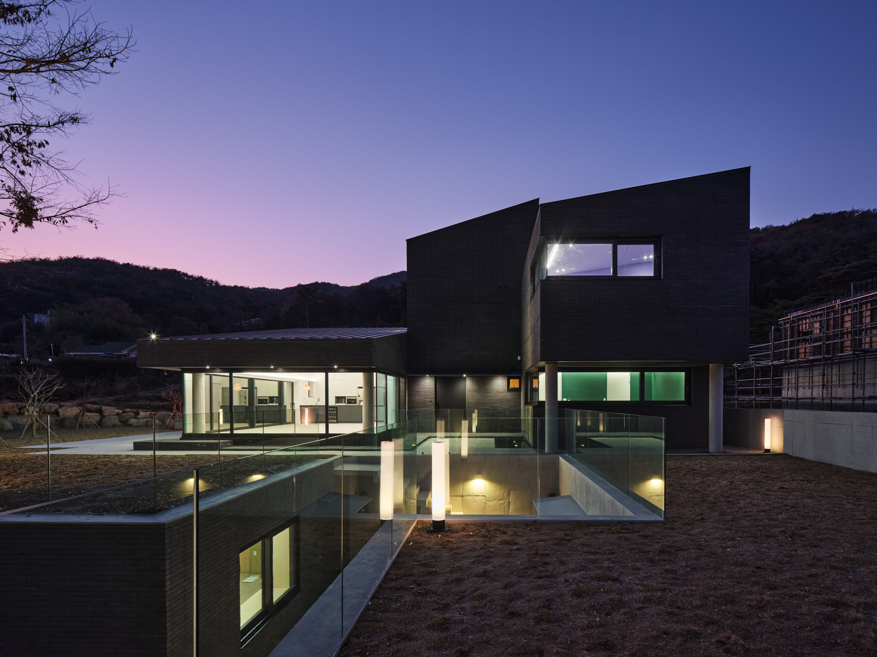 건축주는 노년의 즐거운 삶을 위해 주변 사람들과 함께 즐길 공간을 지하에 마련하고자 했다. 독립된 제2의 집이 놀이터가 된 셈이다. 곧게 뻗은 대나무 정원이 반겨주는 선큰은 놀이터 마당으로 낮에는 정족산의 시원한 바람이 들고, 밤에는 별이 가득한 하늘을 담는다. 마주 보는 곳에 당구장과 노래방이 위치해 있는데, 지인들과 오가며 흥겨운 시간을 보내고, 마당에 아무렇게 앉아 별을 보며 노곤한 몸을 쉬이면 좋겠다는 생각이었다. 생활공간과 떨어져 소음 걱정이 없고, 작은 화장실까지 마련되어있어 집안까지 들어올 일이 없도록 계획했다.