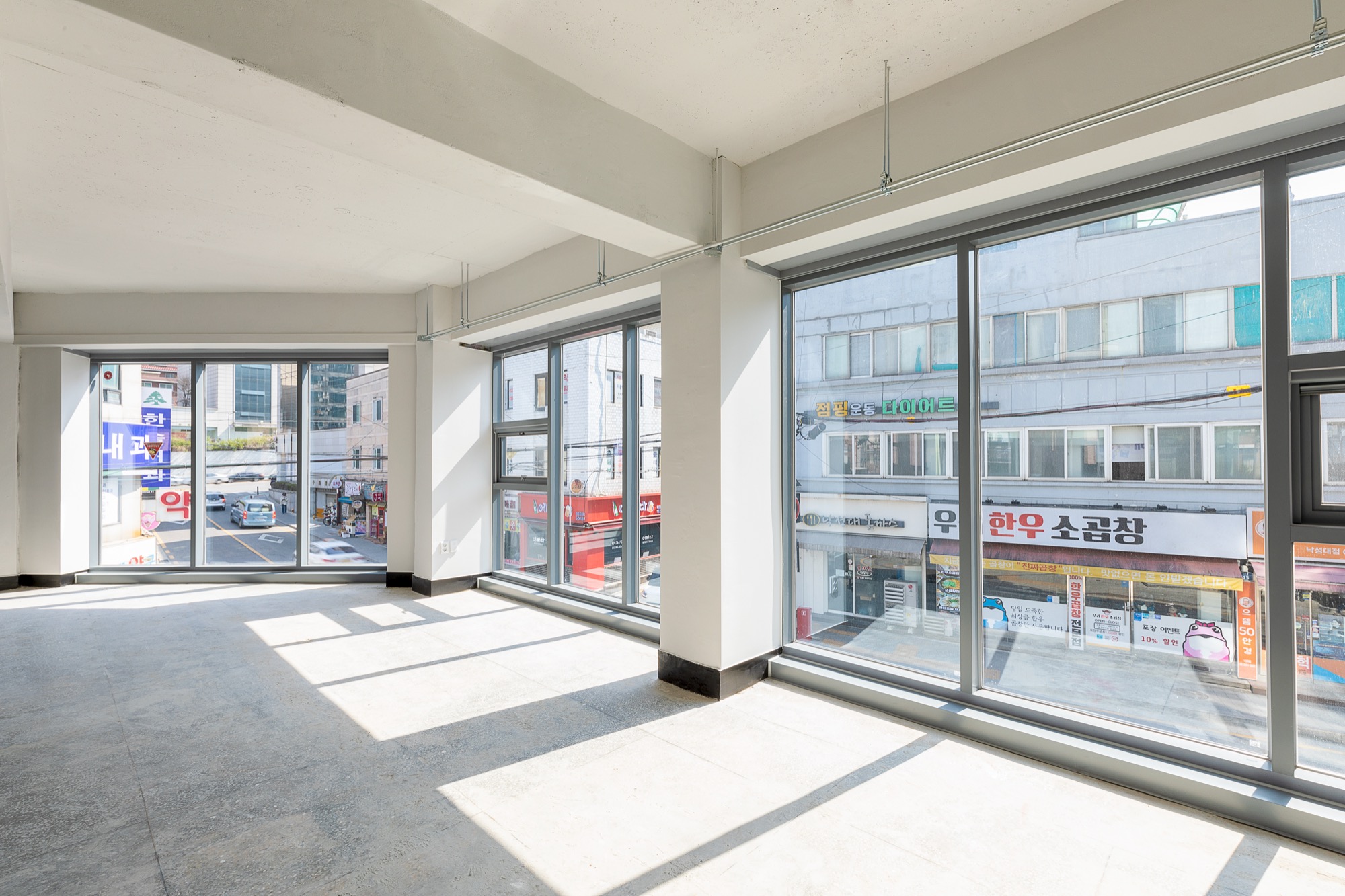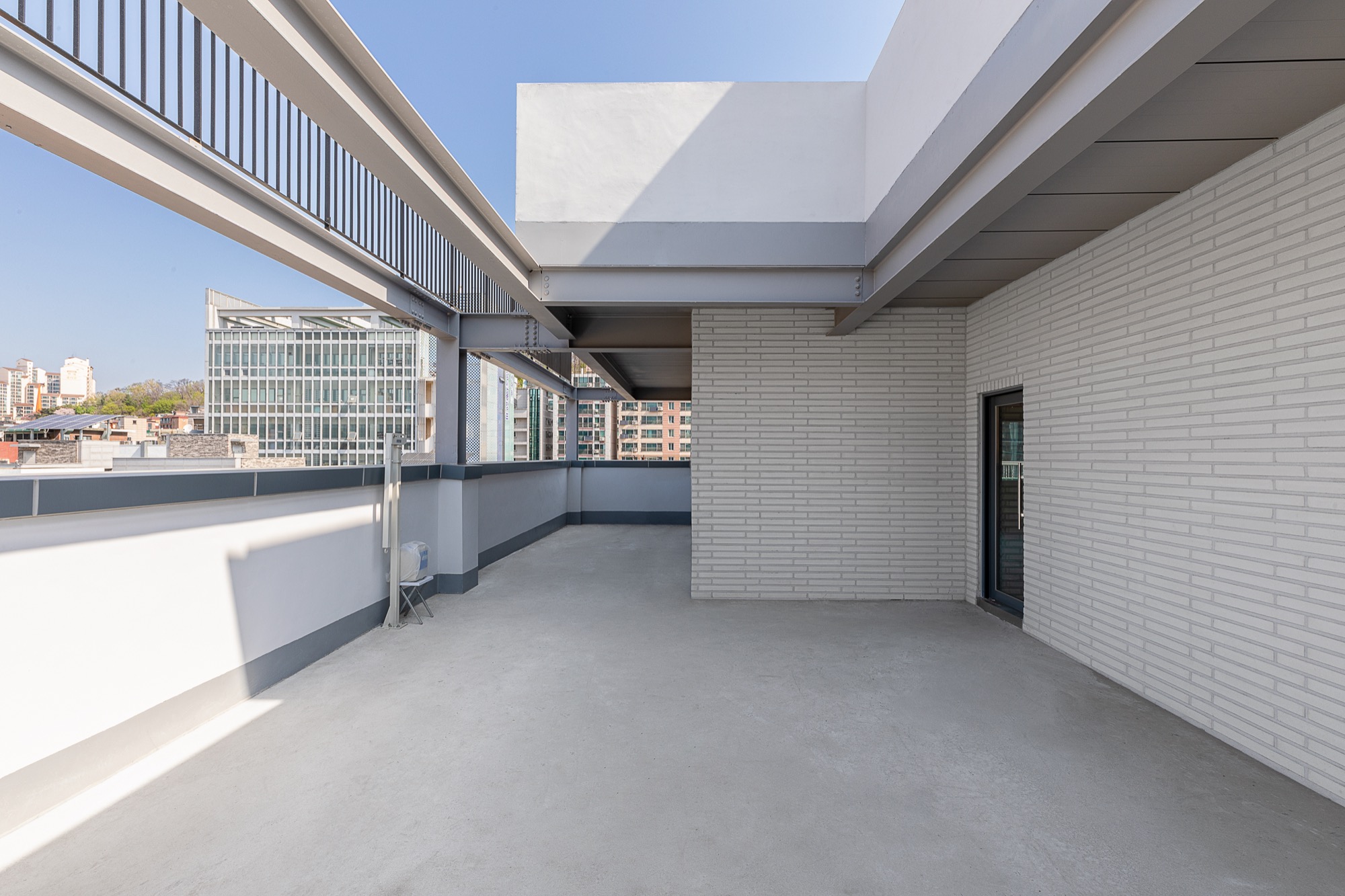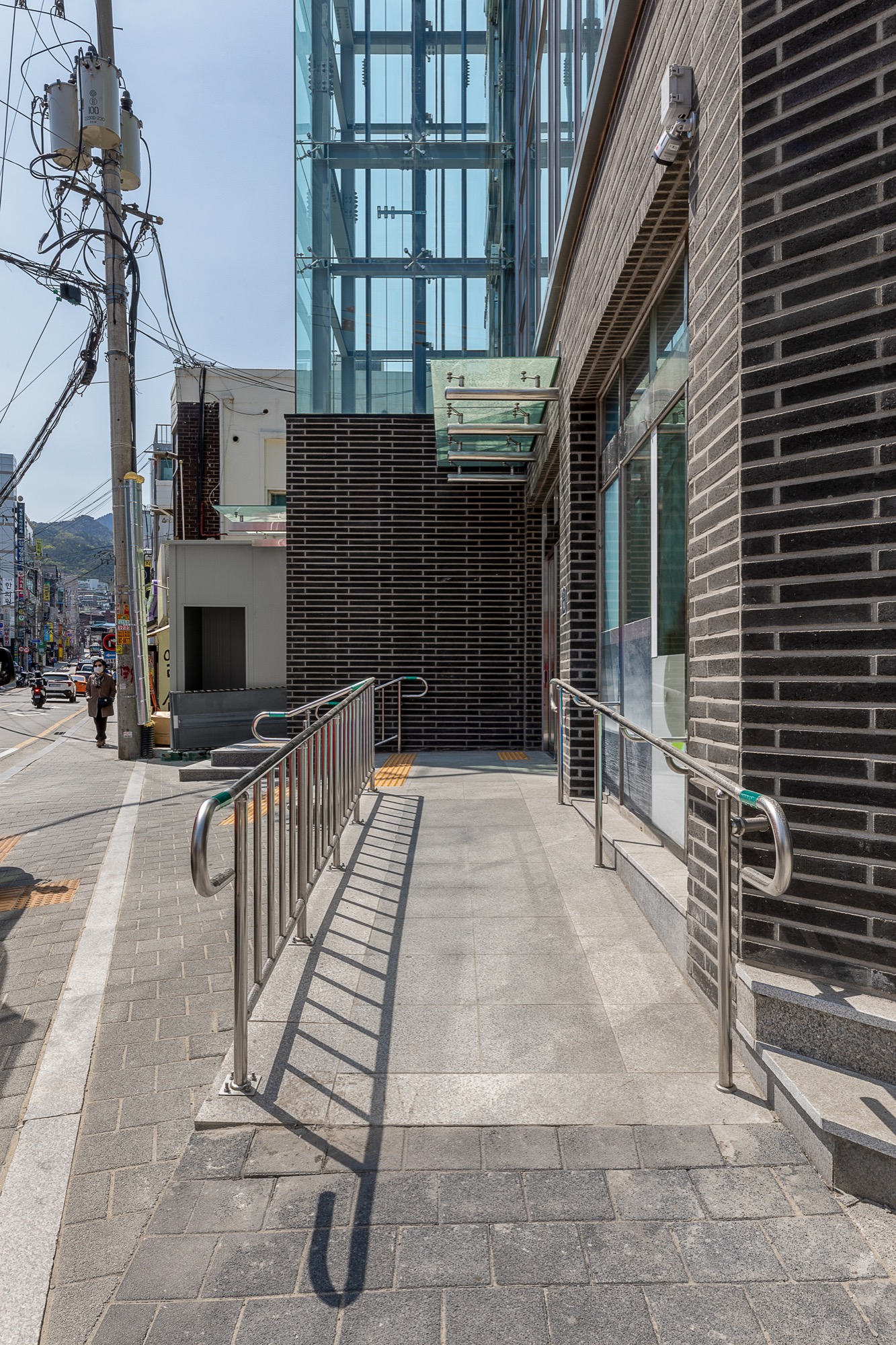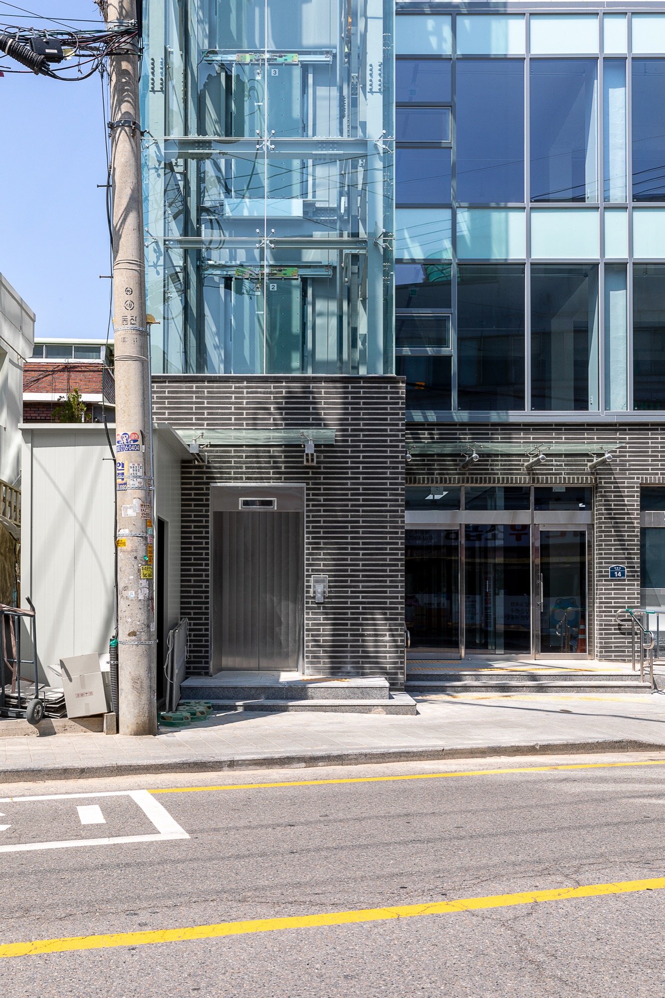 외부에서 바로 이용할 수 있는 엘리베이터는 '원하는 곳으로 바로 들어갈 순 없을까?'라는 생각에서 시작되었다. 외부 엘리베이터는 바로 원하는 층으로 이동하게 해주고, 불필요한 로비 공간을 줄였다. 진입 동선 확보를 위한 로비는 큰 건물에서는 효율적이지만, 중규모 건물, 특히 상업성을 목적으로 하는 건물에서는 계륵과도 같은 존재다. 필요하지만, 관리의 어려움이 함께 따라온다. 관리 업체가 있다면 다행이지만, 중규모 건물에서 관리 업체를 두는 것은 쉽지 않다. 그렇기에 이번 프로젝트에서는 과감하게 로비 공간을 최소화하고, 도로에서 바로 출입이 가능한 전망용 엘리베이터를 설치했다. 엘리베이터는 길을 지나는 사람들의 시선을 끄는 랜드마크 역할을 하는 동시에, 불필요한 공용 공간을 줄이는 두 가지 역할을 한다.