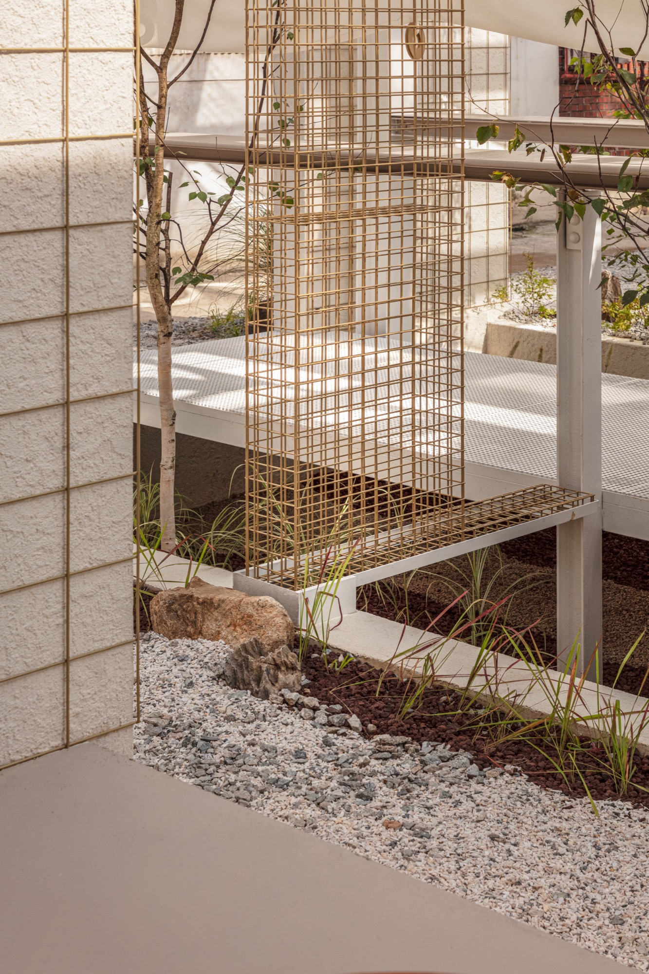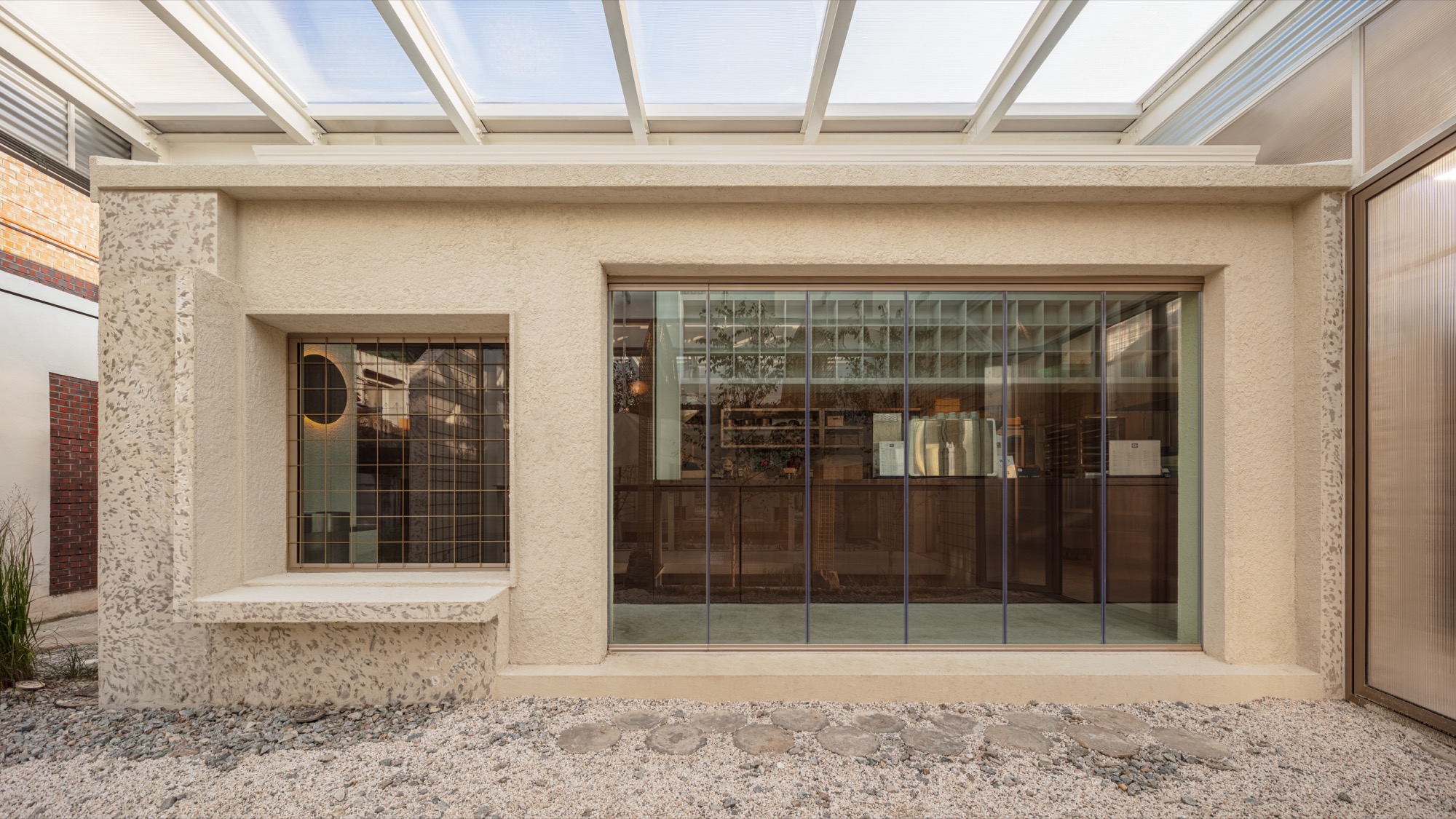 카페 카운터가 있는 북쪽 건물은 단열과 온도 조절이 가능한 유일한 실내 공간이다. 중간 건물은 양 옆면을 제외한 모든 벽을 철거하고 메탈 격자 벽을 설치해 빛이 통과할 수 있게 했다. 또한, 땅을 파내 선큰 정원을 조성하여 나무와 풀 사이를 걸을 수 있는 중정을 만들었다. 남쪽 건물은 내부 벽을 보존하고 가운데 건물과 공원을 마주하는 외벽을 허물었다. 외벽이 허물어져 외부가 된 공간에는 대청마루와 같은 공간을 만들어 주위 자연경관을 즐길 수 있도록 했다. 또한, 동쪽에는 기존 세 건물을 연결하는 하나의 통로를 두어 각 건물의 변화된 모습을 경험하며 이동할 수 있게 했다.