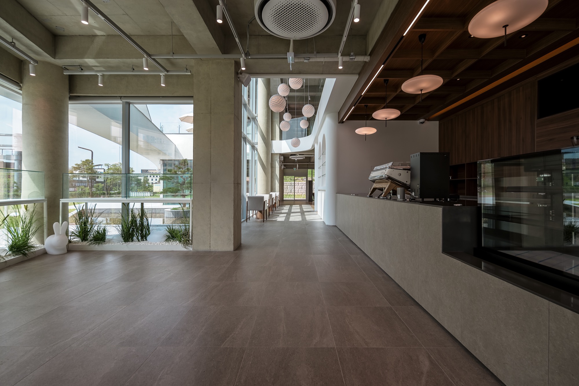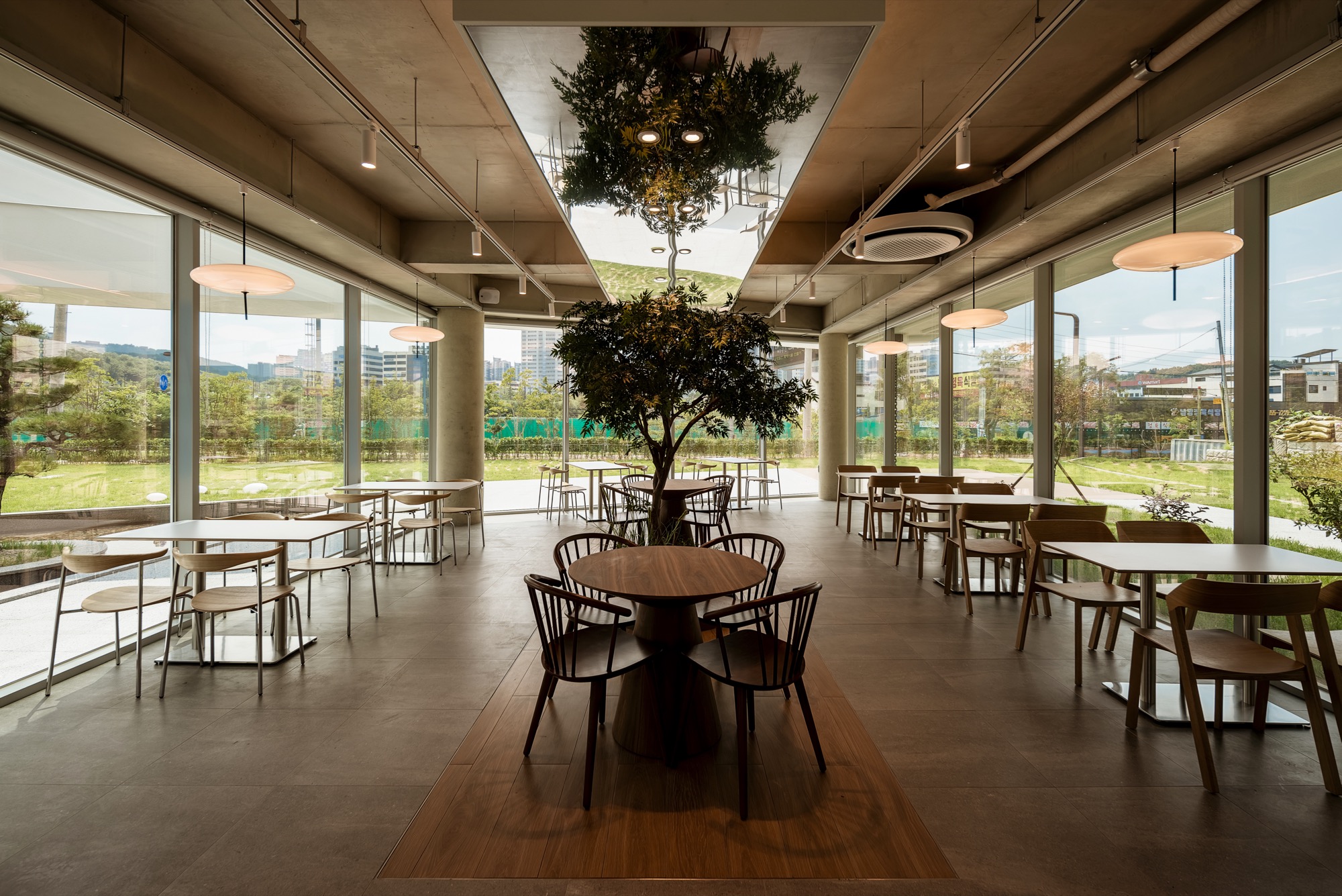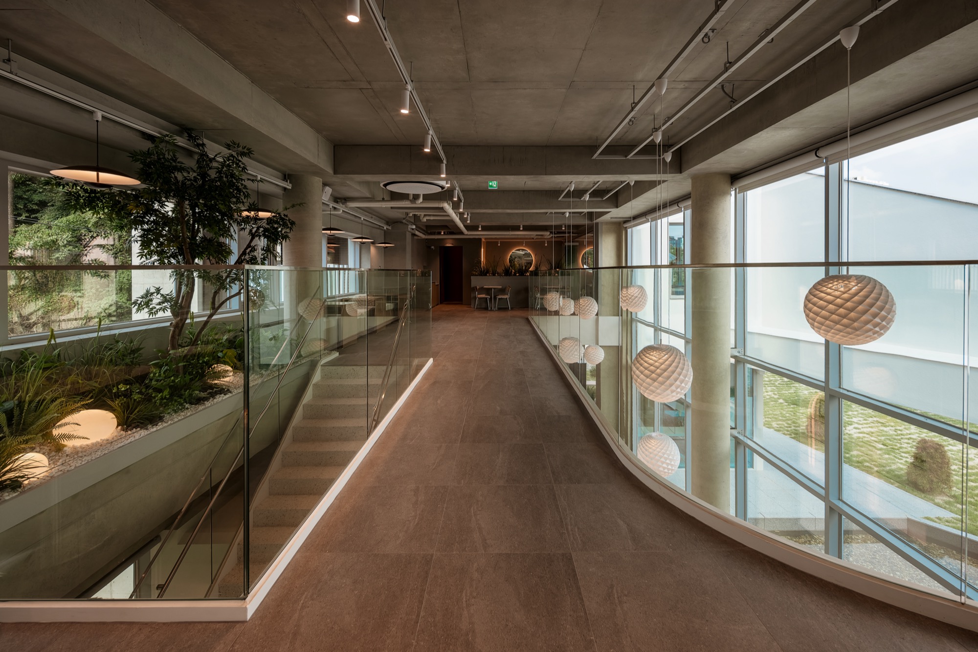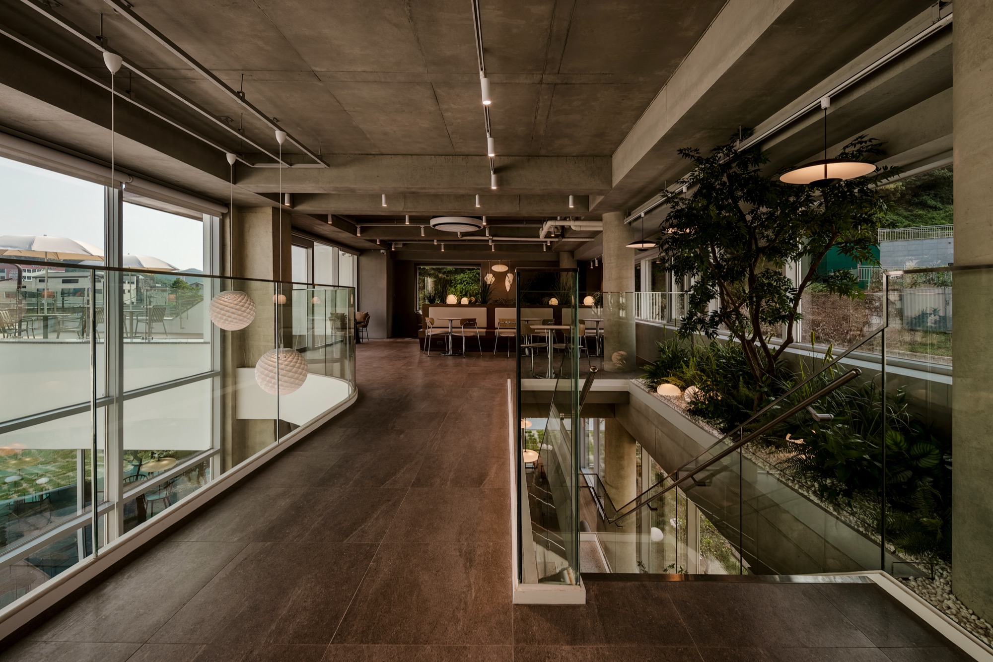 유리는 외부공간과 중정의 수공간 모습을 반사하고 투영하며, 내부와 외부의 경계를 흐리게 만들어 안과 밖의 공간이 서로 관계를 맺고, 콘크리트 구조체는 마감을 최소화하여 공간의 본질을 드러내고, 이와 대비되는 자연소재의 우드와 플랜테리어를 조합하여 따뜻하고 친근한 실내환경을 구성하였다. 이러한 요소들은 방문객들에게 마치 자연 속에 있는 듯한 경험을 제공하며, 도시 생활의 스트레스에서 벗어나게 한다. 이는 단순히 물리적인 공간의 배치뿐만 아니라, 감성적으로도 방문객들에게 긍정적인 영향을 미칠 수 있는 요소로 작용한다.