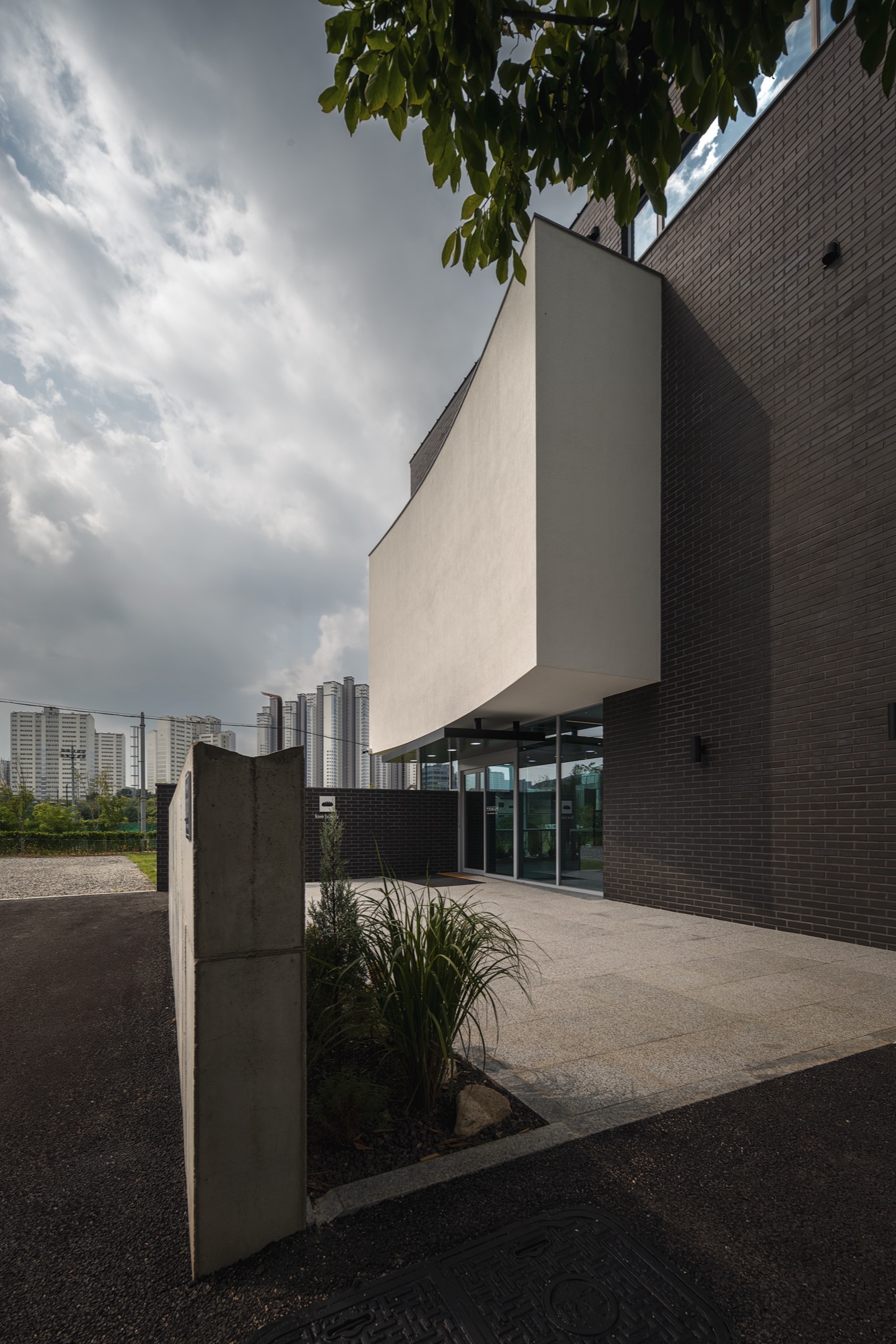 건축주의 요구사항을 바탕으로 화성시의 심볼을 모티브로 한 형태를 구상하였다. 비정형의 대지 위에 비정형의 화성시 심볼이 내려앉았다. 이 불규칙한 형태는 건축적 형태로 변환되었고, 직선의 담장과 벽으로 질서를 구축해나갔다. 우리는 이를 극대화하여 존재감을 확연히 드러내면서도 주변의 난잡함을 조율할 수 있는 절제된 조형미를 가진 건축물을 만들고자 했다. 대지 위에 떠있는 화성시 심볼 위에 단아한 주택이 자리 잡은 모습이 되었다.