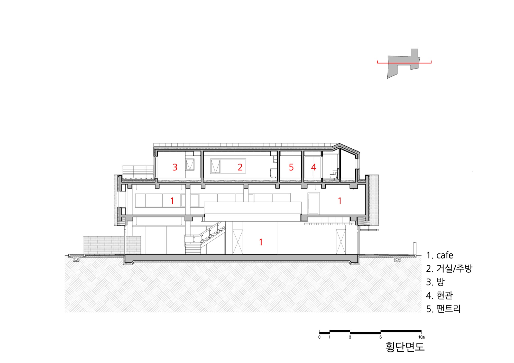 평지붕은 2층(8m), 경사지붕은 3층(11m)까지 가능한 땅이다. 건축주는 1층과 2층에 직접 운영할 베이커리 카페, 3층에는 주거 공간을 요구하였다. 그는 또한 자신의 고향인 화성시의 아이덴티티를 건물의 디자인에 반영하고자 하는 열망이 있었다. 고향인 화성시에 하나밖에 없는 나의 집이었으면 했다.