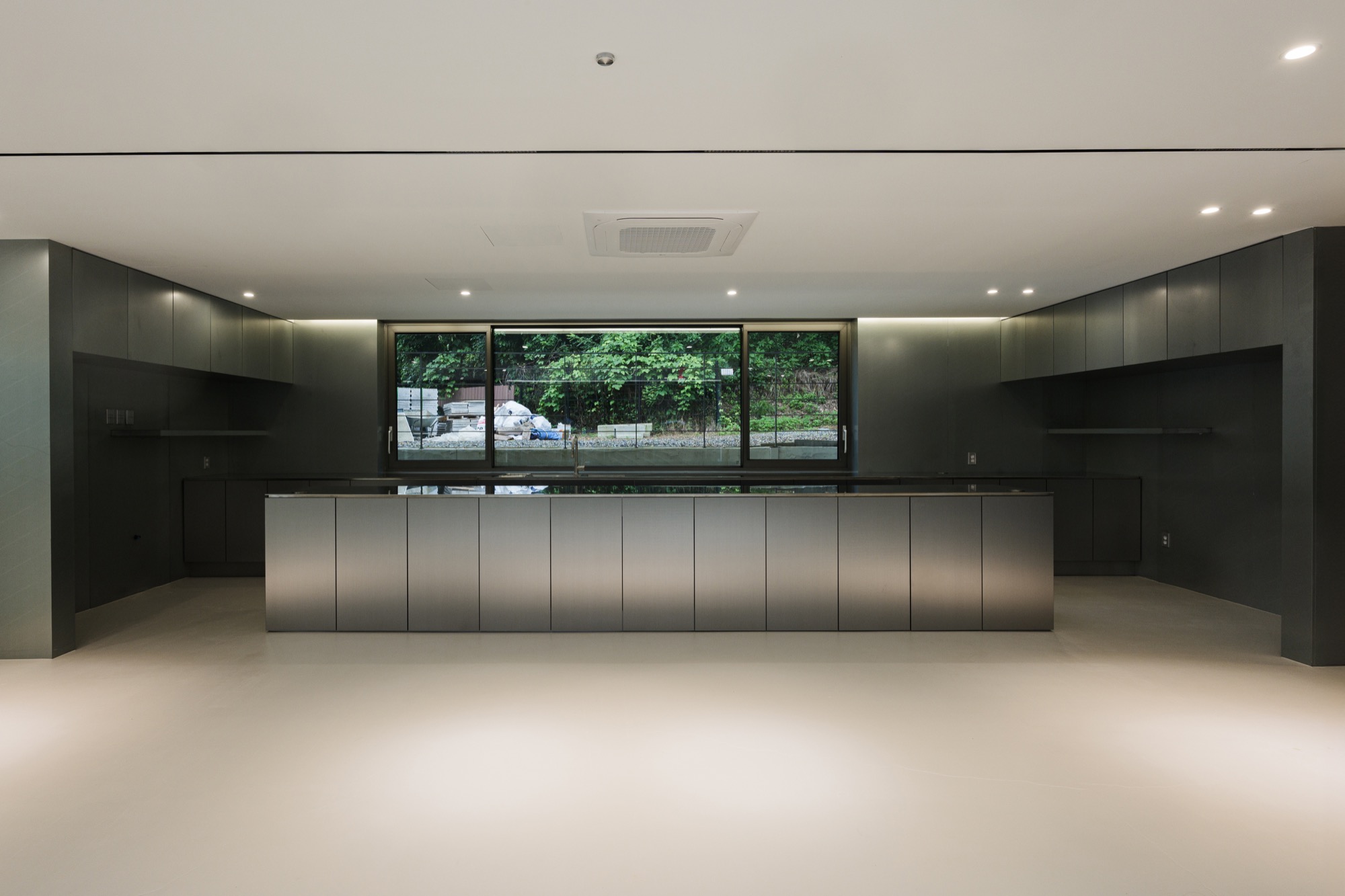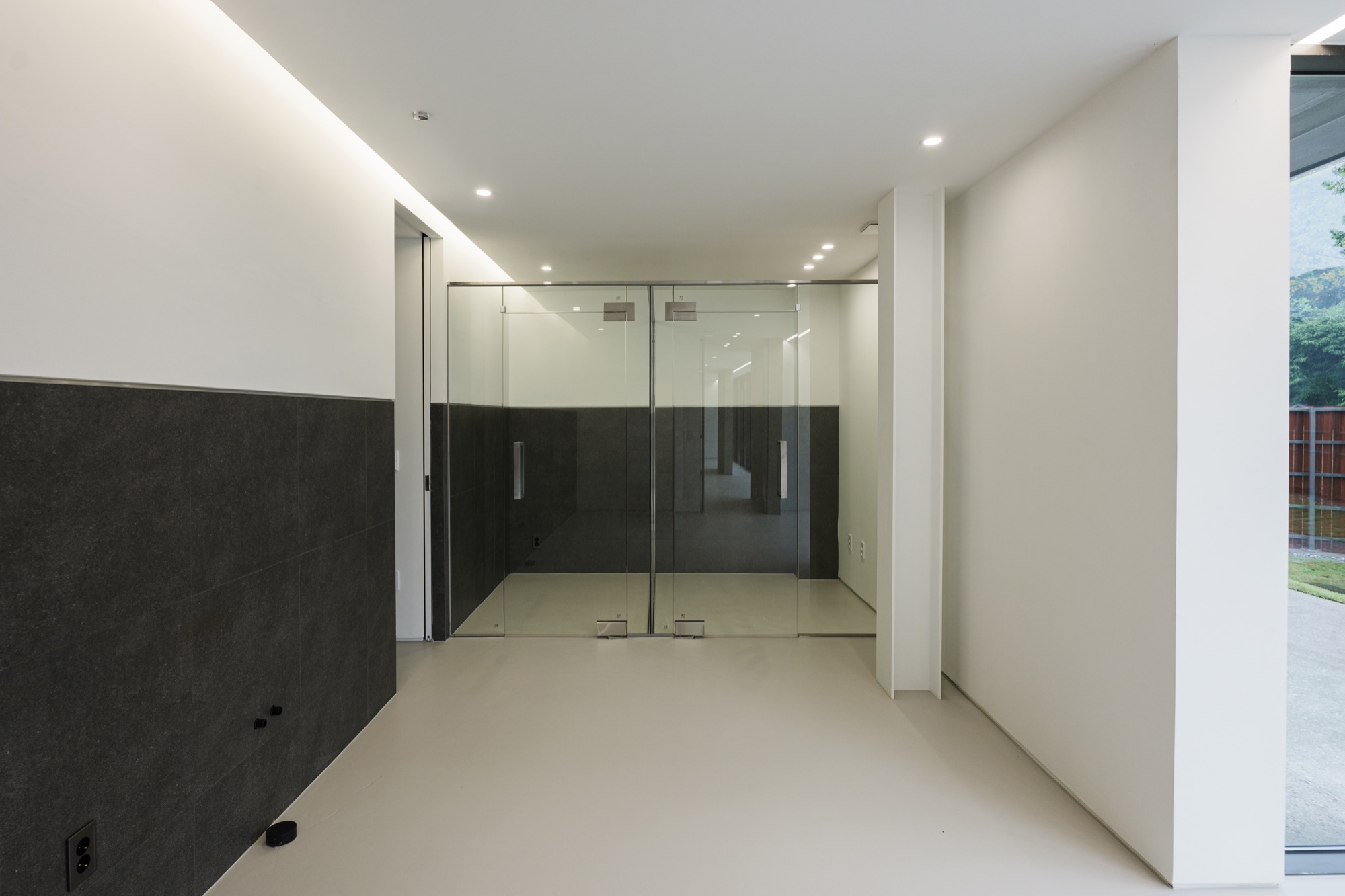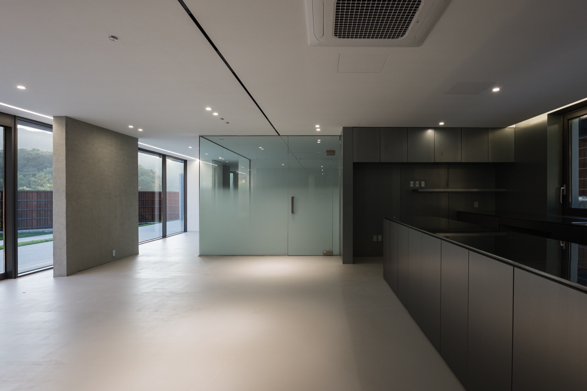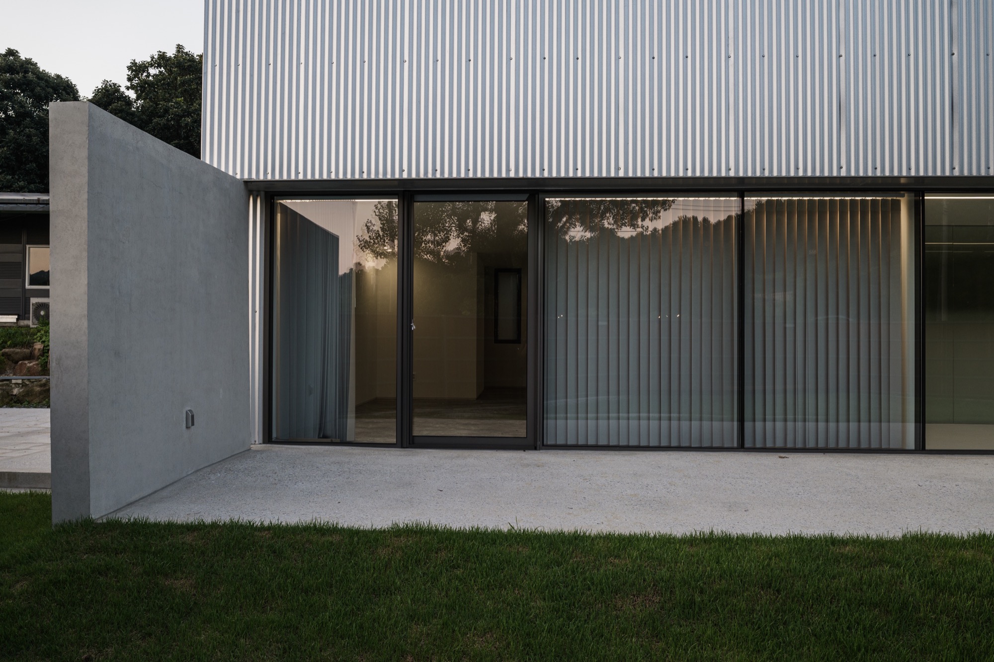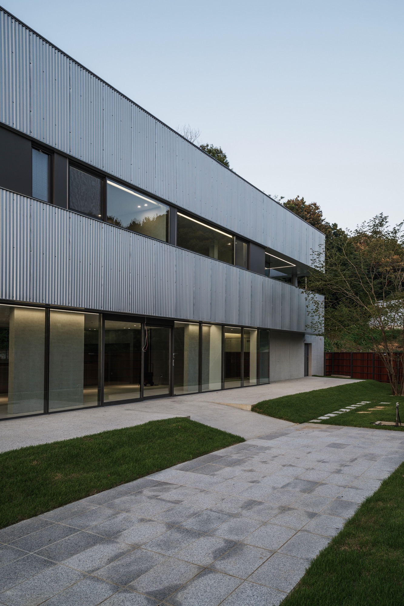 양평군 지평면 시내에서 마을 길을 따라 걷다 보면 숲과 맞닿은 그리 멀지 않은 곳에 단정한 반려견들을 위한 은빛 건물이 나타난다. 기존 건물을 새롭게 단장한 공간이지만, 항상 그곳에 있었던 것처럼 자리 잡고 있다. 낮은 석축과 그 위로 사람 키만한 나무 담장이 주변의 짙은 산록과 어우러지며 건물 주변의 경계를 흐리고, 가로로 단정한 건물은 주변에 위화감 없이 스며든다.