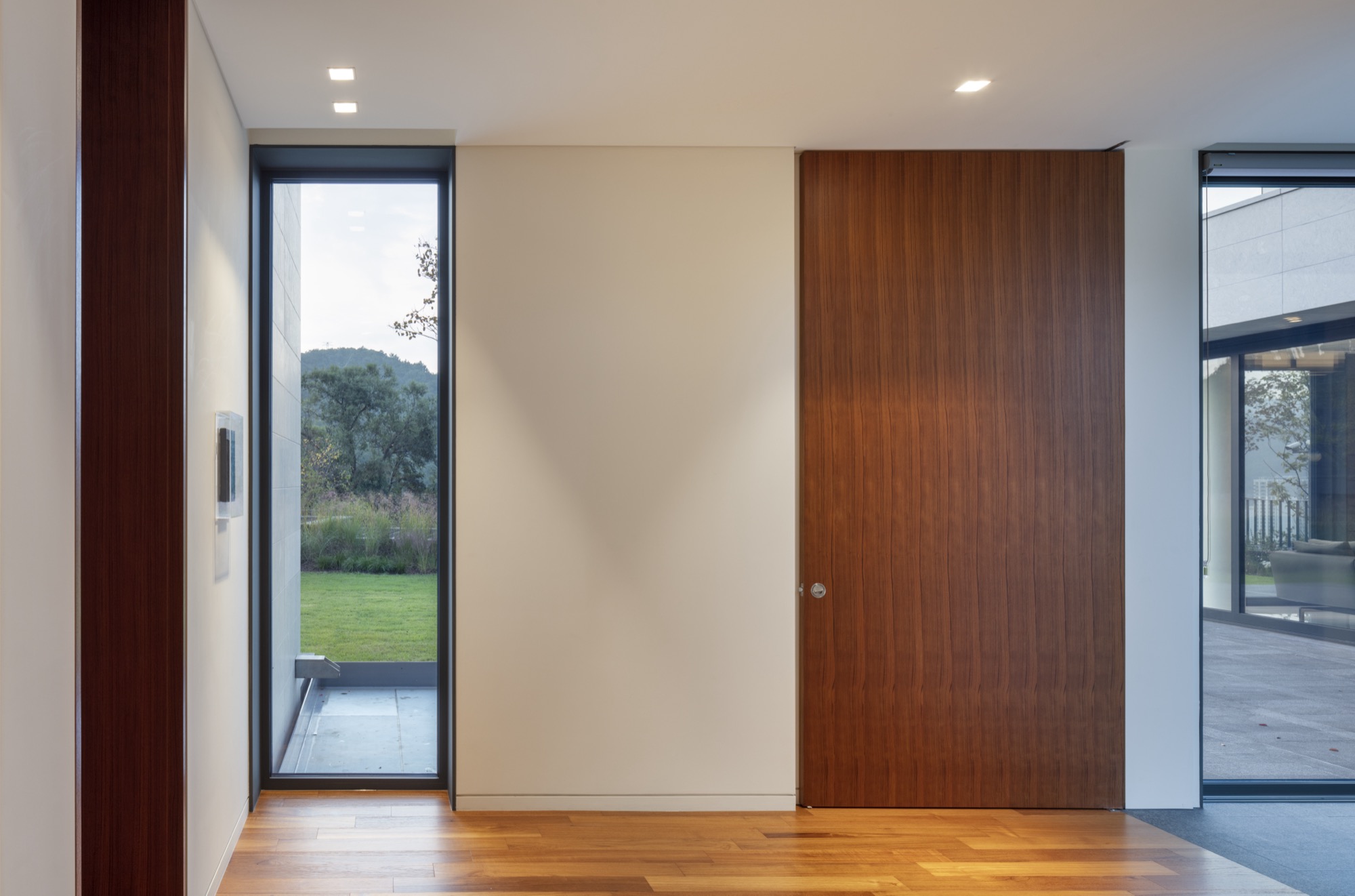 안채에 들어서면 조금씩 아껴 놓은 풍경을 아낌없이 드러내며 활짝 열린 개방감을 제공한다. 처마와 캐노피가 과도한 햇빛을 거르고 밀도와 수형을 달리하는 조경이 시야를 적절하게 집중 또는 제한하며 개방감을 보완한다. 아내의 영역인 2층은 천장의 높이 변화와 고창으로 풍성한 공간감을 느낄 수 있다. 지하는 실제로 가족을 맞이하는 공간이며 남편의 취미 공간이다. 지하주차장과 지상 출입구를 연결하는 선큰 그리고 취미 공간과 앞마당을 연결하는 선큰은 지하 공간의 답답함을 해소하고 지상으로 공간적, 시각적 연계를 강화한다.