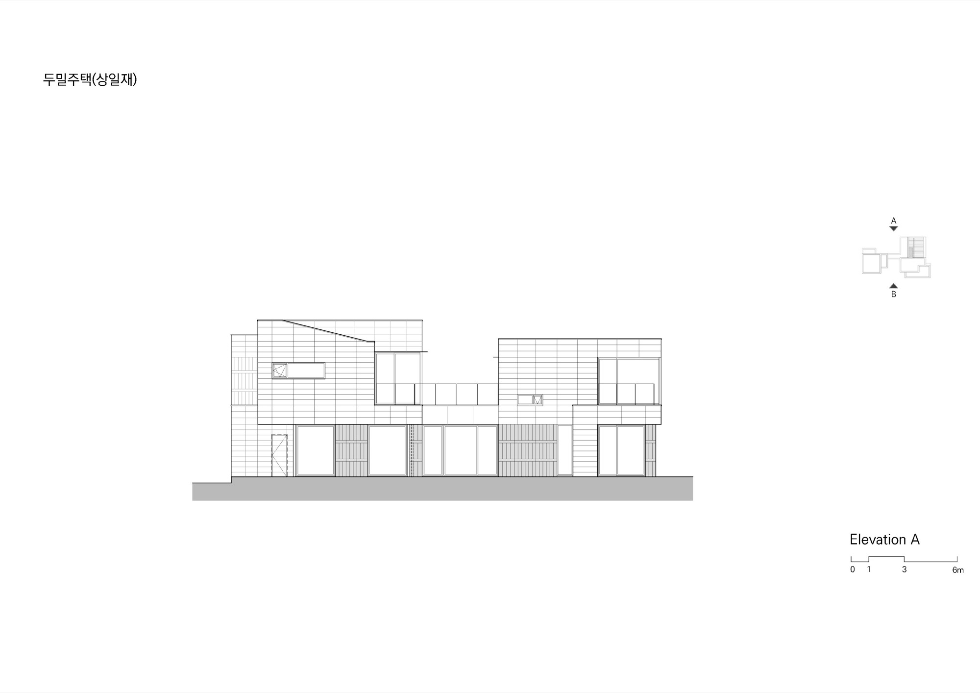 '상일재'는 먼 미래 손주와 함께하는 삶을 그려보며 건축주가 지은 이름이다. 바깥채의 아들 가족이 안채의 부모와 적당한 거리를 유지하며 소중한 추억을 함께 쌓아가길 바라는 마음이 담겨있다. 대지는 남측의 막다른 도로, 동쪽의 인접지, 서쪽과 북쪽의 산림과 접해있다. 서쪽의 구릉지로 시각적, 공간적 확장이 이루어지고 산의 풍광을 감상할 수 있는 좋은 조건을 갖추고 있다. 장성한 아들과 서로의 취향을 존중하는 부부는 독립된 공간에 대한 욕구가 강했고, 평상시는 집약된 공간을, 손님 초대 시에는 넉넉하고 여유로운 공간을 제공할 수 있는 프로그램을 요구하였다. 지하주차장과 구릉지로 열린 지하의 취미 공간도 중요한 요구였다.