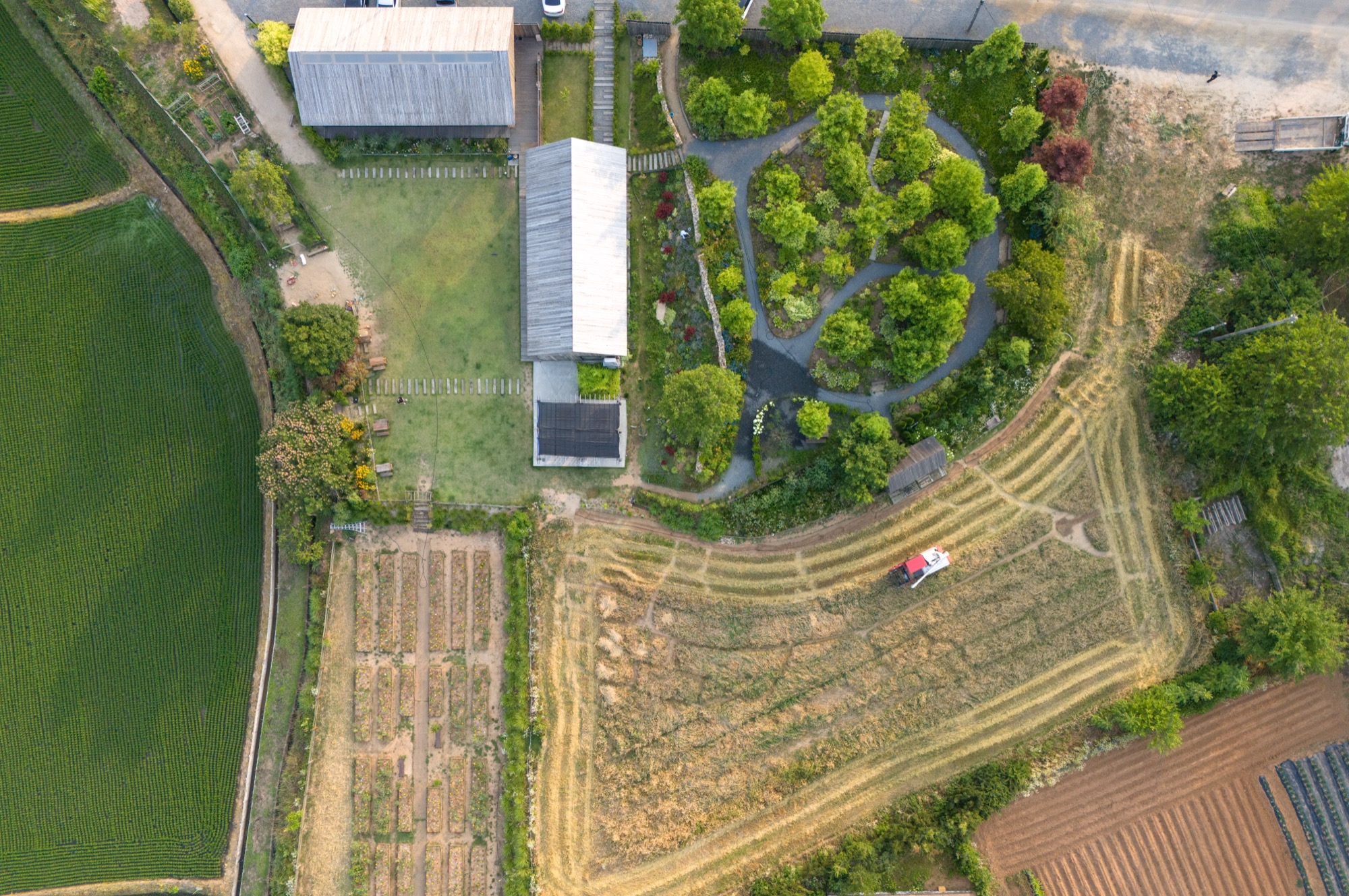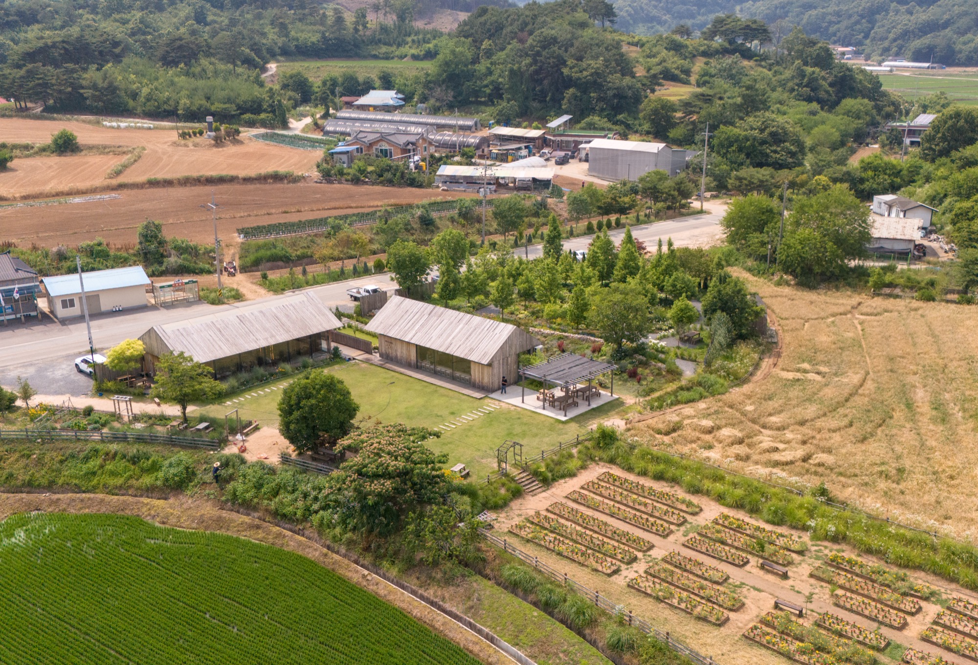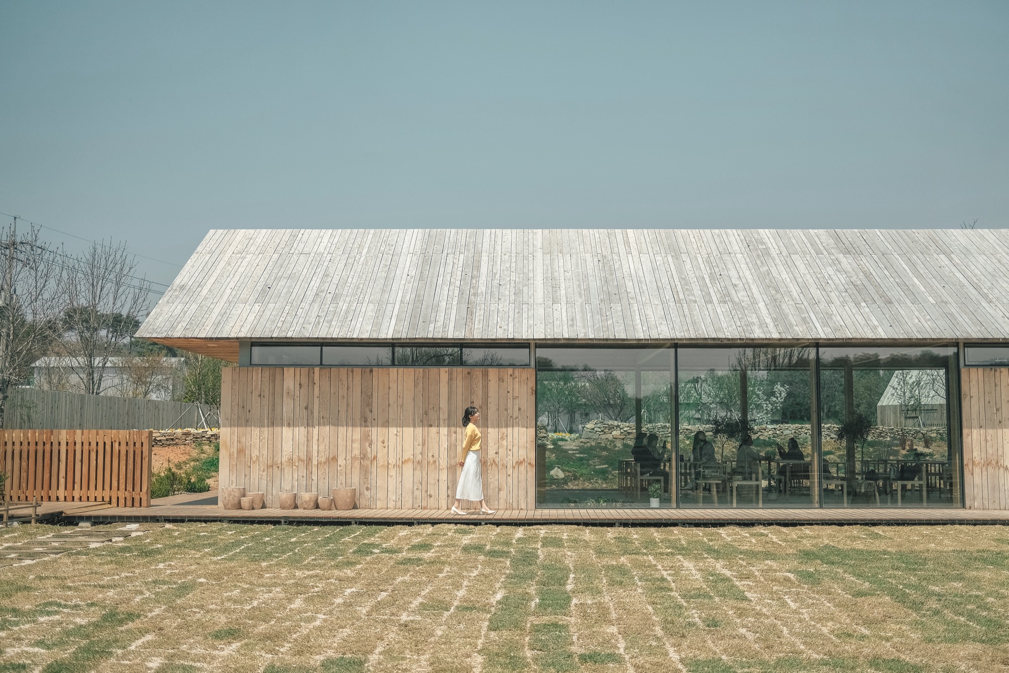 건축주는 30대 중반에 대기업 연구원 생활을 그만두고 고향 예산으로 내려와 농부가 되었다. 농업에 종사한 지 3년이 지나, 할머니가 살았던 터에서 지역 농부들과 상생할 수 있는 정원 카페를 구상하기 시작했다. 카페를 통해 고향과 연대를 강화하고, 지역 사회와 함께 성장하려는 그는 비전을 세 가지 요구사항으로 구체화했다. 첫째, 건물 전체에 농부의 정서를 담을 것. 둘째, 세련미와 고풍미를 동시에 갖출 것. 셋째, 시간이 지나도 멋지게 나이 들어가는 건물이 될 것. 이러한 요구를 바탕으로, 우리는 세련된 농부의 모습이 나이 들어가는 과정을 상상하며 설계를 시작했다.