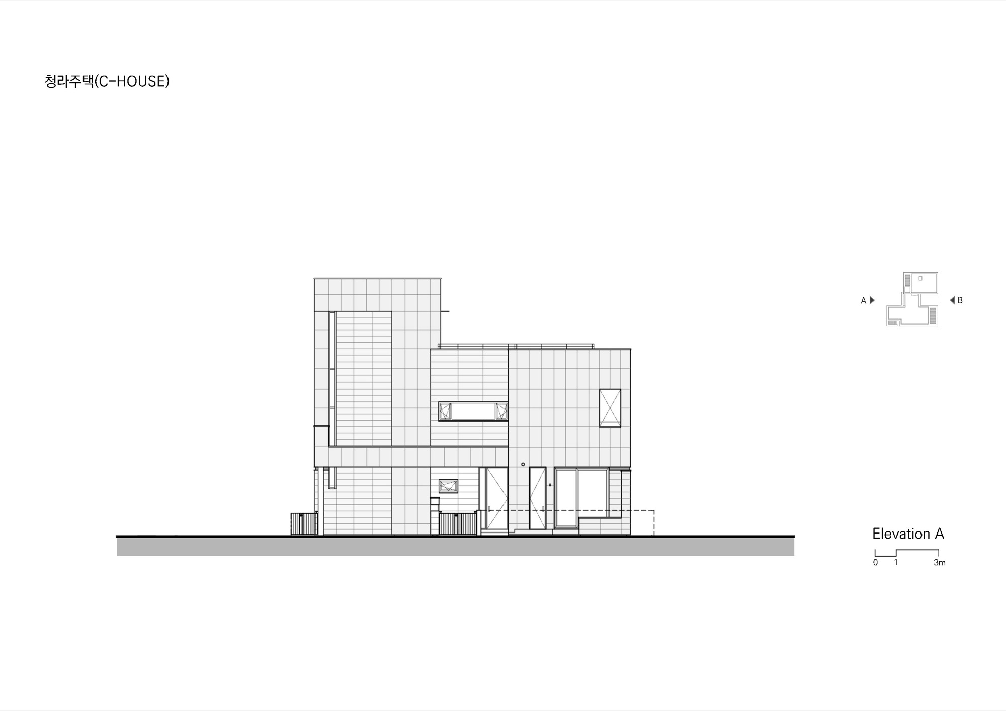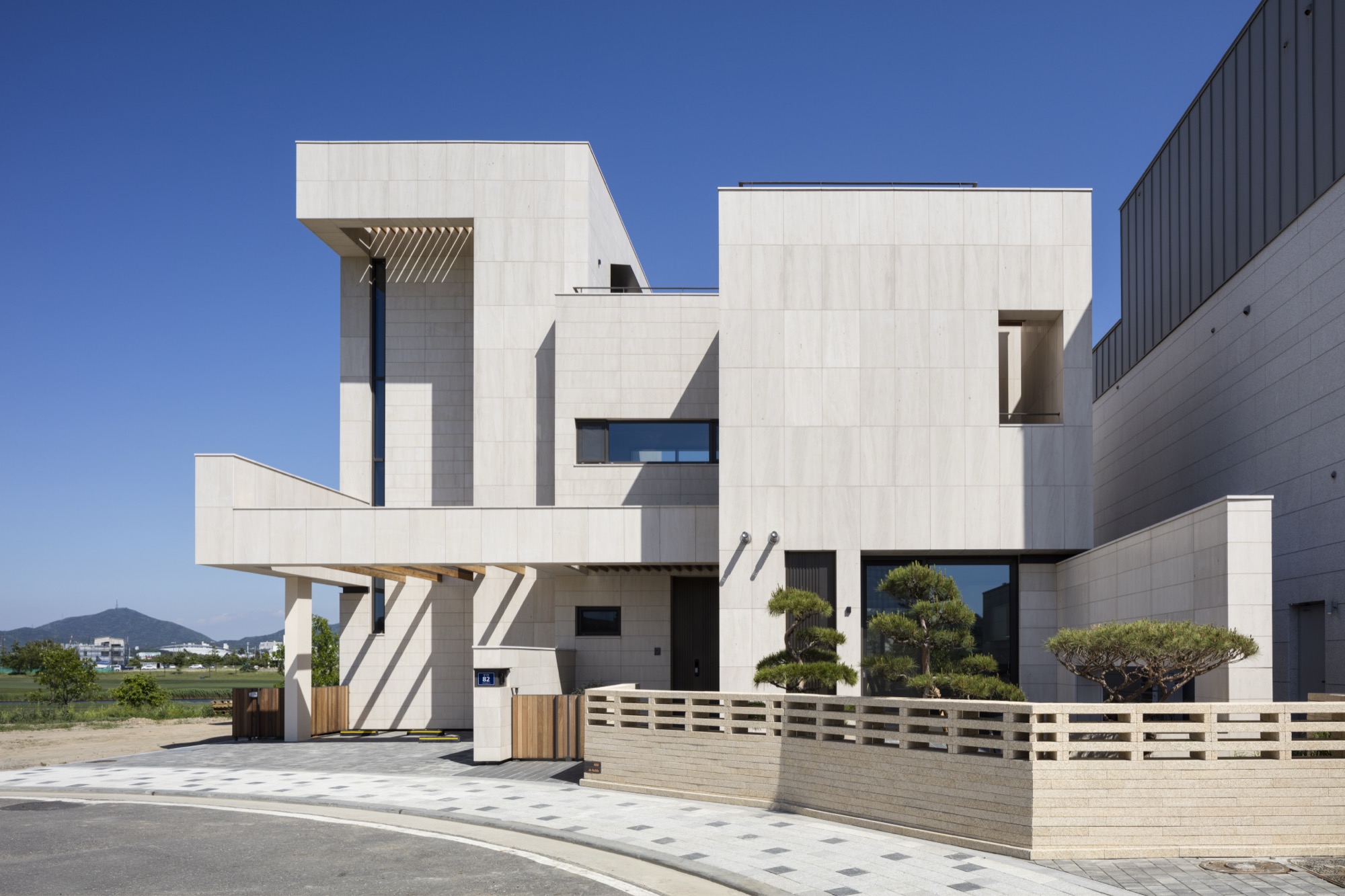 한국인의 복잡한 라이프스타일은 고난도 프로그램을 요구한다. 프라이버시와 개방감, 자연과의 조우와 쾌적한 실내공간, 가족 간의 유대와 독립적인 공간 등 상반된 것들이 동등하게 요구된다. 고유 영역의 독립성을 확보하며, 유기적으로 연결해야 하고, 설비를 통한 제어도 충분히 고려되어야 한다. 주택 설계에서 평면 계획이 우선되는 이유다. 이로 인해 외부 형상은 단순한 내부와 달리 다소 복잡한 모습을 띄게 되었다. 단지의 관점에서 보았을 때, 개별 주택은 전체를 구성하는 요소로 가능한 절제된 모습으로 자연스럽게 어우러지길 바랐다. 이를 위해, 모카크림 한 가지 재료를 사용했다. 돌나누기의 변화로 절제된 위계를 형성하고, 수평적 프레임으로 하나의 흐름을 만들어 단지 안에서 존재감을 드러낸다. 수평적 프레임은 분절된 매스를 연결해 단순한 외관을 만들고, 해안가 특유의 낮게 펼쳐진 환경에 순응하게 한다. 또한, 외부 공간에 켜를 만들고, 앞뒤로 열린 내부 공간과 중첩되며 풍경에 깊이를 더한다.