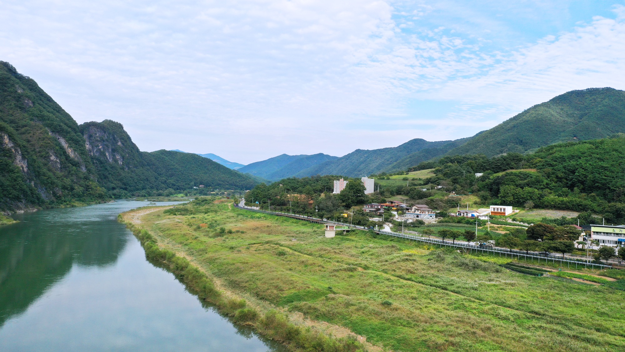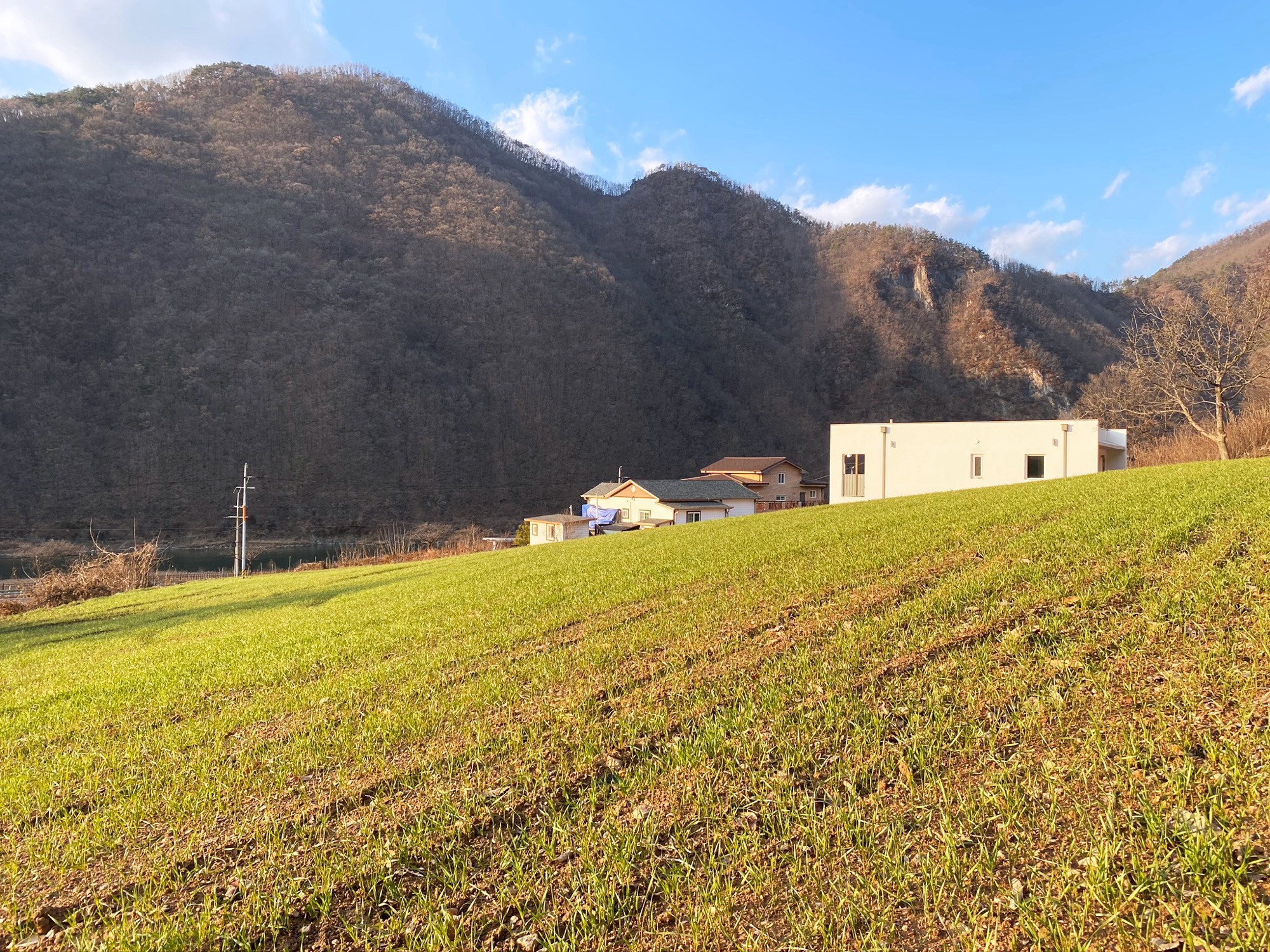 행정구역 상 단양군 가곡면에 속하는 대지는 소백산 북서쪽 끝자락에 자리하고 있다. 약 10°의 기울기를 가진 경사지는 아래로 이어져 4m 폭의 진입로와 몇 채의 집들을 지나 남한강까지 이른다. 남한강 건너에는 가파른 경사의 삼태산이 펼쳐지는 풍광이 좋은 대지였다. 계획 초기부터 경사지와 그 아래에 펼쳐진 수려한 전망은 집 형태를 결정하기 위해 중요하게 고려된 특성이었다.