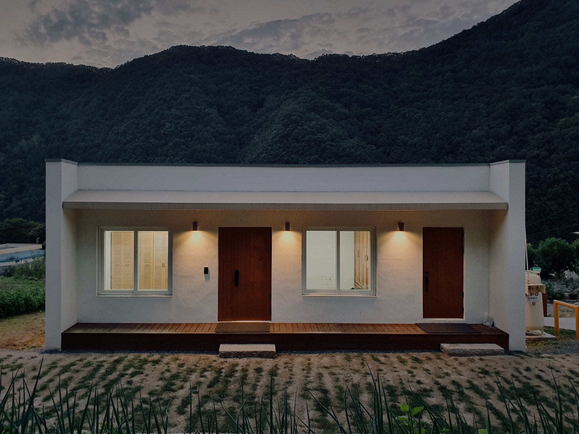 집의 형태 역시 이러한 관계 속에서 결정되었다. 'ㅍ'자형 벽을 통해 집에 필요한 여러 실들을 중심에 두고, 그 양쪽 단부에 마당과 남한강을 향해 열리 두 개의 장소를 두었다. 그 후 마당의 높이에 맞춰 바닥판을 두어 경사지로 발생하는 고저차 문제를 해결했다. 바닥판을 기준으로 위쪽은 남한강의 전망을 즐길 수 있는 누마루가 되며, 아래쪽은 농지와 연계된 창고가 된다. 거실은 남한강과 삼태산을 따라 누마루와 나란하게 두었고, 그 반대편 마당을 향한 방들은 더 내향적인 곳에 자리한다.