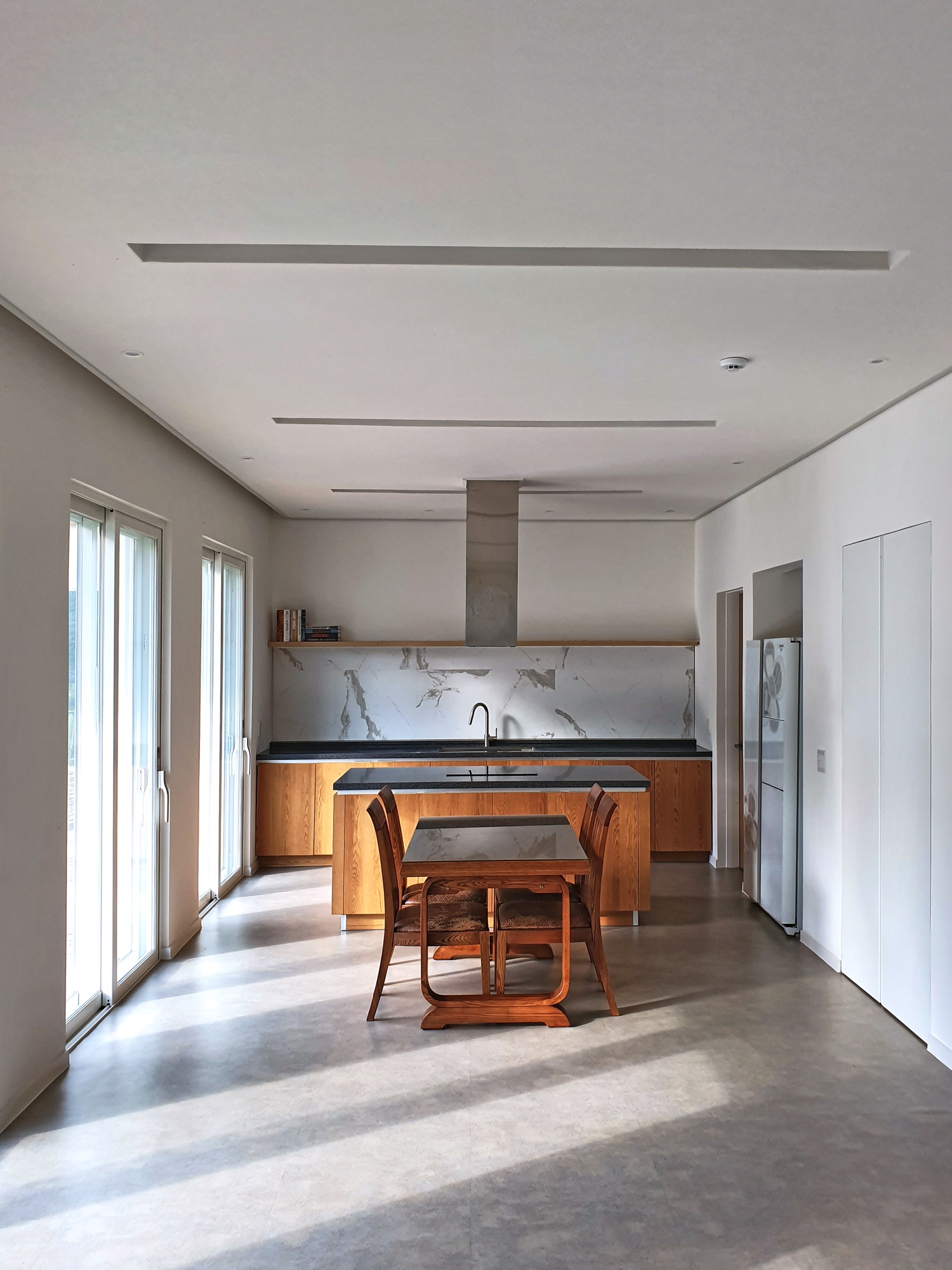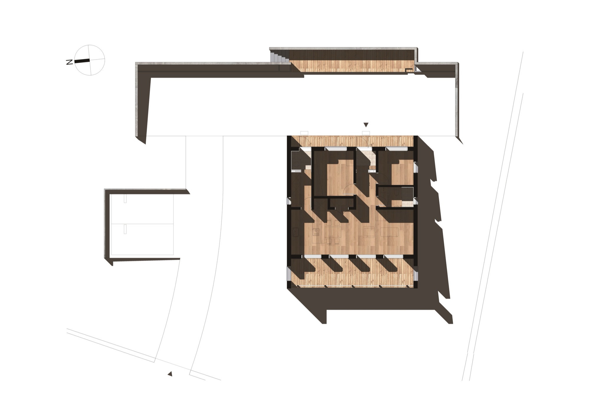 집을 계획하는 데 두 가지가 중요했다. 하나는 건축주의 요구사항이었으며, 다른 하나는 집으로 잘 사용된 형태들에 대한 연구였다. 건축주의 주요 요구사항은 약 80㎡ 크기의 집을 세우는 것과 마당의 형성, 농지의 확보 그리고 그에 필요한 창고를 세우는 것이었다. 다음으로, 건축 역사 속에서 전망이 좋은 곳에 세워진 집들을 살펴보면 그중 상당수가 분명하게 두 부분으로 구별되어 구성된 것을 확인할 수 있었다. 하나는 가정생활에 필요한 여러 실들이 배열된 내향적인 부분. 다른 하나는 전망을 즐길 수 있도록 바깥쪽으로 열린 외향적인 부분이었다. 특히 외향적인 부분은 단순히 창을 통한 시각적 관계가 아니라, 누마루나 로지아처럼 외부의 자연 풍경과 함께하는 '장소의 구축'과 관계가 있었다. 이 두 부분의 적합한 형태를 만드는 문제와 그 둘을 사용하기 위해 좋게 구성하는 것은 역사 속에서 반복적으로 다뤄졌다. 실의 개수나 면적의 문제를 넘어 집에 사는 사람들이 반드시 누려야 할 기본적인 권리인 것이다.
