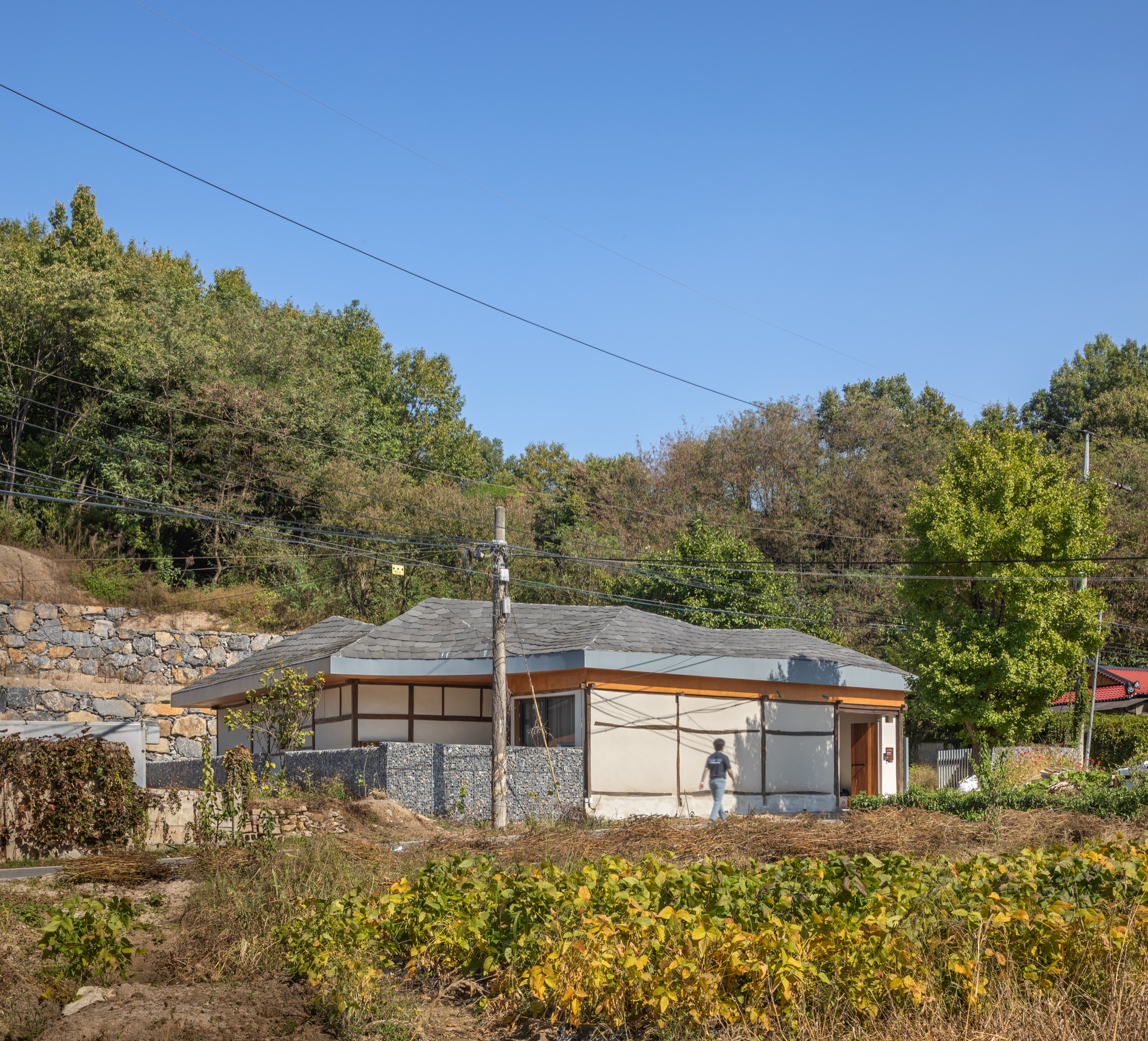 집안이 대대로 삶을 꾸려 왔던 땅 위에 지어져 50여 년의 세월을 지낸 주택을 새롭게 고쳤다. 현재는 ‘고암동’이라 불리는 충북 제천의 한 마을이며 옛 지명은 고라미(고래미)였다. 건축주 부부는 활발히 사회활동을 하며 최근까지 성남 분당의 아파트에 거주했기에 도심 생활에 익숙했다. 그러다 남편이 연로하신 어머니를 모시며 2,500평이 넘는 땅에 콩과 오미자를 심어 가꾸고자 5년 전 제천으로 옮겨 살게 되었다. 아내는 어린이집을 운영하며 여전히 아파트 생활을 하고 있지만, 주말이면 고라미 집으로 내려와 시간을 보내며 주말부부로 생활하고 있었다.