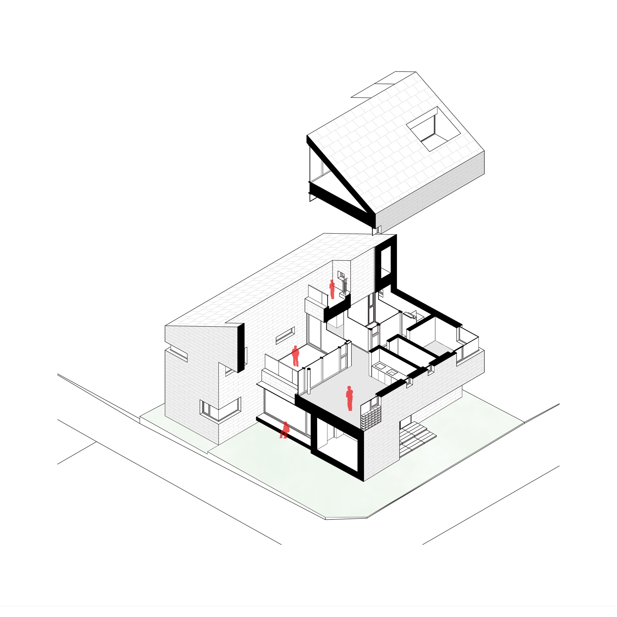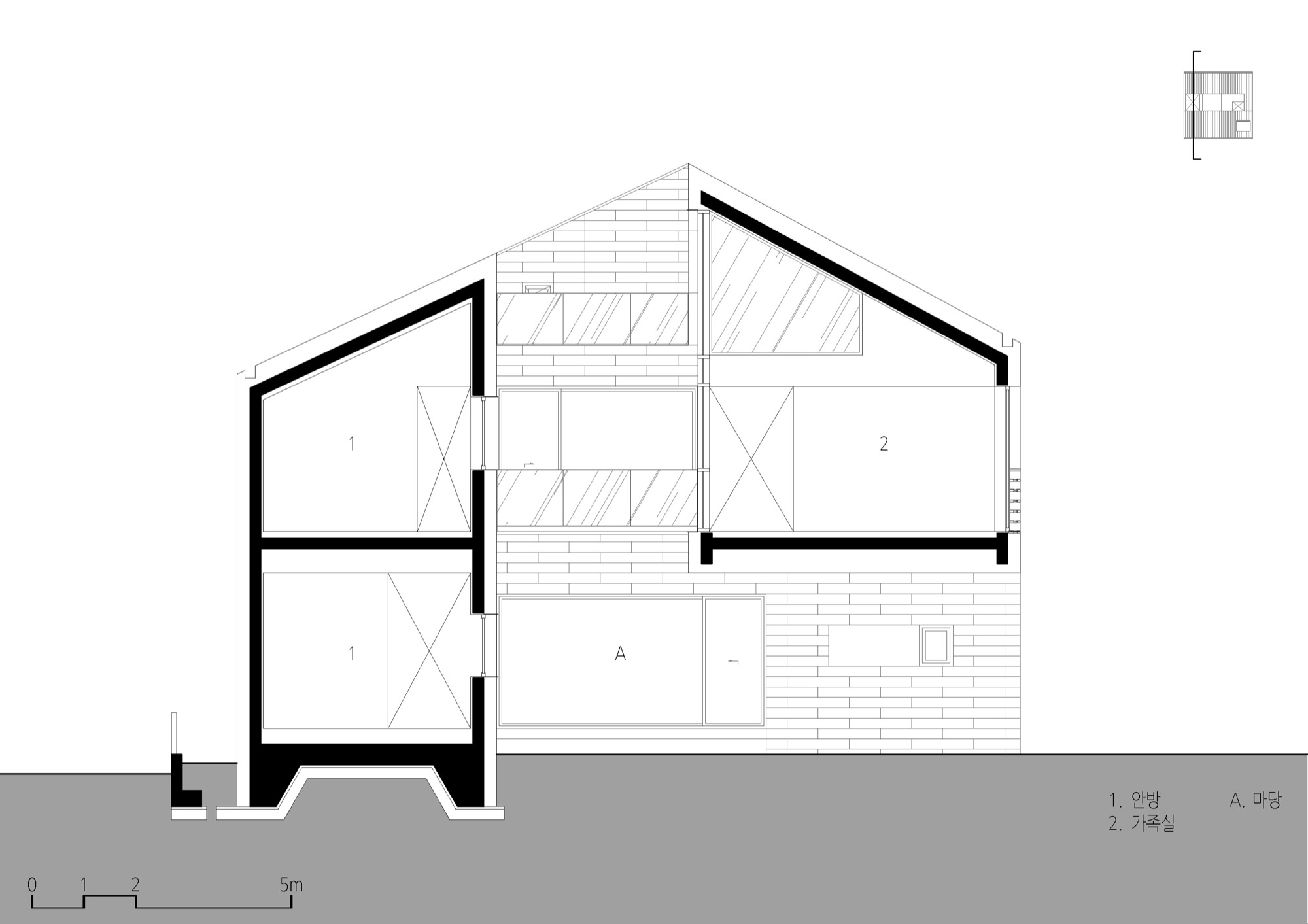 암사유적지 근처에 있는 암사동 선사마을은 오래전부터 자리를 지켜온 유서 깊은 마을이다. 마을은 동쪽으로 낮은 야산이 있어 안정적이며 동쪽 햇빛이 잘 들고, 남쪽인 암사동 쪽으로 도시 풍경이 펼쳐진다. 서쪽으로는 한강을 끼고, 그 너머 아차산이 한눈에 들어온다. 건축주는 부모님 세대와 같이 살 집을 원했고, 각 세대가 독립된 영역을 가지면서 일상 속에서 주변 풍경을 누리길 바랐다.