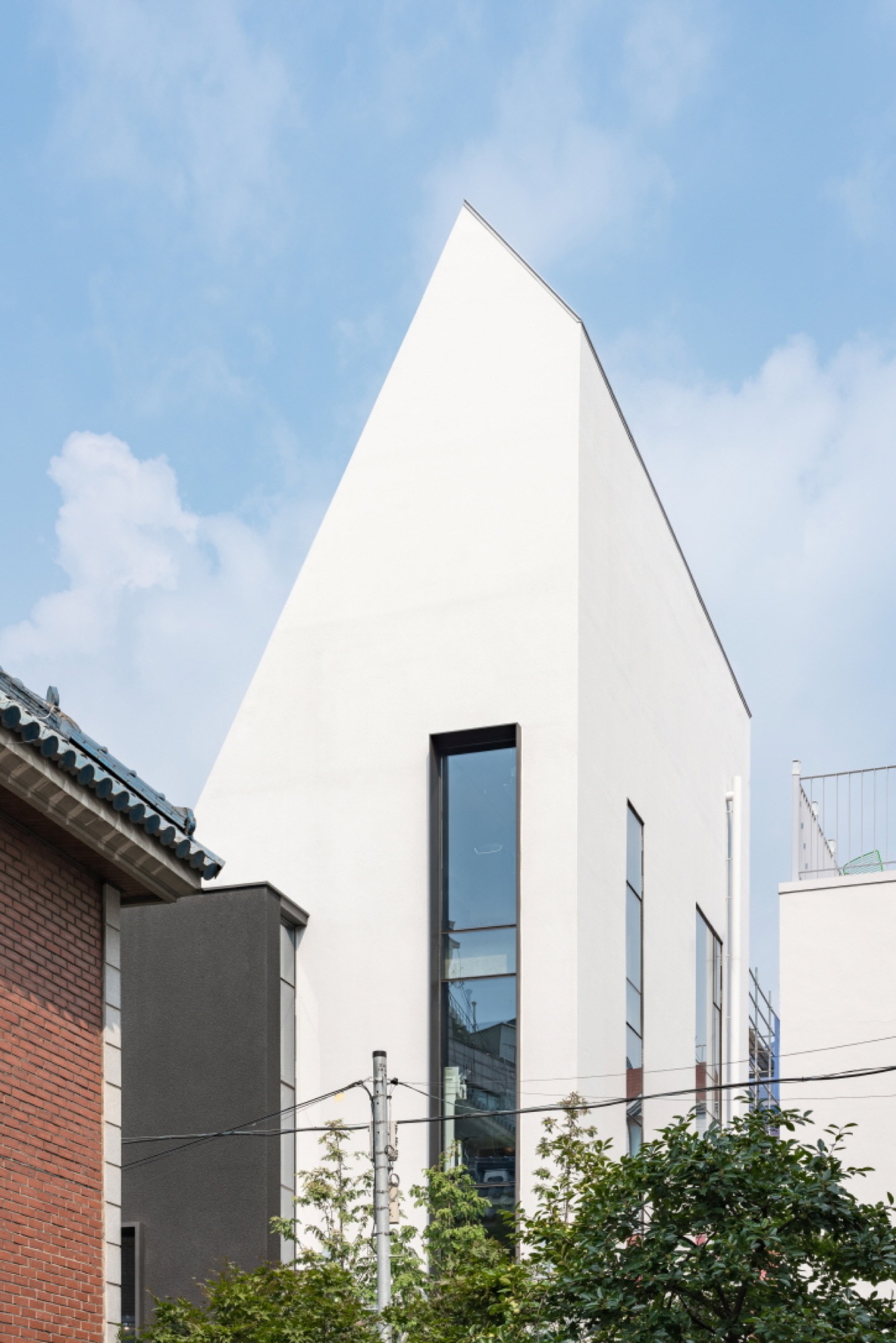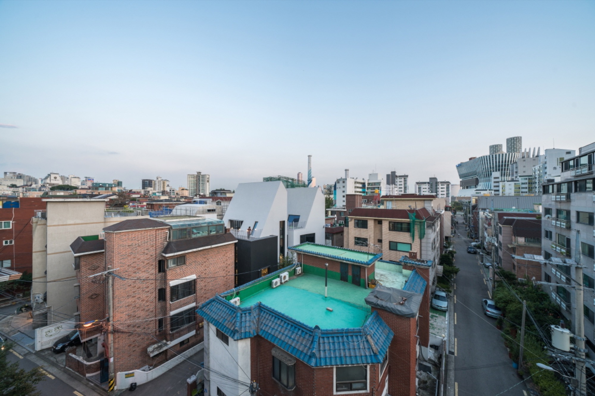 개발 붐으로 오래된 동네에 새로운 것이 들어오며 거리가 들썩인다. 가로에서 조금 떨어진 골목에 자리한 대지는 주목받지 못하는 곳이었는데, 용감하게도 옆 땅의 소유자가 흰색 건축물로 변화의 물결을 일으키며 신축하려는 분위기가 조성되었다. 이러한 분위기에서 서로 튀려고만 한다면 난개발이 될 것이 뻔했다.