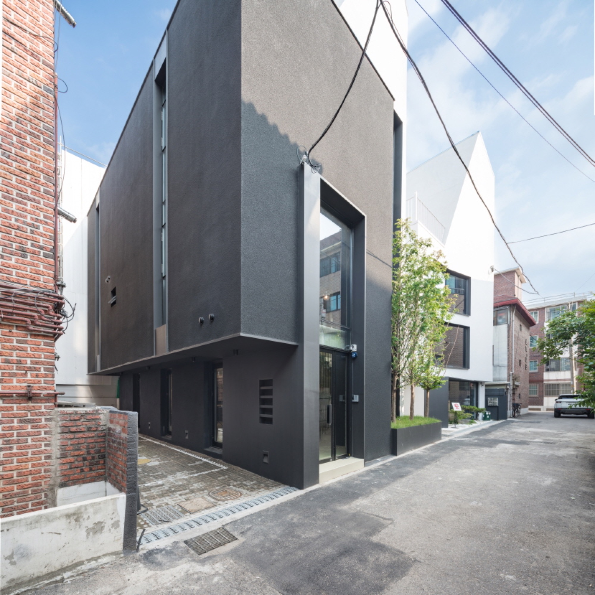 골목의 풍경을 만드는 데는 형태를 단순화하고 주변 건축물과 조화를 꾀하는 것이 큰 기준이라 생각하고 접근했다. 그러한 이유로 과감하게 옆의 흰색 건축물과 비슷한 형태와 색채를 사용해 건축물이 더 크고 넓어 보이도록 착각하게 하는 전략을 구상했다. 군집의 힘은 분명히 개별보다는 강할 테니까.