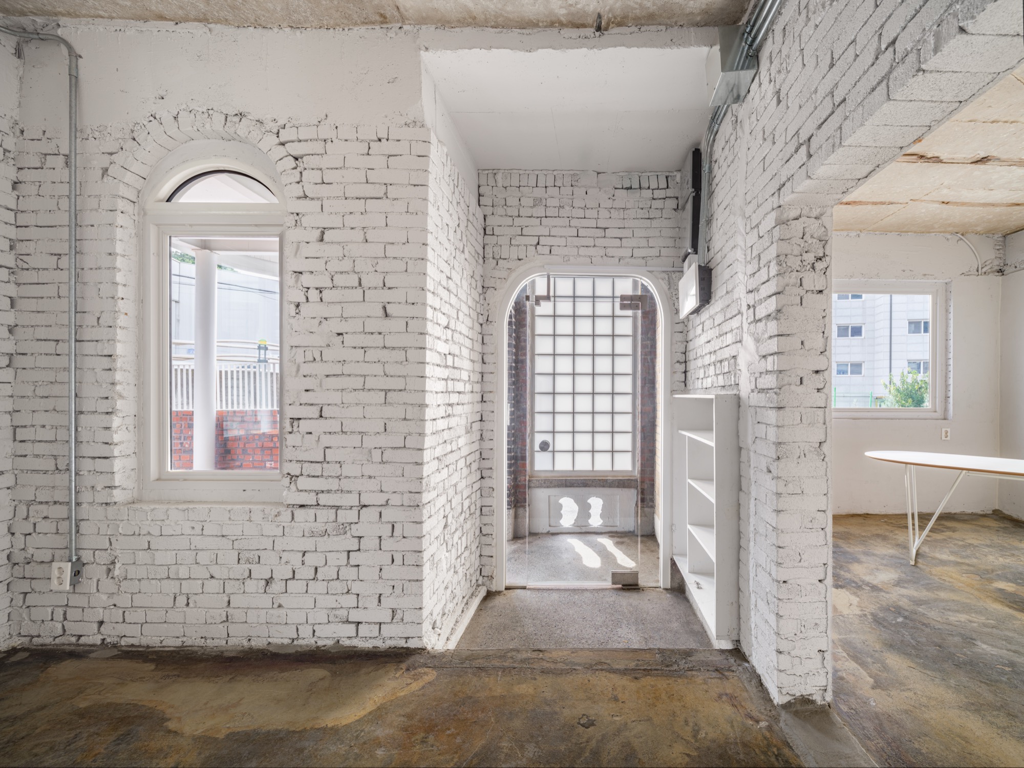 내부는 최소한의 개입을 원칙으로 하며, 구조적 보강이 필요한 부분에 시멘트 블록 벽을 추가하고 기존 천장 보와 콘크리트 슬래브를 통합해 건물의 내구성을 강화했다.◼︎