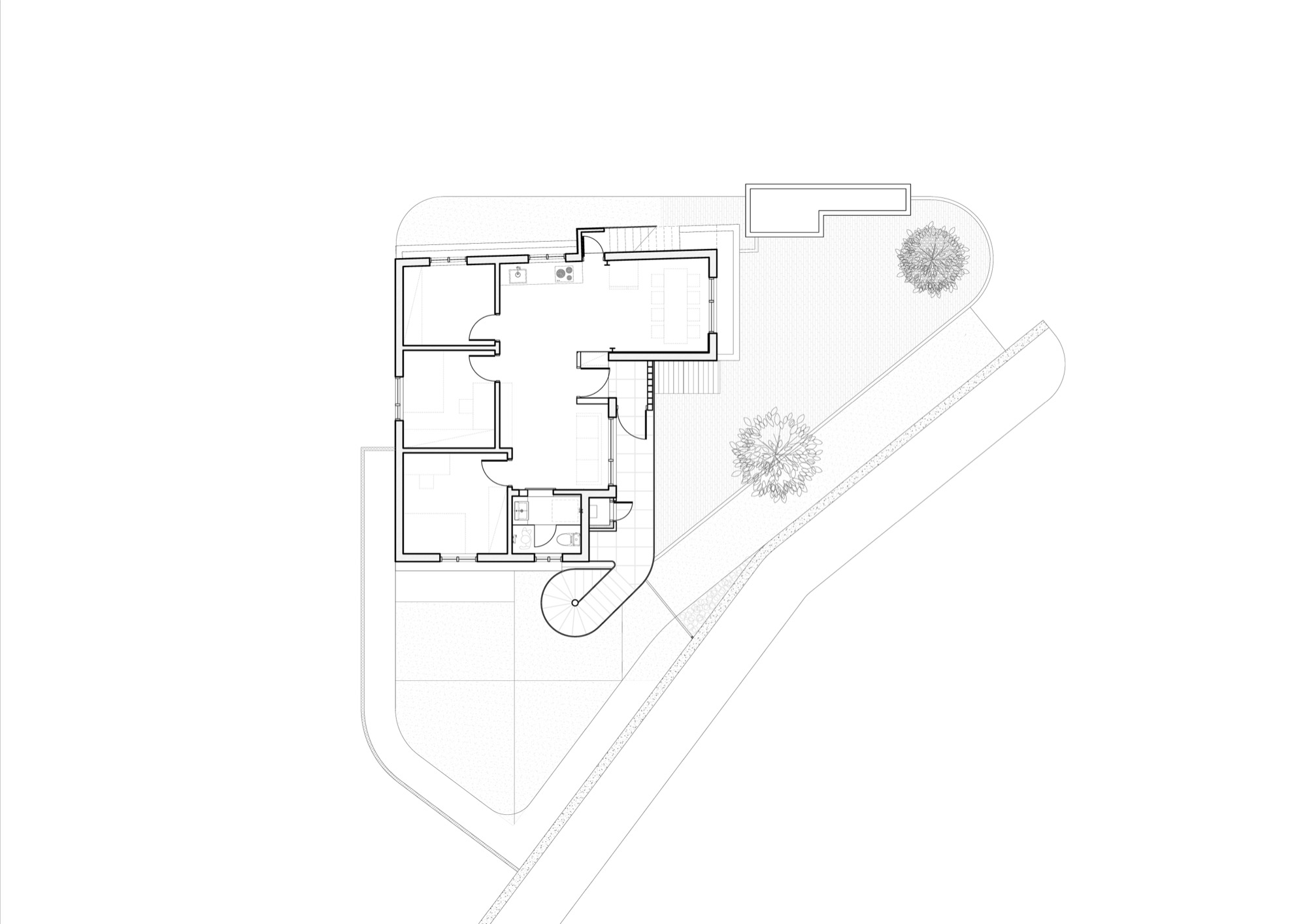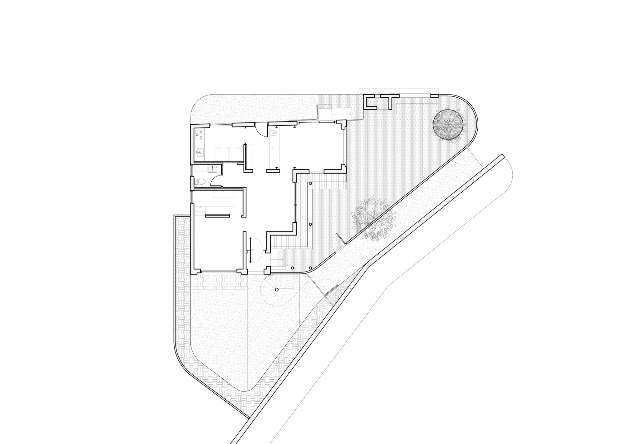 건물은 경사진 두 도로의 교차점에 자리 잡고 있으며, 다양한 속도와 방향의 교통 흐름이 주변을 둘러싸고 있다. 이러한 다층적 맥락 속에서 새로운 개입은 기존 건축물과 외부 환경의 관계를 새롭게 재구성한다. 절제된 변화와 조정은 과거의 층위에 현재를 연결하는 동적 흐름을 만들고자 했다.
