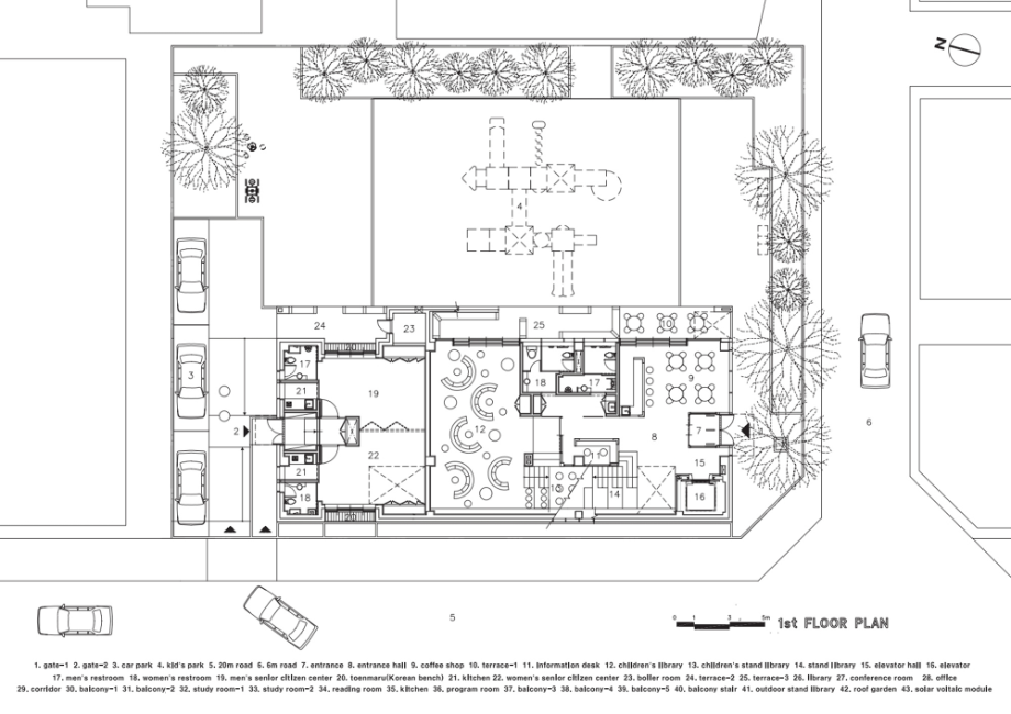 우리는 이 복합시설의 개념적 성격을 마을주민들의 문화적 친교의 장소로 해석했고, 이 문화센터의 주요 프로그램인 공공도서관 계획에서, 정적이고 폐쇄적이며 엄격한 공간성으로 구성해 온 과거의 보수적 공간형식을 탈피해서, 동적이고 개방적이며 자유롭고 자발적인 학습행위가 발생할 수 있는 공간적 프로그램을 도입하여 '우연한 학습', '의도하지 않은 학습', '형식을 벗어난 개방적 학습' 등의 자유로운 학습적 기회를 공간적으로 유발함으로써 도서관의 근본적 역할이어야 하는 평생학습의 기회를 극대화한다는 디자인전략을 설정했다.