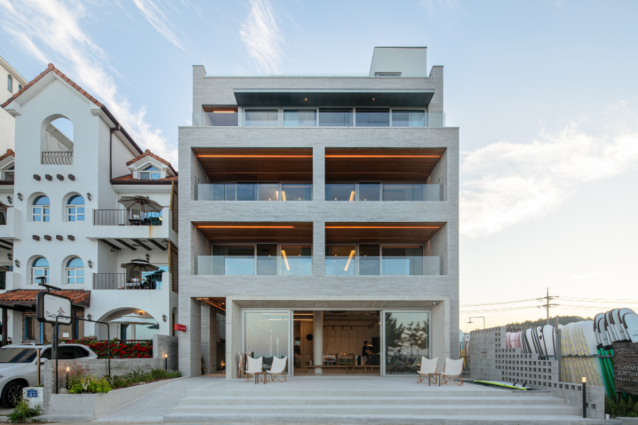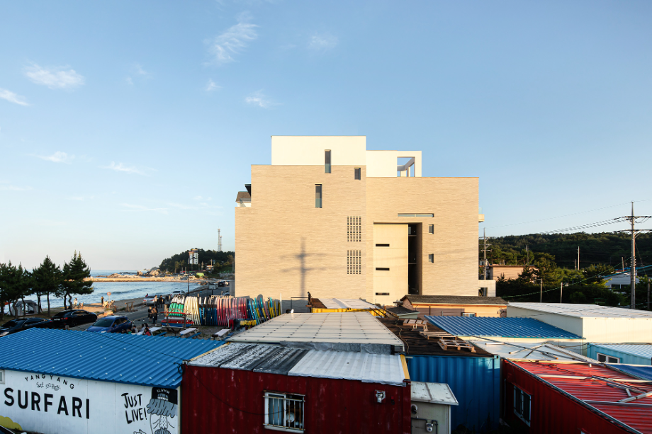 강원도 양양의 인구해변은 서퍼들의 천국. 봄여름가을겨울 날씨와 상관없이 언제나 파도를 즐기는 서퍼들을 볼 수 있다. 건축주는 여러 해 동안 이곳을 오가며 장소에 스며있는 특별한 여유를 사랑했다. 장소와 닮은 집을 짓고 싶었다. 건축주가 원한 집은 장소와 싸우지 않고 순응하는 집이었다. 집이 이 장소를 더 돋보이게 하면 좋겠다고 생각했다.