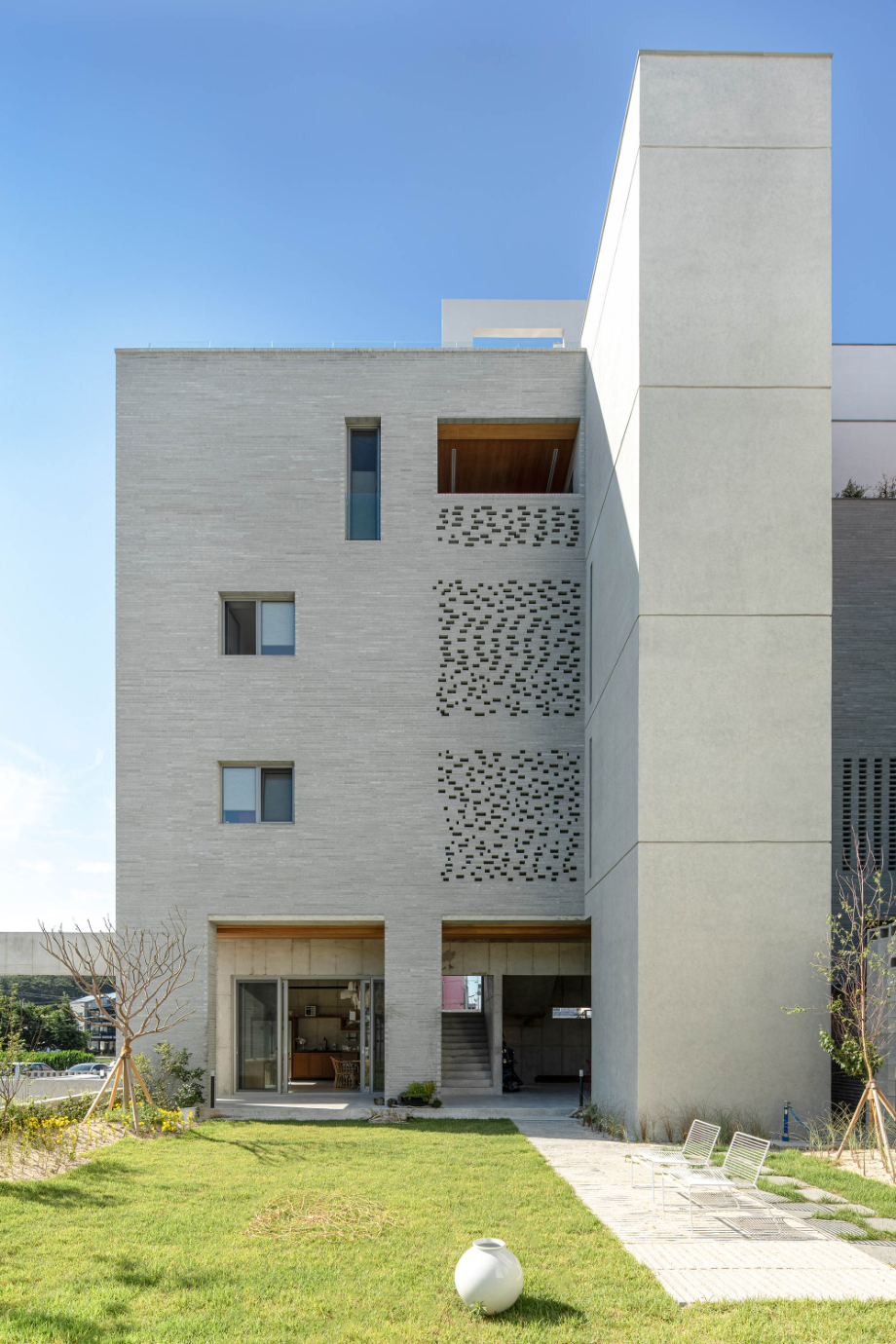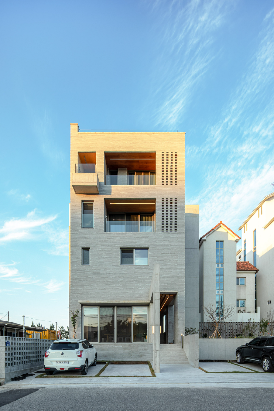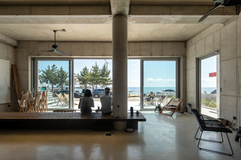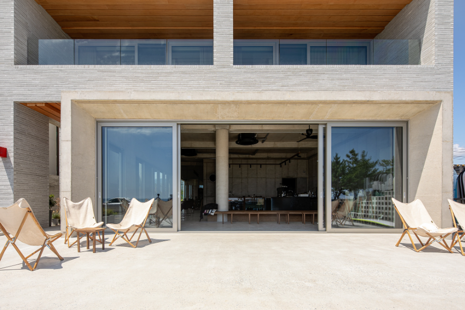 꾸밈없는 공간을 통해 인구리의 푸른 바다, 하늘이 더 돋보이게 하자는 것이 설계의 큰 방향이었다. 외관은 연회색의 롱브릭과 노출콘크리트가 적절히 조합된 형태. 가급적이면 천연 재료의 물성이 하나의 덩어리로 드러나 그것이 그대로 집의 아이덴티티가 되도록 했는데, 그것이 느슨한 해변 풍경을 해치지 않으며 적절한 긴장감을 부여하는 재료와 색감이라고 판단했다. 롱브릭의 매지색은 돌과 구분되지 않게 처리하고 바닥과 벽, 천정에 걸쳐 사용된 노출 콘크리트 마감이 몇 가지 면 처리 기법을 통해 공간에 따라 조금씩 다른 물성으로 표현되었다.