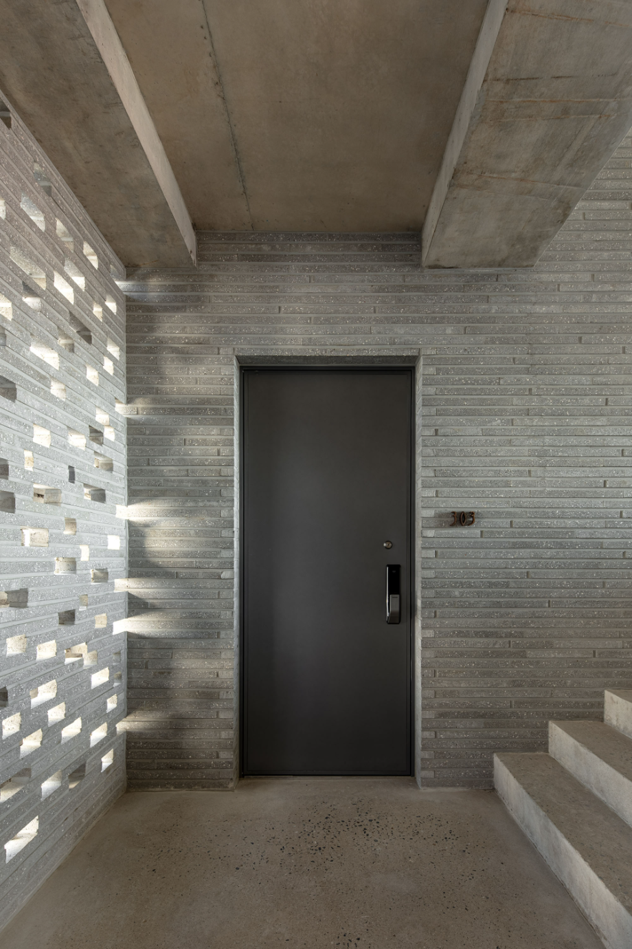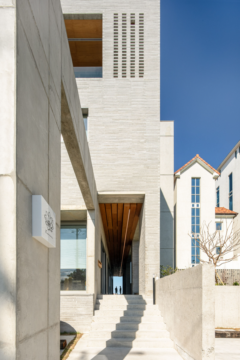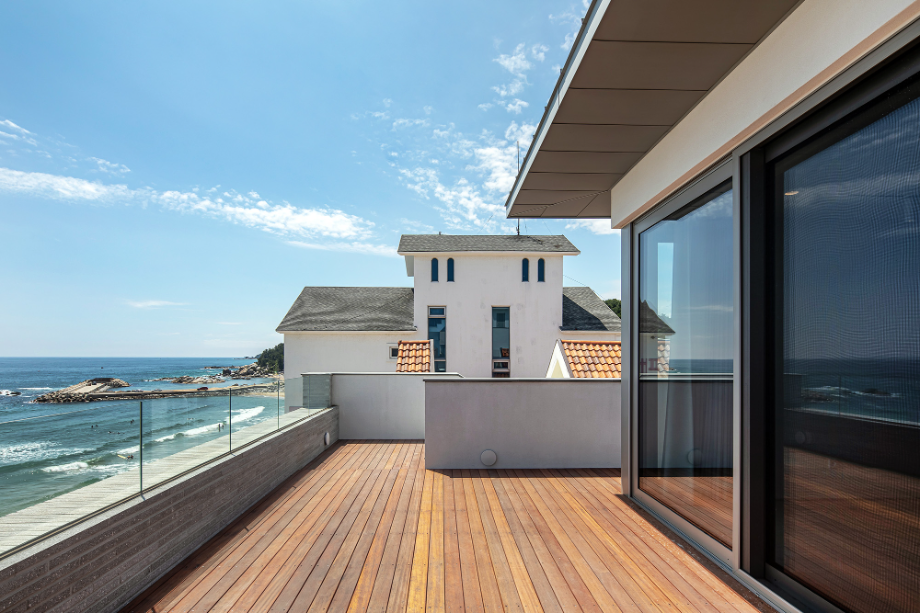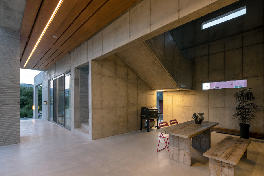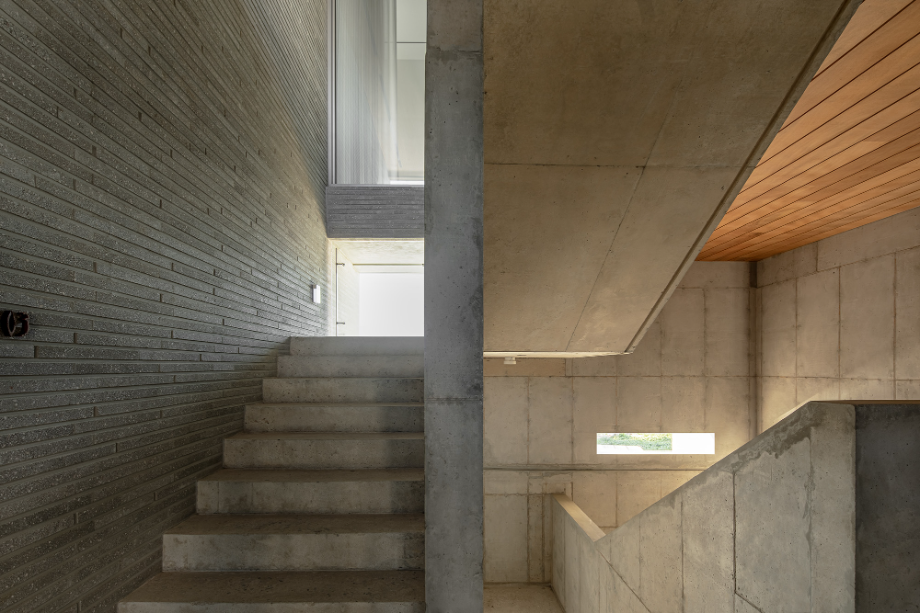 집 안팎의 공간은 원래 이 장소가 갖고 있던 풍경의 아름다움을 잘 드러나게 해주는 역할이다. 복도의 끝, 실내에서 보이는 큰 창, 발코니의 벽 프레임, 밖도 아니고 안도 아닌 계단홀...은 인구 해변의 빛과 날씨, 바람을 가장 극명하게 체감하게 한다.