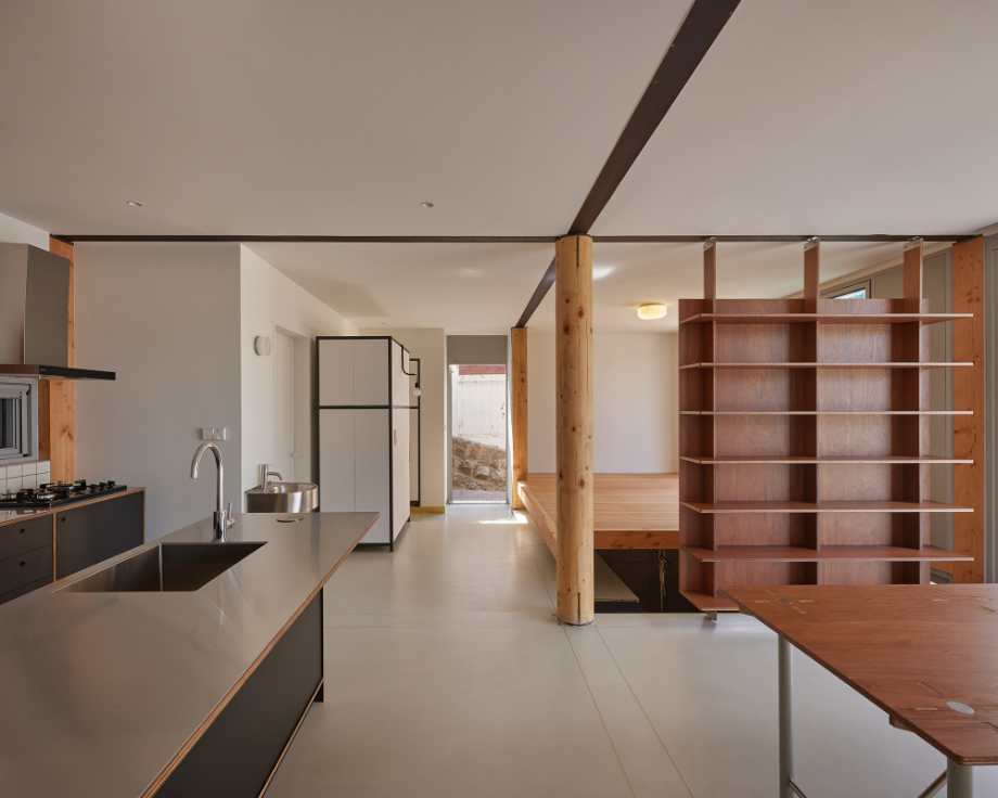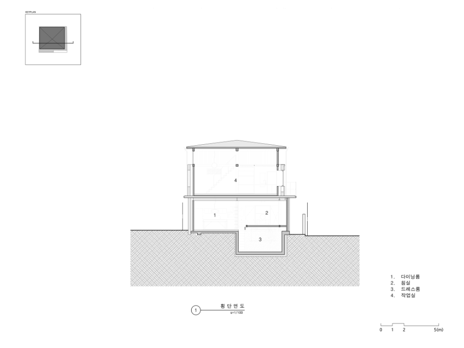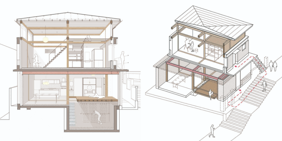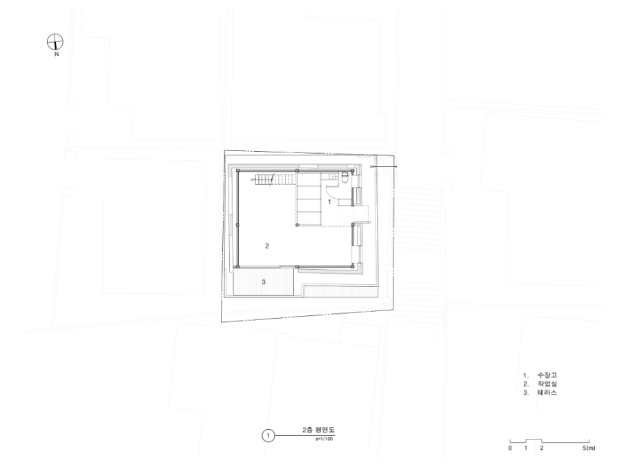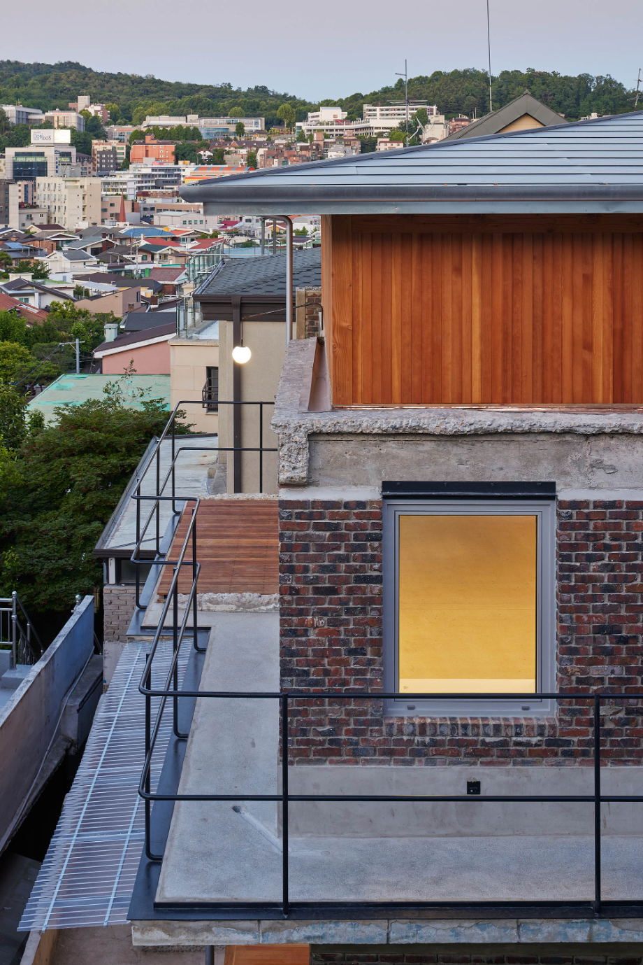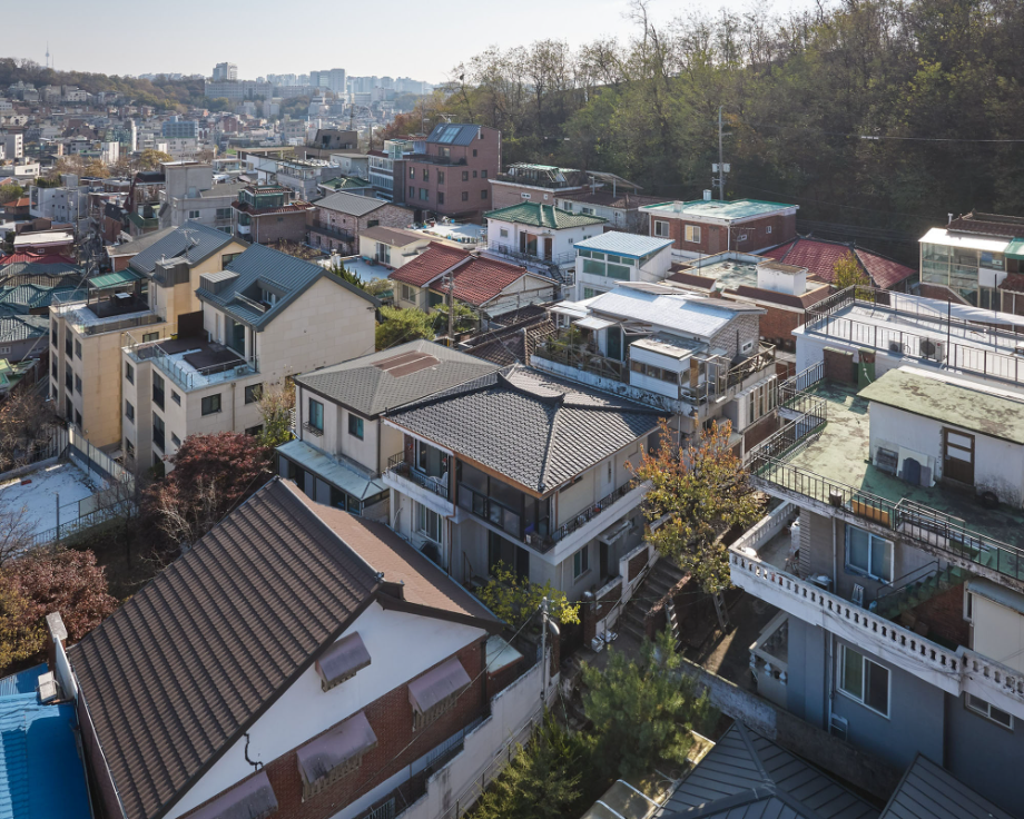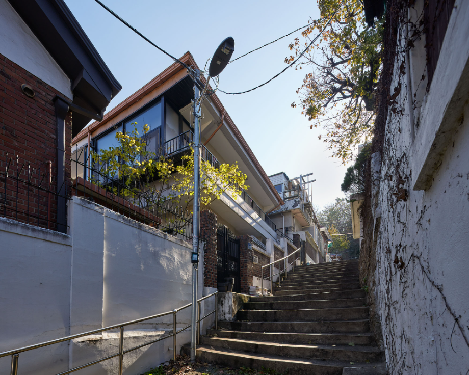 기존의 담장과 지붕 물매를 유지해 기존 건물이 골목, 자연, 이웃과 맺고 있던 관계를 유지하고자 했다. 또한 1층(주거)와 2층(일)의 연결을 실내가 아닌 담장 밖 골목 계단을 이용했던 과거 삶의 방식을 존중하고 은유하는 태도로 접근했다. 부엌에서 마당과 대문을 지나, 골목까지가 모두 주거의 풍경이 된다.