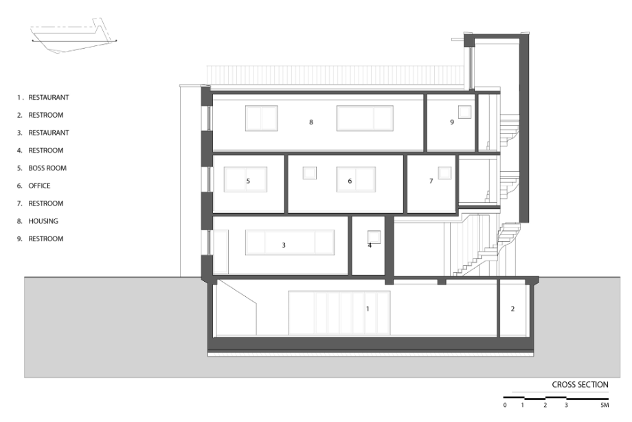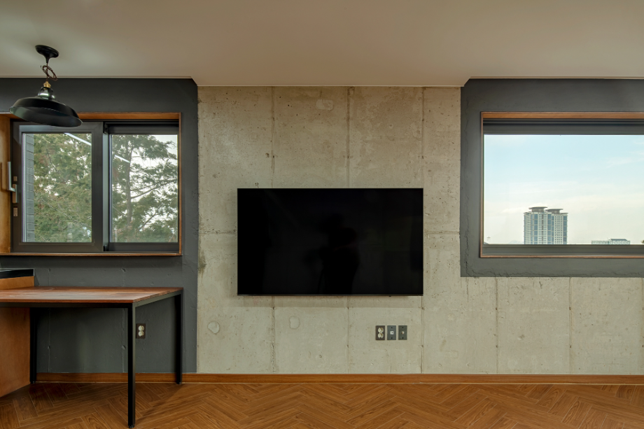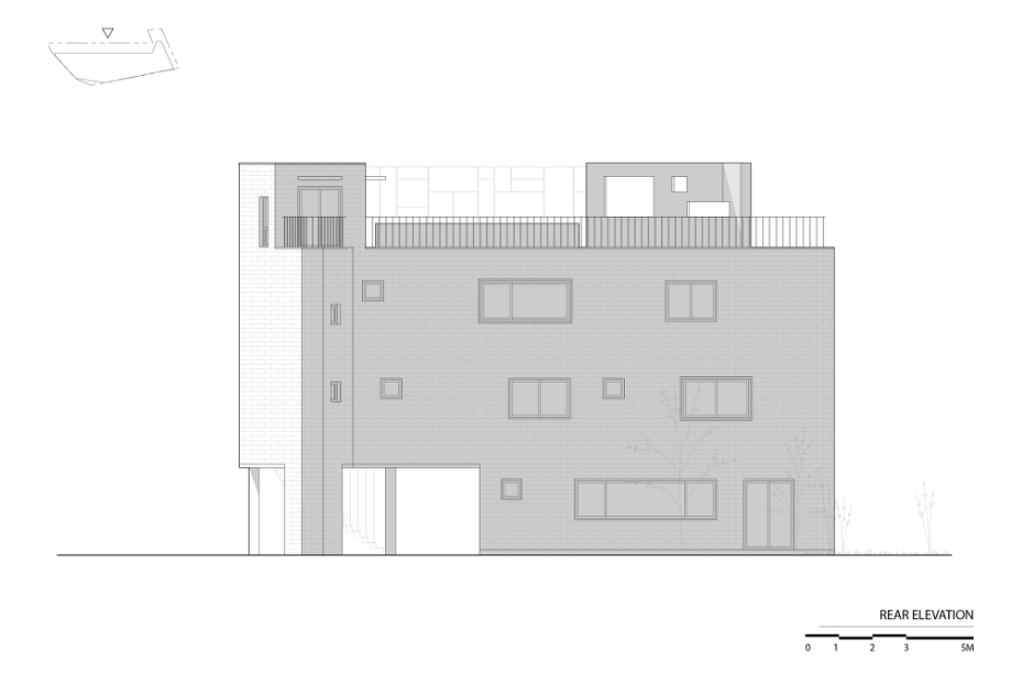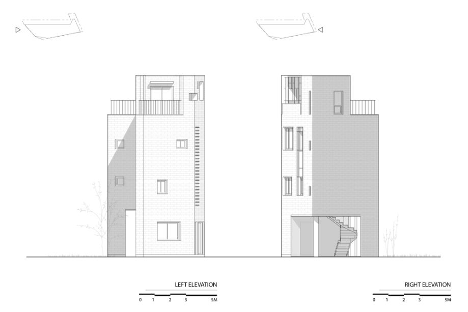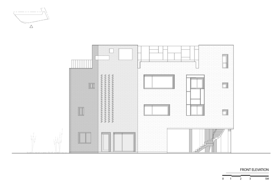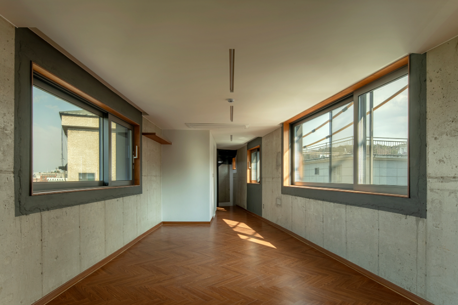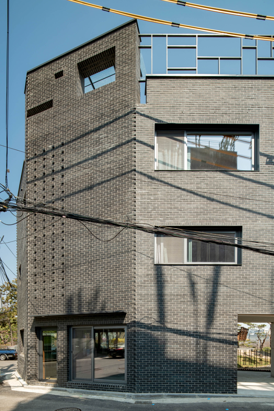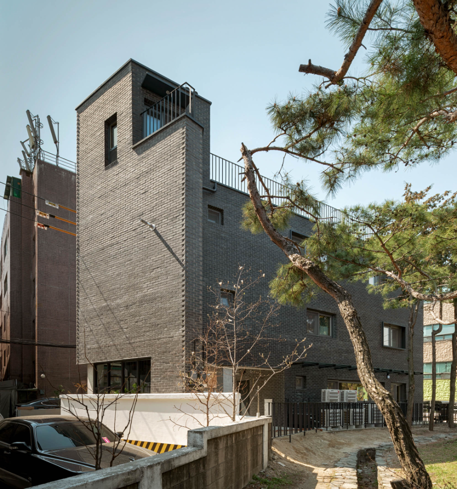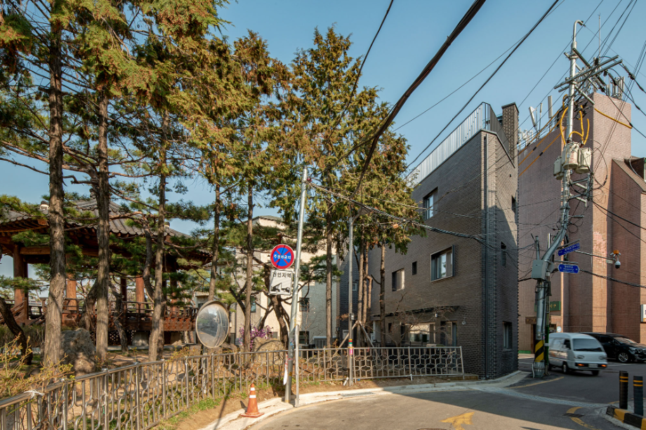 2층과 3층의 창을 연결하는 문양을 넣어 무덤덤한 입면에 변화를 주었다. 쪽 창은 공원을 향한 시원한 전망을 갖고, 남쪽의 출입구는 지나가는 사람들도 공원을 넘겨다 볼 수 있도록 부분 필로티로 개방했다. 최소한의 면적을 할애한 계단을 오르면 사방으로 탁 트인 옥상정원이 나온다.