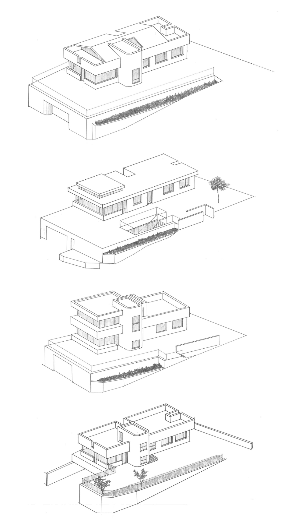 많은 미팅을 통하여 주변 환경을 지켜보았으며, 설문조사와 대화를 통하여 건축주를 파악하였다. 계별로 매스 디벨롭이 된 것 이외에 내부의 공간 구성 및 입면 컨셉은 설계 초기부터 변하지 않고 준공까지 이어졌다. 공사 중간에 수없이 바뀌는 프로젝트에 비해 최초 컨셉과 방향성이 뚜렷하게 정해져서 중심을 잡고 끝까지 진행할 수 있었다.