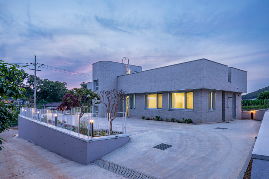 단순함을 추구하는 건축주의 취향을 고려해 외부의 재료는 벽돌과 금속 두 가지로 결정했다. 축주와 다양한 재료들을 참고하여 매지를 시각적으로 가릴 수 있는 무매지 벽돌로 결정하여 시공했다. 두겁 및 창호 프레임은 아연판으로 시공했다.