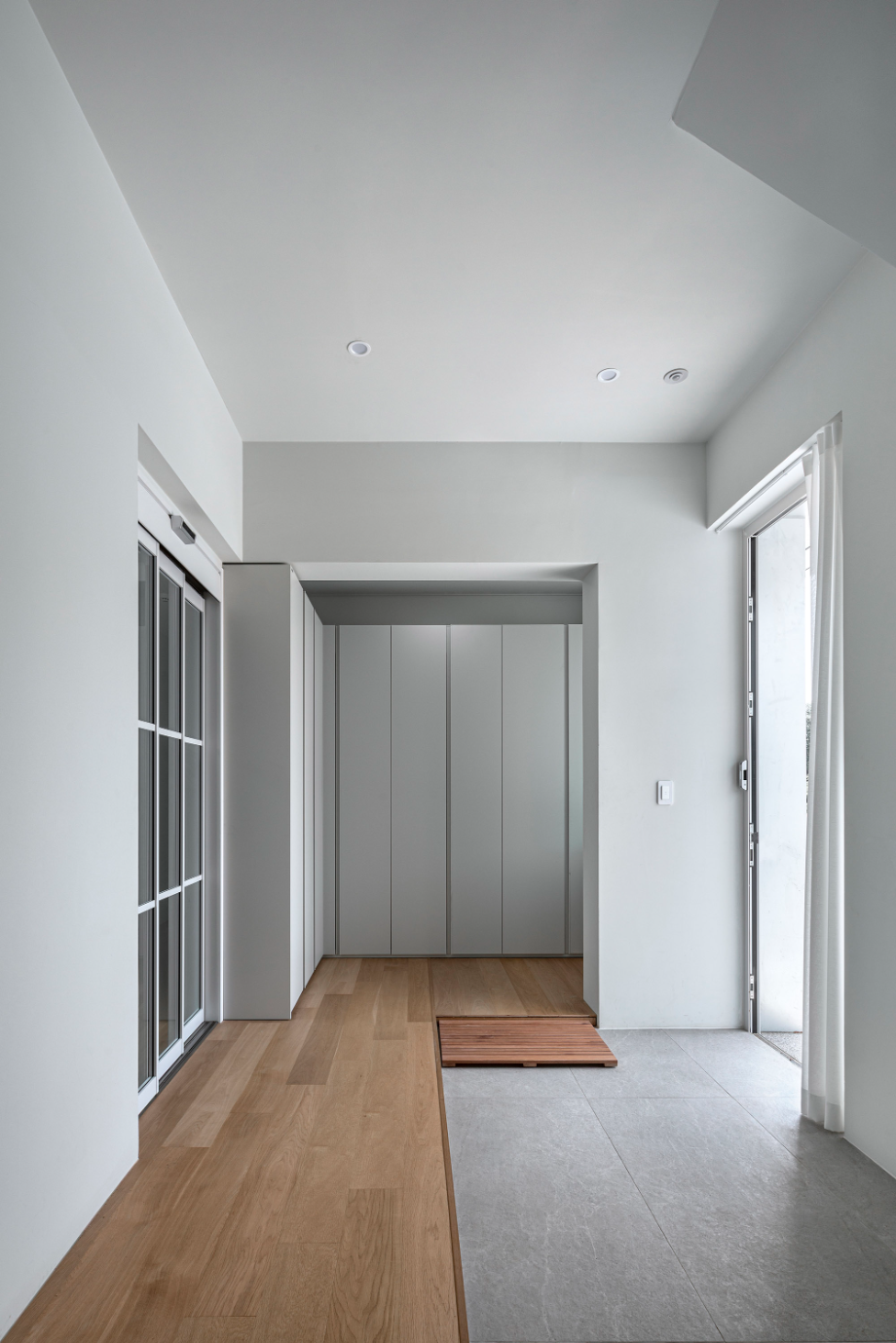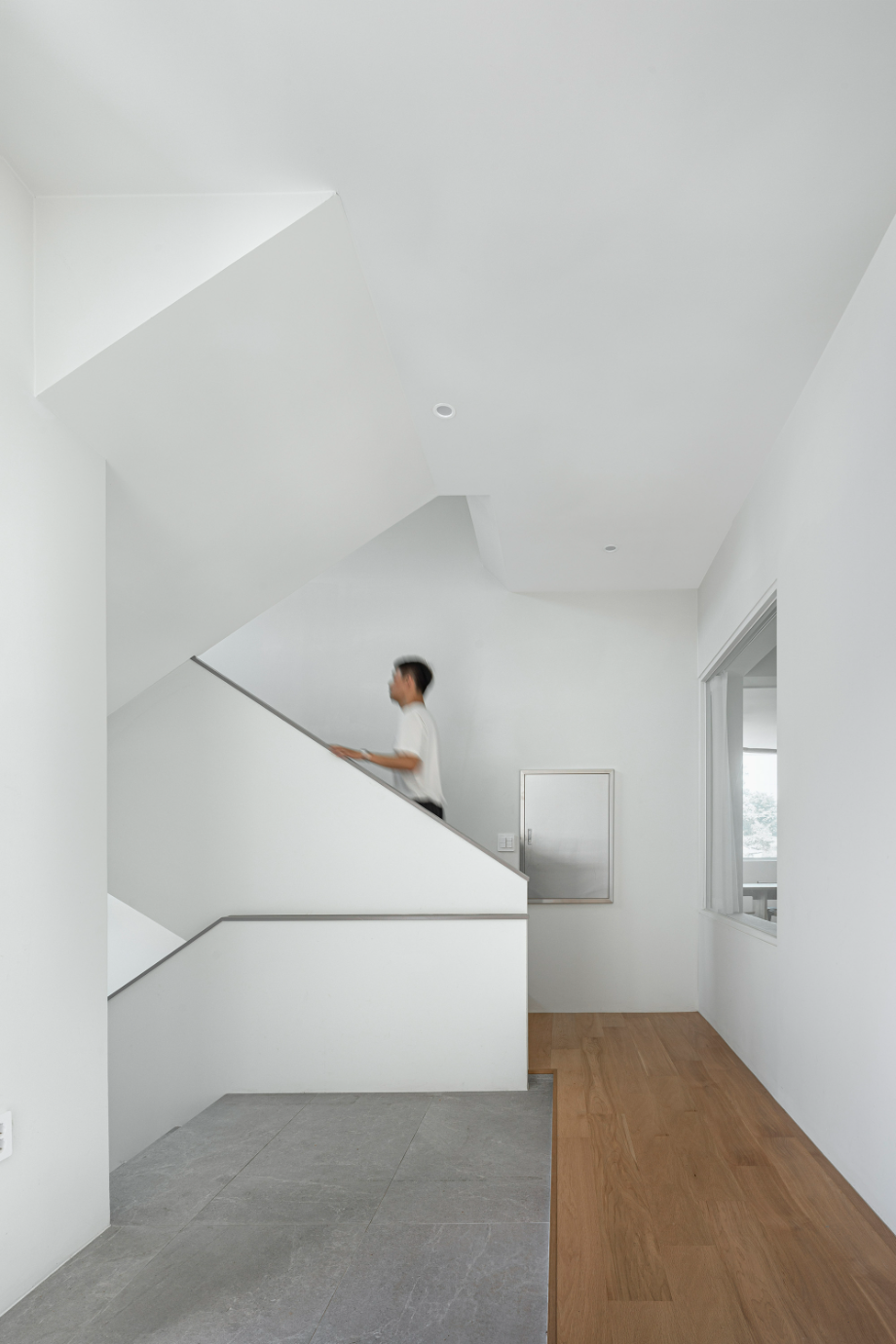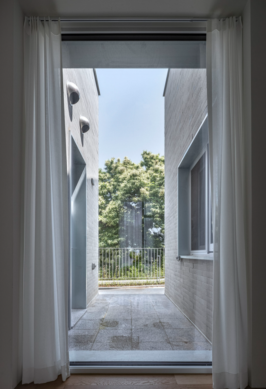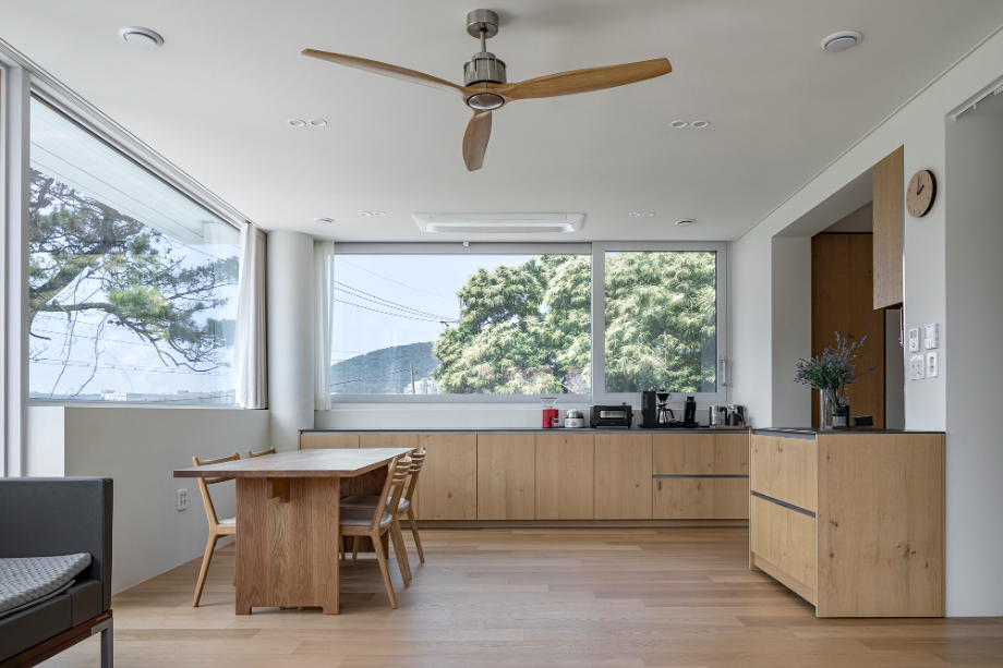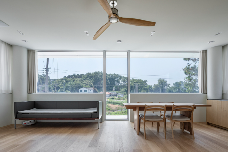 첫 미팅 당시 건축주의 요구사항 중 가장 기억에 남는 것은 누워서 자연과 하늘을 바라볼 수 있는 공간을 원한다는 것이었다. 기본적으로 모든 공간에 창호를 통하여 외부를 바라볼 수 있게 계획했으며, 공용공간, 개인공간, 욕실 등 모두 시야의 개방감을 위하여 허리 높이 이상으로는 상부장 없이 창으로 계획했다. 주변에 나무 등 자연환경이 조성 되어있어, 최대한 그 환경들을 집으로 끌어들이고 싶었다. 현관에서 들어와서 보이는 외부공간, 복도를 지나다 보이는 외부 공간 등 집 내부의 곳곳에서 외부를 바라볼 수 있도록 시각적으로 연장되는 곳에 창호를 설치하여 내부에서도 자연을 느낄 수 있도록 계획했다.
