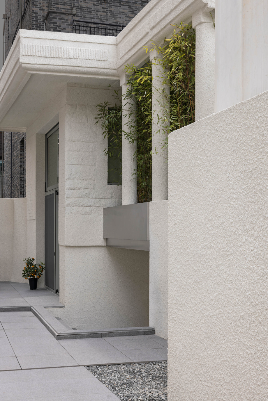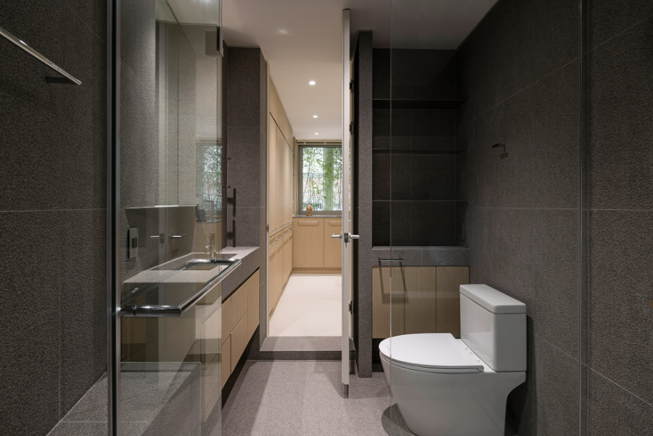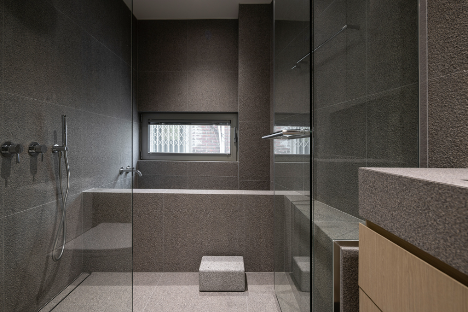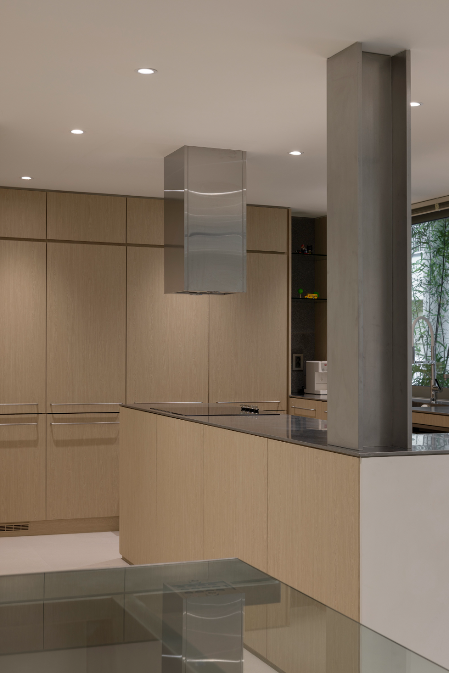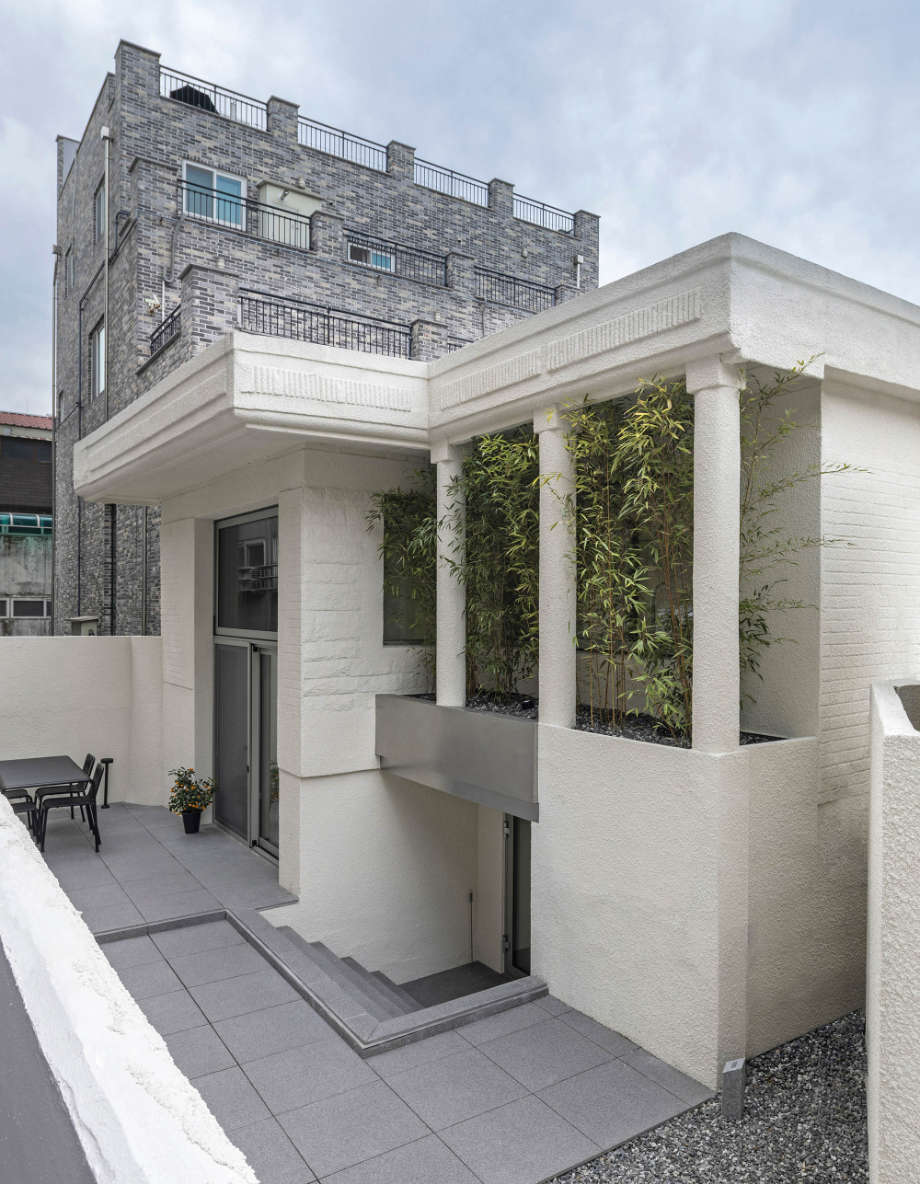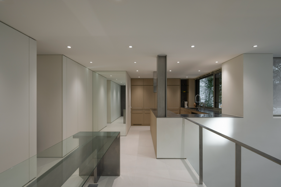 주방 너머로 보이는 창은 원래 테라스로 사용되던 공간이었다. 기존 테라스 공간을 빼곡한 대나무로 조경한 후 그 풍경이 주방의 배경이 될 수 있도록 했다. 건물로 둘러싸여 있는 현재 컨디션에서 옆 건물에서의 시선을 차단해 주는 방법이자, 자연이 내다보이는 창을 조성하는 것이었다. 하루 세끼 온 가족의 식사를 챙기는 주방공간에서의 시간이 답답하지 않고, 심리적 환기가 될 수 있는 공간이길 바랐다.