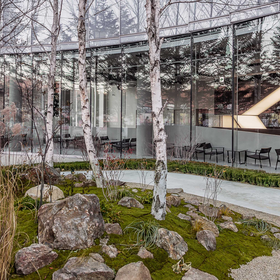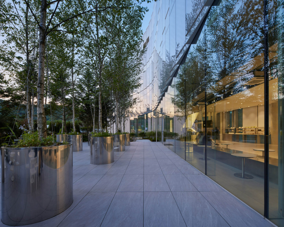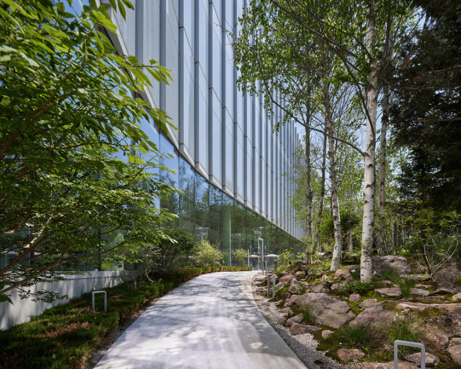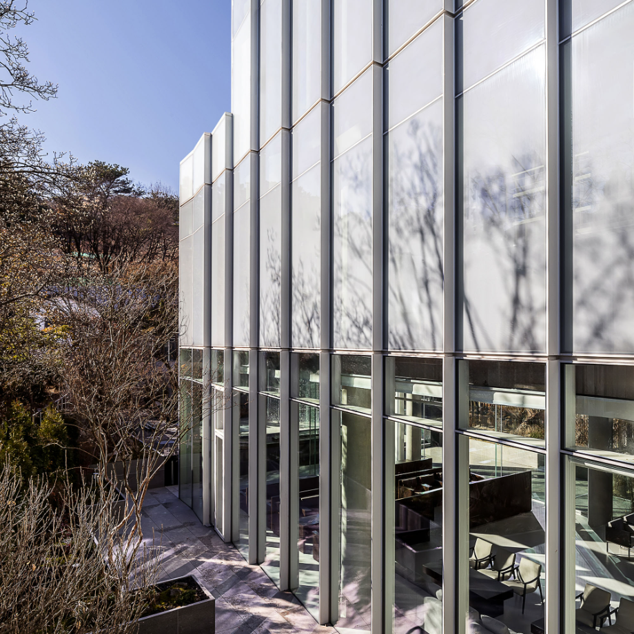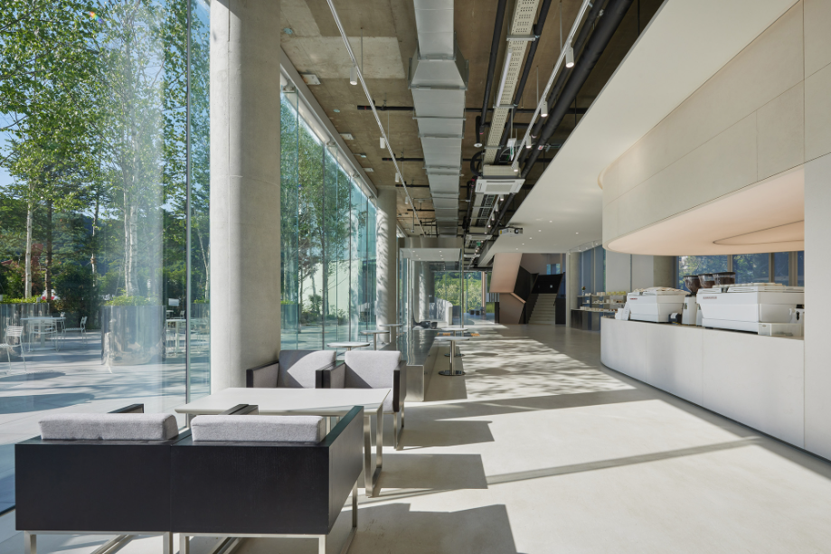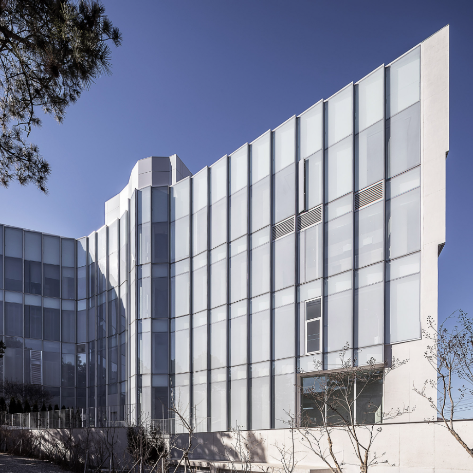 건물의 파사드는 시간과 빛, 계절에 따라 다채로운 표정을 보여주는 곡선형 입면으로 구성됐다. 하부는 투명 유리로 개방감을 확보하고, 상부는 흰색 클라우드 매스 형태로 경쾌한 인상을 준다. 이는 단순한 조형미를 넘어, 주변 환경과 시각적으로 조화를 이루기 위한 장치이자, 도시 풍경 안에서 상징적인 존재감을 부여하는 전략이기도 하다.