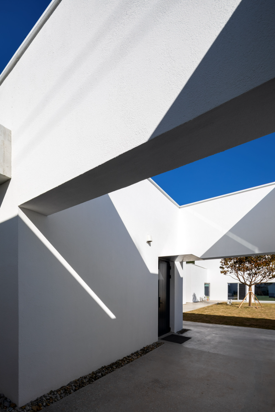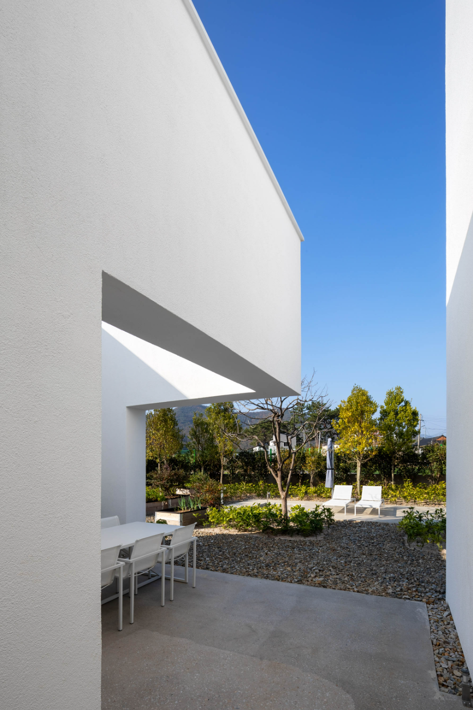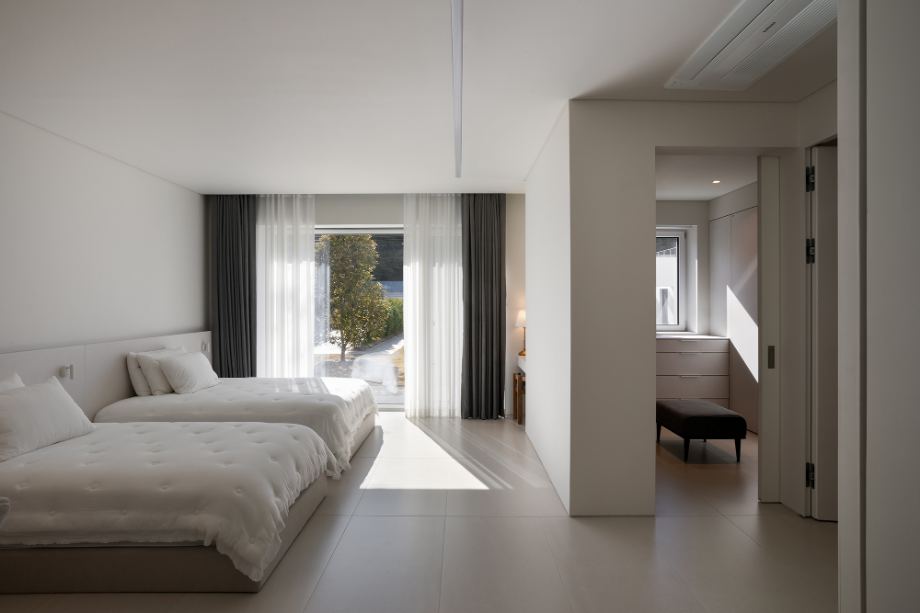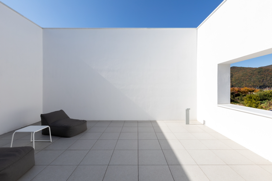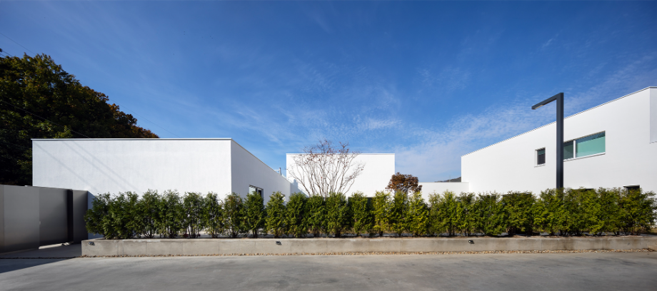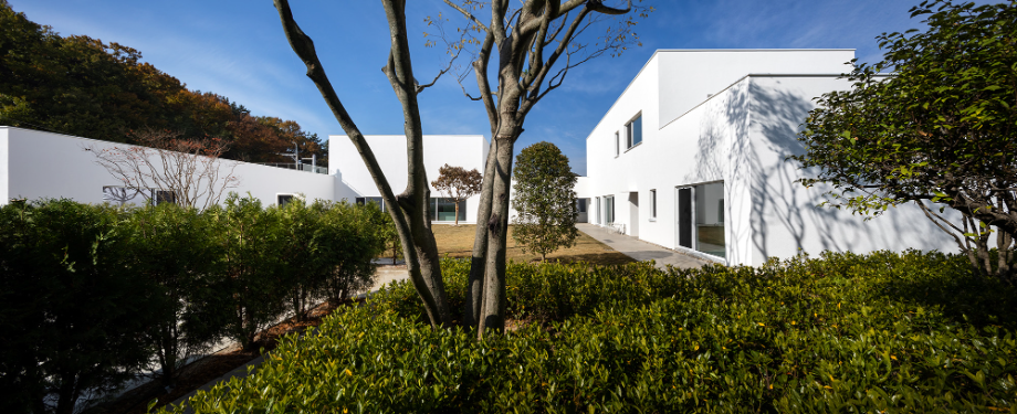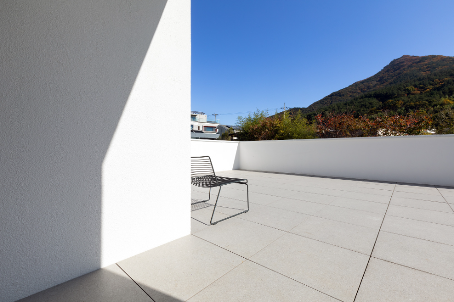 하얀 외벽은 자연을 위한 배경이 되어 때로는 옅은 초록으로, 때로는 깊은 녹음으로 일렁인다. 빛은 시간에 따라 다른 그림으로 말을 건넨다. 벽면에 드리운 그림자는 계절과 시간을 알게 한다.