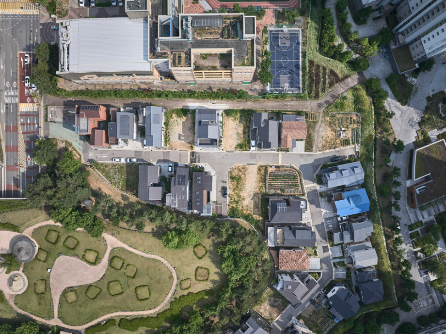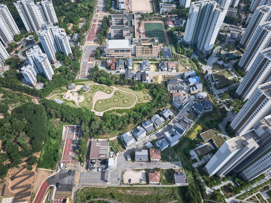 대지의 첫인상은 공원을 품고 있는 조용하고 아늑한 마을의 이미지로서 공원을 중심으로 작은 단독주택들이 서로 어깨를 맞대며 옹기종기 서있는 주택단지였다.