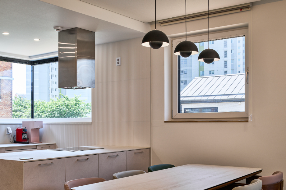 각각의 공간들을 이동하는 동선연결을 위한 계단을 중앙에 두고 공간을 비워내 중정을 넣어 정리했다. 중정을 통한 채광 및 환기뿐만 아니라, 각각의 공간으로 이동 시 외부 중정을 보며 시선을 환기시킬 수 있도록 계획했다.