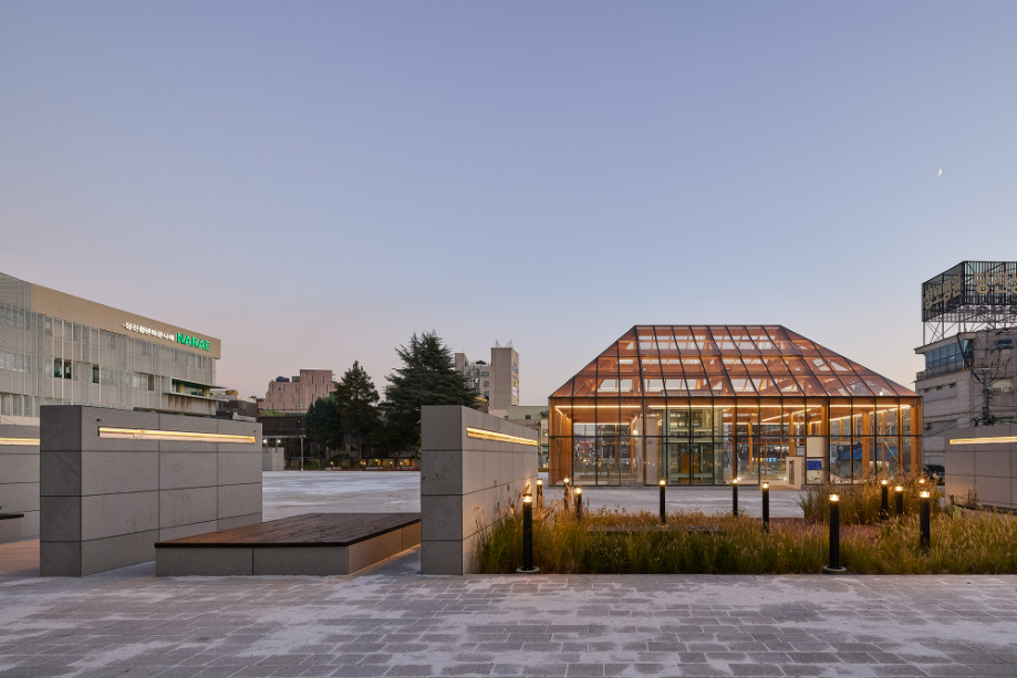 우리에게 광장은 익숙하지 않은 장소이며, 주차장 입구란 최소한의 기능만이 요구되던 시설이었다. 우리는 여기에 다양한 스케일과 장치들, 그리고 역사적 의미를 형태로 표현한 이미지를 더했다. 그래서 이 장소가 일상에서 사랑받고, 지역이 가진 역사와 자부심을 떠올릴 수 있는, 여전한 구도심의 중심이 되도록 했다.◼︎